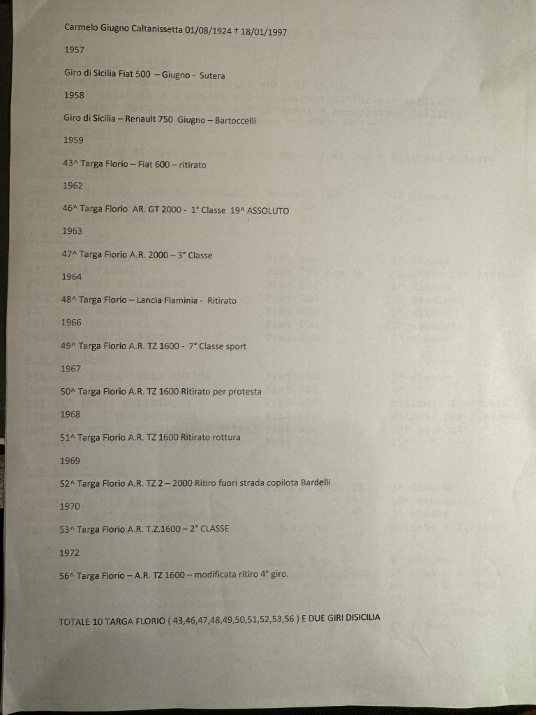 Molti appassionati automobilismo ricorderanno Carmelo Giugno, pilota nisseno, uno dei protagonisti dell’automobilismo regionale a cavallo degli anni 50/70.