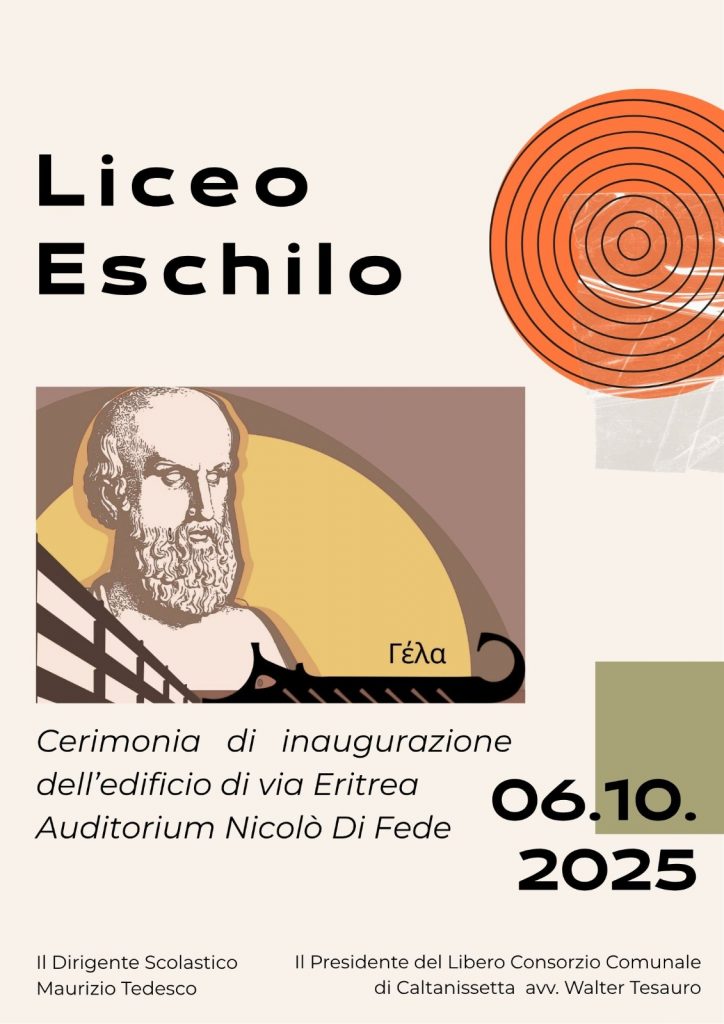 “Lunedì 6 ottobre 2025, alle ore 10.00, si terrà la cerimonia di inaugurazione del nuovo edificio del Liceo Classico “Eschilo” di Gela, in via Eritrea, alla presenza del Presidente del Libero Consorzio Comunale di Caltanissetta, avv. Walter Tesauro, e del Dirigente scolastico, prof. Maurizio Tedesco.