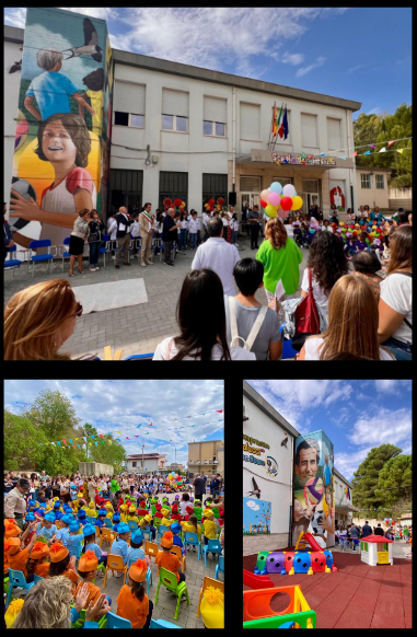 L’evento è stato allietato dai canti e dai cori dei numerosi bambini presenti con tante maglie coloratissime e il cappello che portava Don Bosco e dalla corale diretta dalla maestra e referente del plesso Monica Battaglia. I cori dei bambini e le musiche hanno coinvolto i presenti e i numerosissimi genitori che hanno partecipato entusiasticamente con il battito delle mani. Al termine, il Dirigente scolastico Parenti ed il Sindaco Comparato hanno tagliato il nastro di inaugurazione del parco giochi attrezzato, realizzato all’ingresso del plesso, su cui campeggia il grande e colorato murales realizzato dall’artista Mirko Cavallotto, interamente finanziato dalla Banca Toniolo.