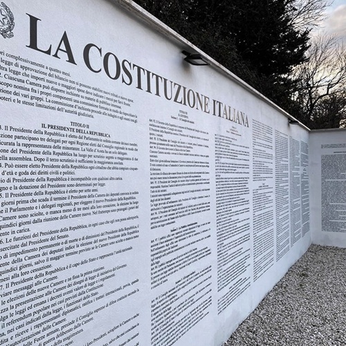 La Costituzione è un testo carico di significato e ci guida nel nostro essere cittadini. Stamparla su un muro di una piazza, di una scuola, in un parco o in un giardino pubblico, significa farla uscire dallo spazio tradizionale di un testo e trasporla nella quotidianità dei cittadini, renderla una parte tangibile e concreta della comunità locale.