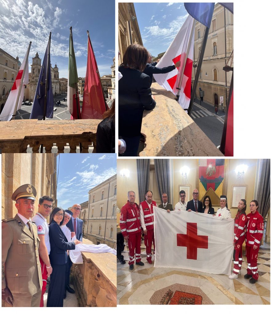 Reading: La bandiera della Croce Rossa sventola dal balcone del Comune di Caltanissetta
