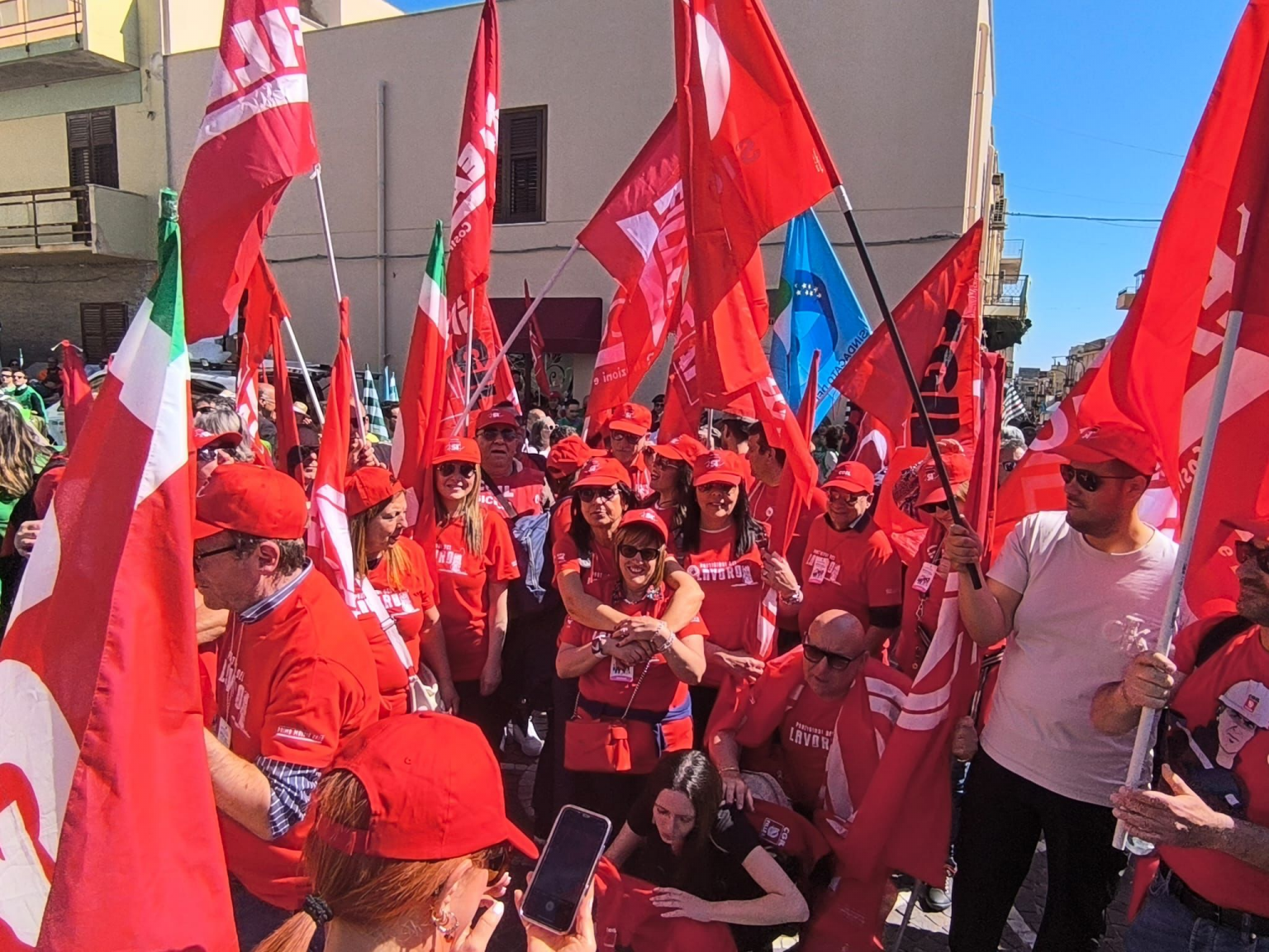Oggi a Casteldaccia , una folta delegazione della Cgil di Caltanissetta con delegati provenienti da tutti i comuni è presente nel giorno della festa del lavoro .
