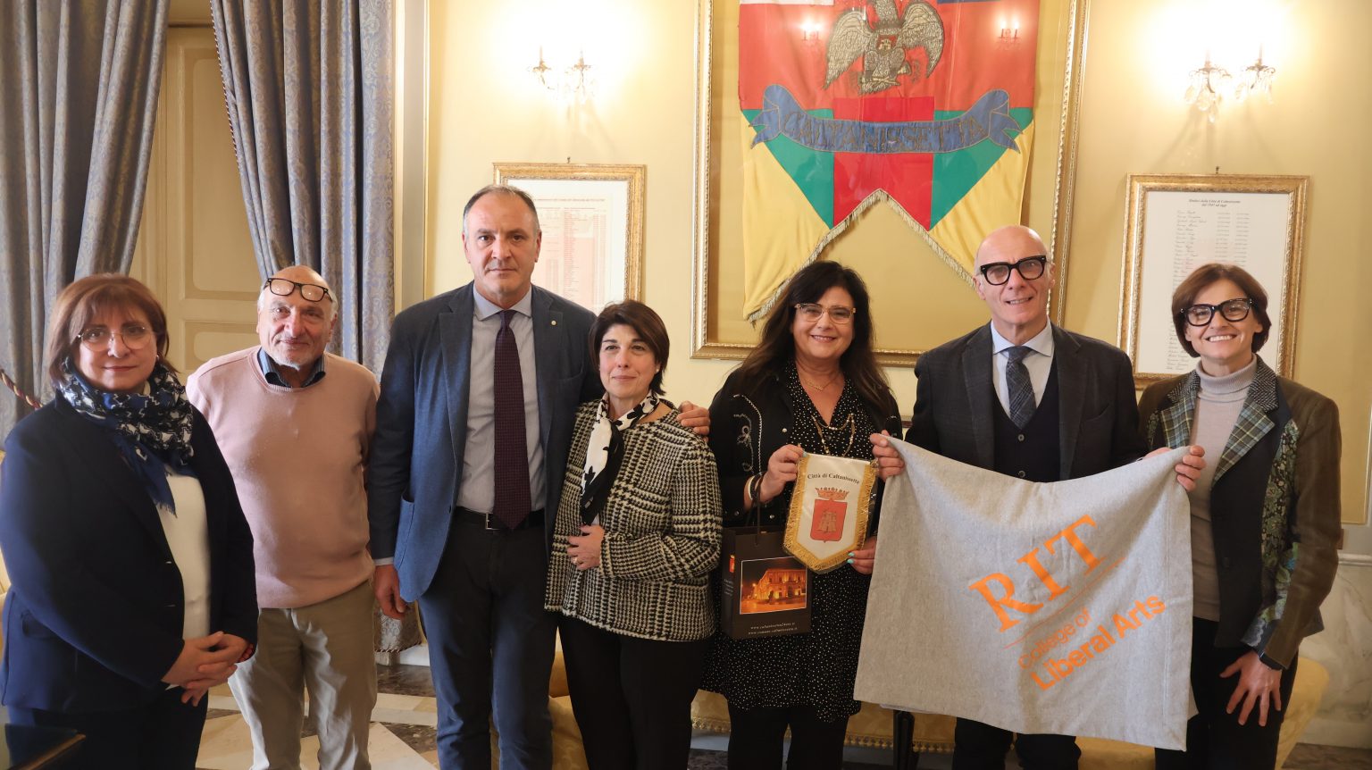 Nel corso della mattina di ieri, la Prof.ssa D’Amanda, docente universitaria del Dipartimento di Lingue e Culture Moderne al RIT (Rochester Institute of Technology), è stata accolta in Sala Gialla dal Sindaco Walter Tesauro e dagli assessori Olivo, Petrantoni e Pasqualino.