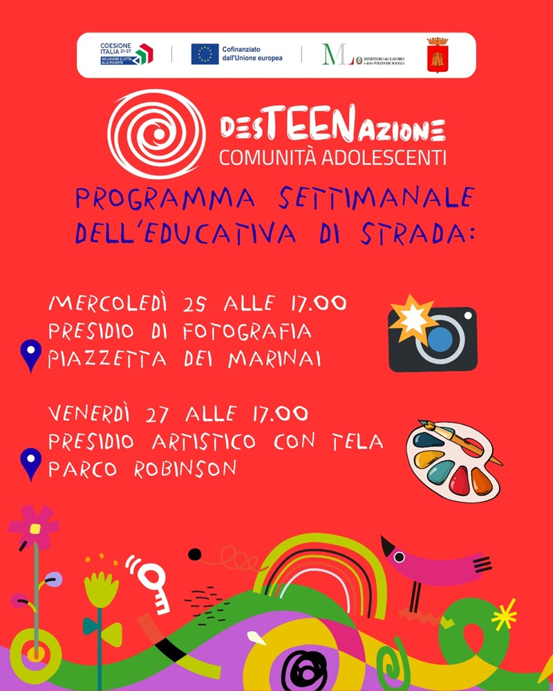 Si invita la cittadinanza a seguire i profili social di DesTEENazione, per rimanere aggiornati sull’ Educativa di Strada e sulle altre attività.