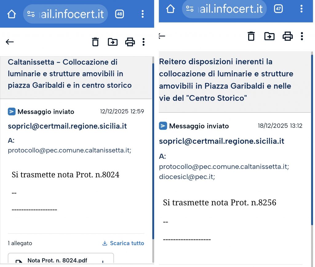 Si sottolinea che l’azione della Soprintendenza è stata tempestiva e precedente rispetto alle critiche sollevate. A riprova di ciò, si rendono note le date di invio al Comune di due note ufficiali, trasmesse tramite Posta Elettronica Certificata (PEC) e regolarmente pervenute e lette dall’ente comunale: