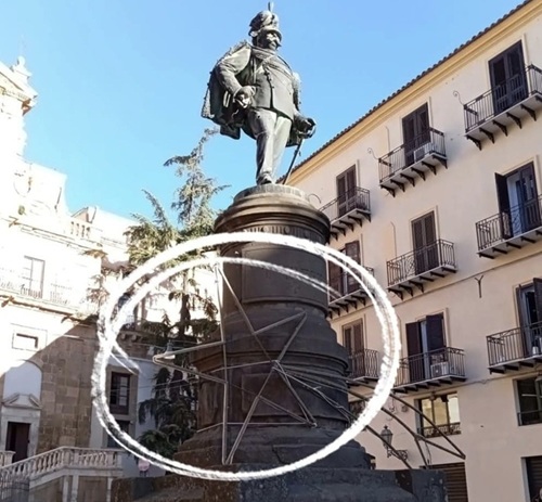 Si conferma che il Comune ha provveduto immediatamente, a seguito della prima nota inviata dalla Soprintendenza, a rimuovere la stella che avvolgeva il basamento della statua di Umberto e i servizi igienici, sanando le criticità immediatamente rilevate.