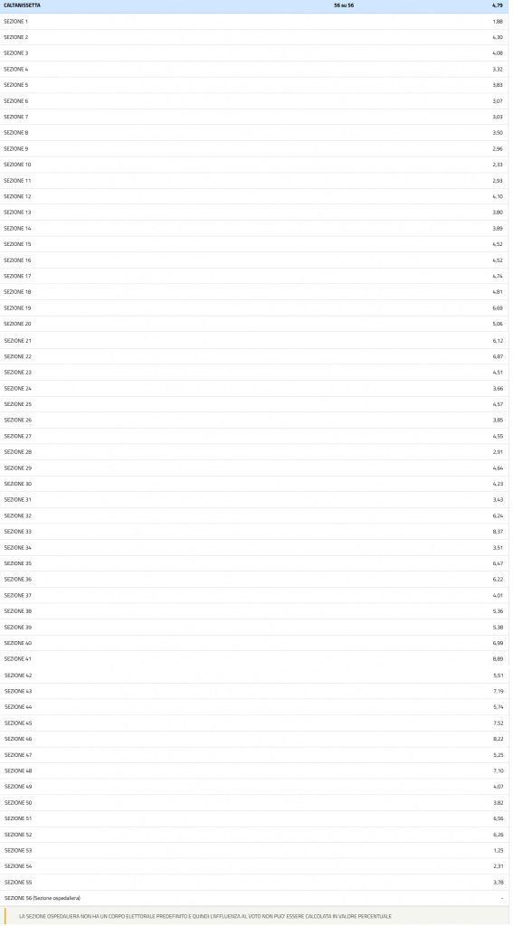 Il numero di votanti e la relativa percentuale di affluenza al voto dei cittadini di Caltanissetta per ogni referendum: