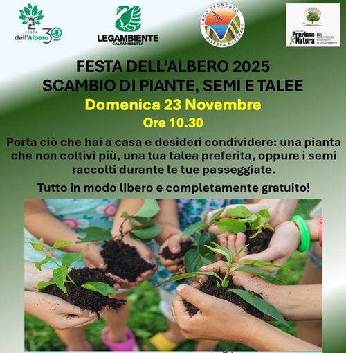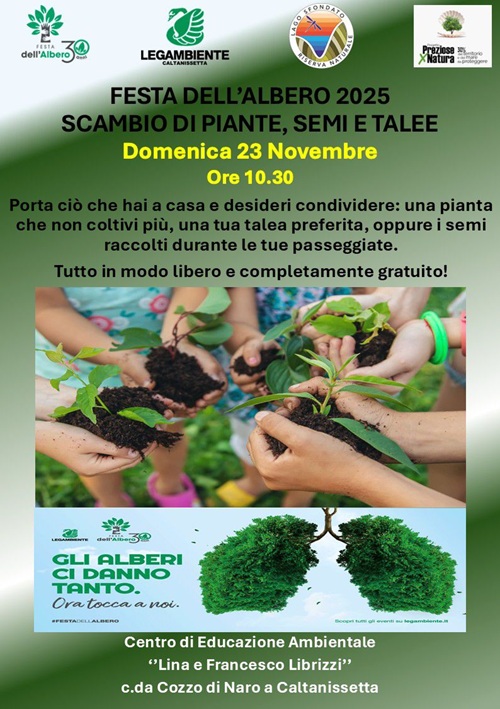 Lagambiente Caltanissetta:“Festa dell’Albero”. “Incontro di scambio/offerta di piante, semi e talee. Locandina