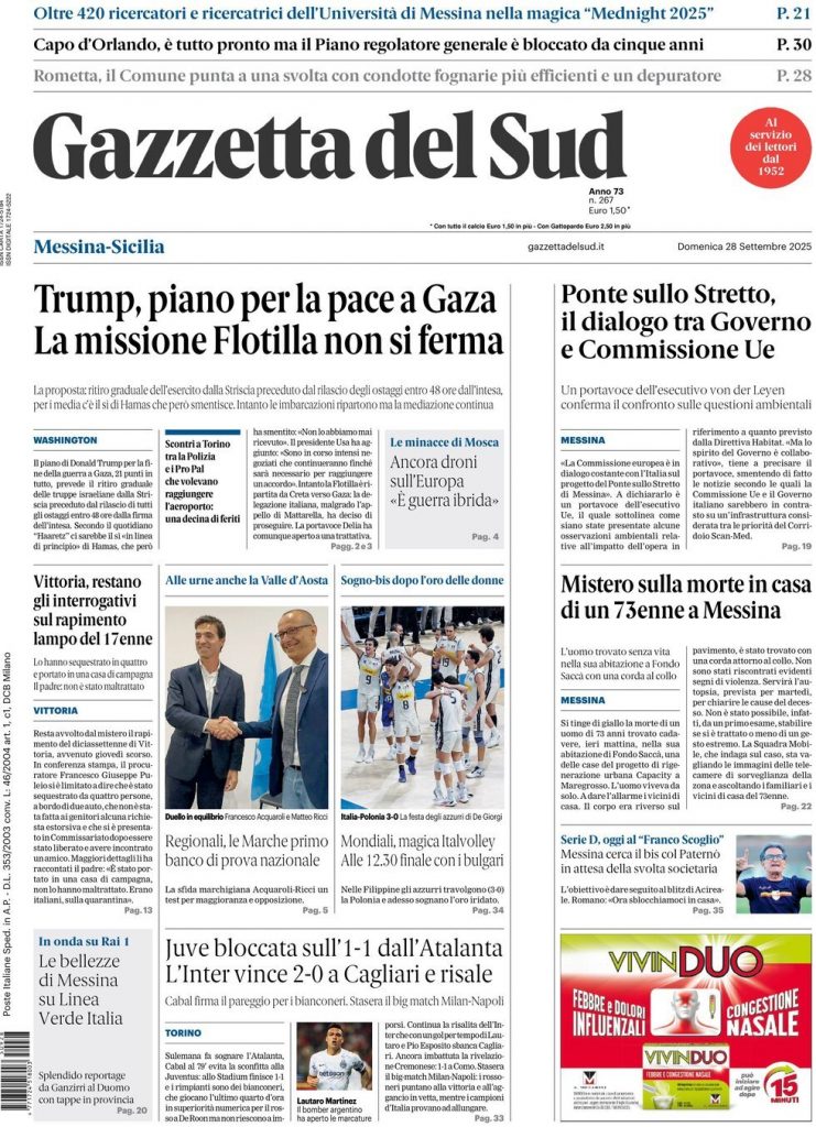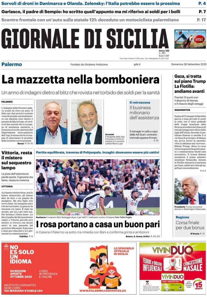 Le prime pagine delle maggiori testate giornalistiche siciliane, nazionali, economiche e sportive