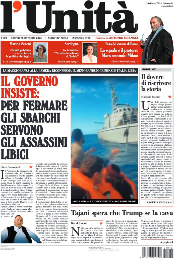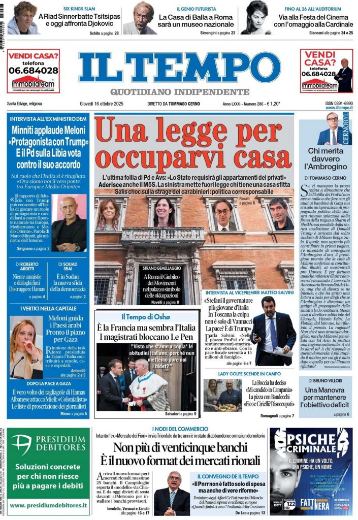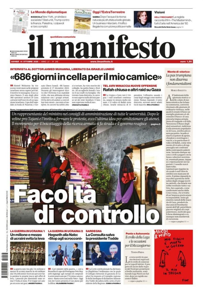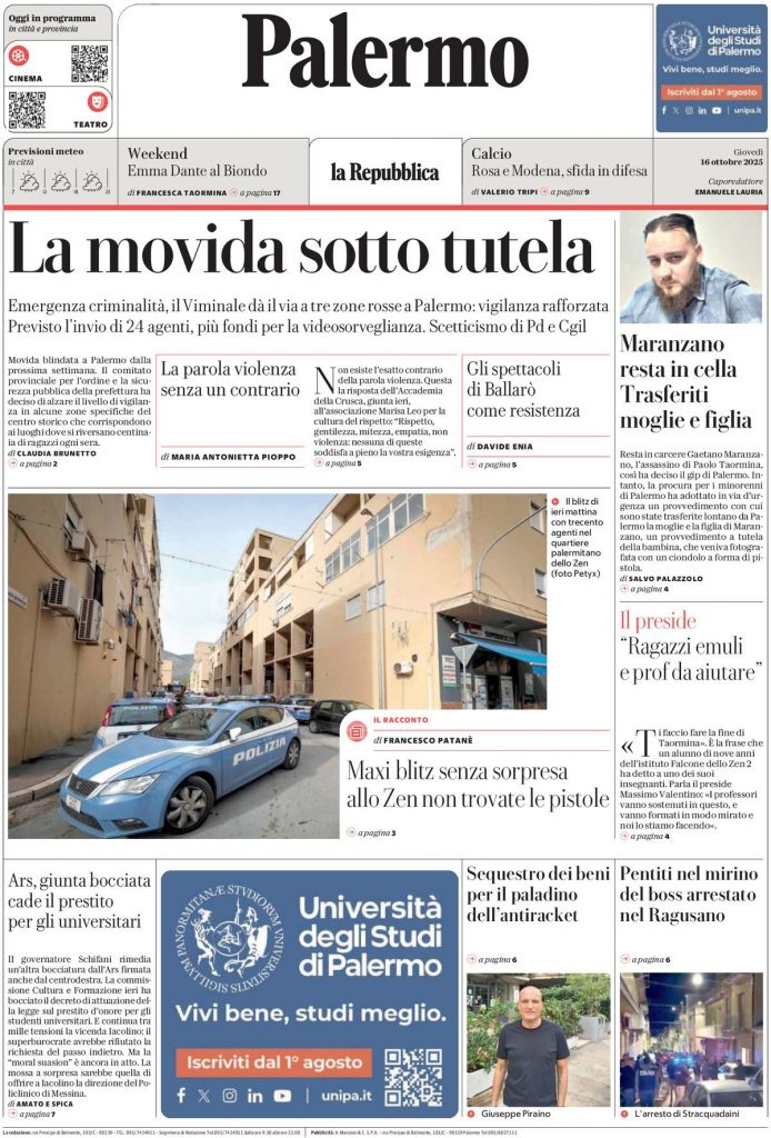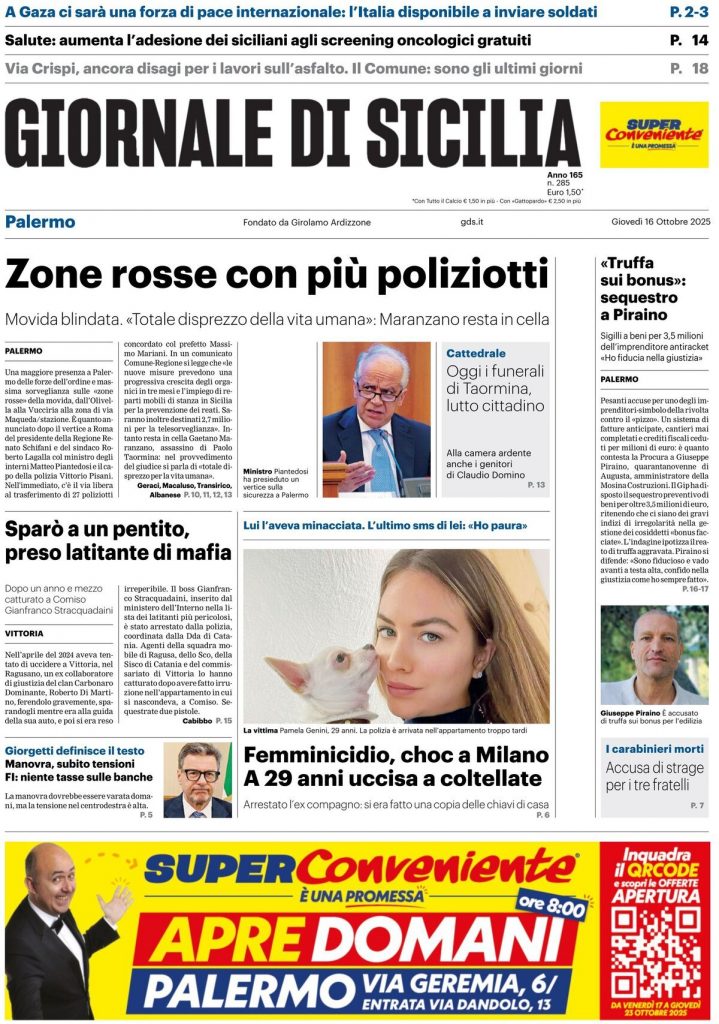 Reading: Le prime pagine delle maggiori testate giornalistiche siciliane, nazionali, economiche e sportive di Giovedì 16 Ottobre 2025