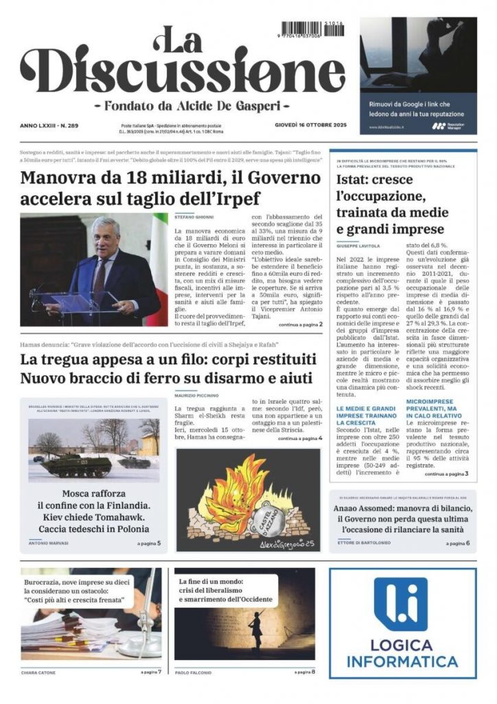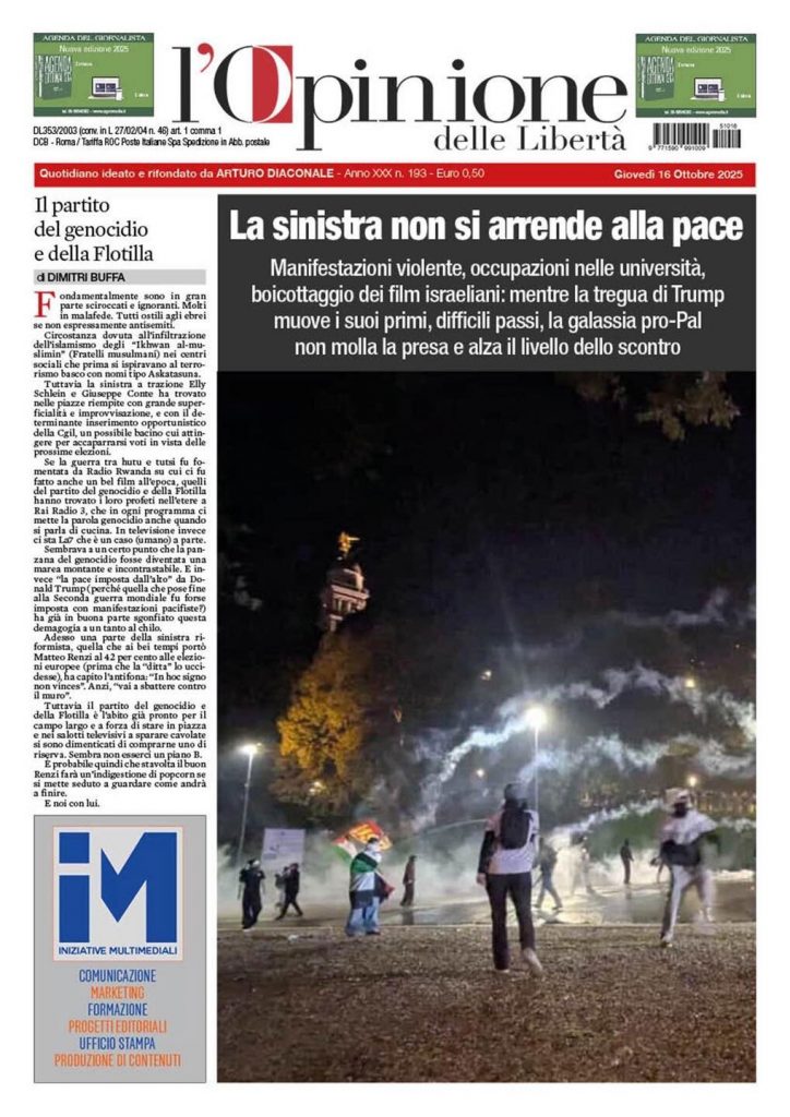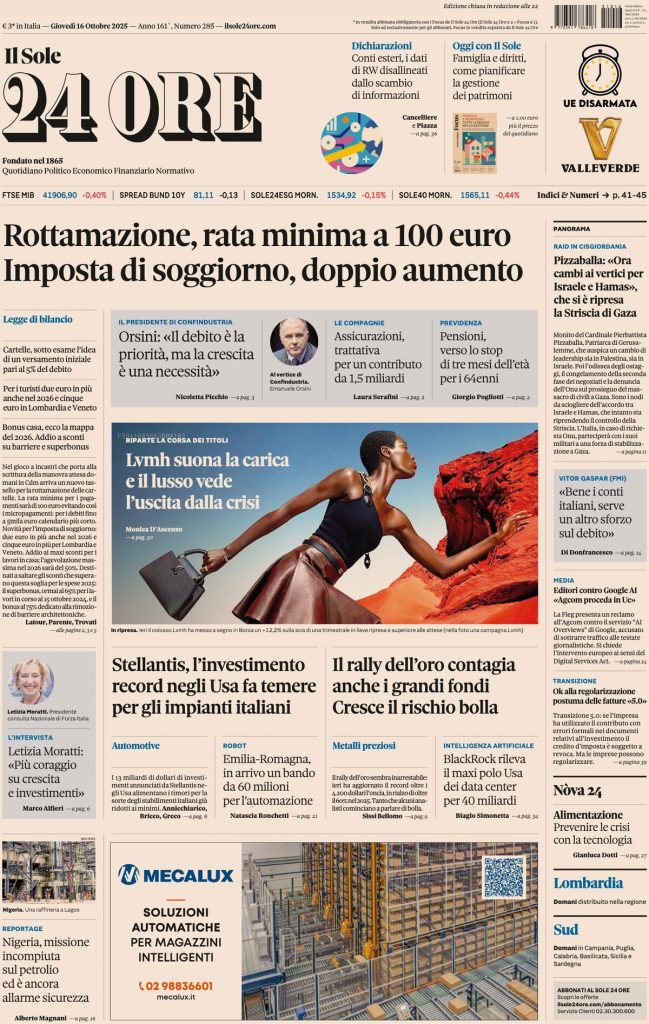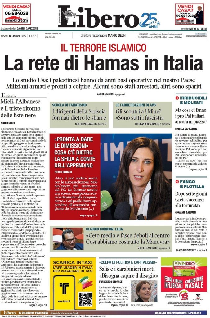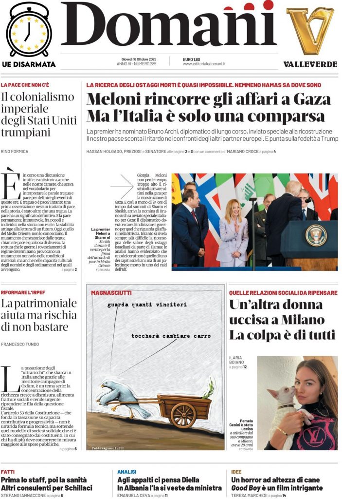 Reading: Le prime pagine delle maggiori testate giornalistiche siciliane, nazionali, economiche e sportive di Giovedì 16 Ottobre 2025