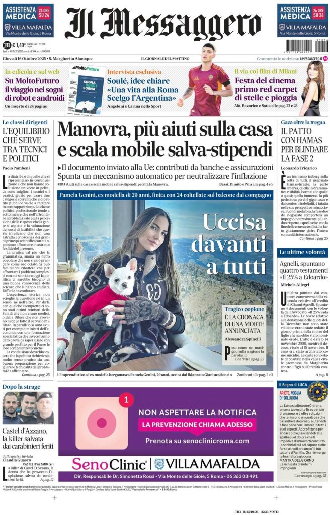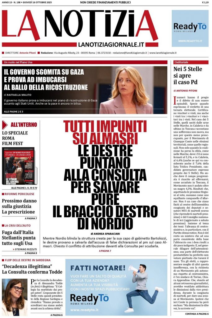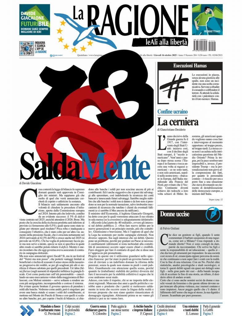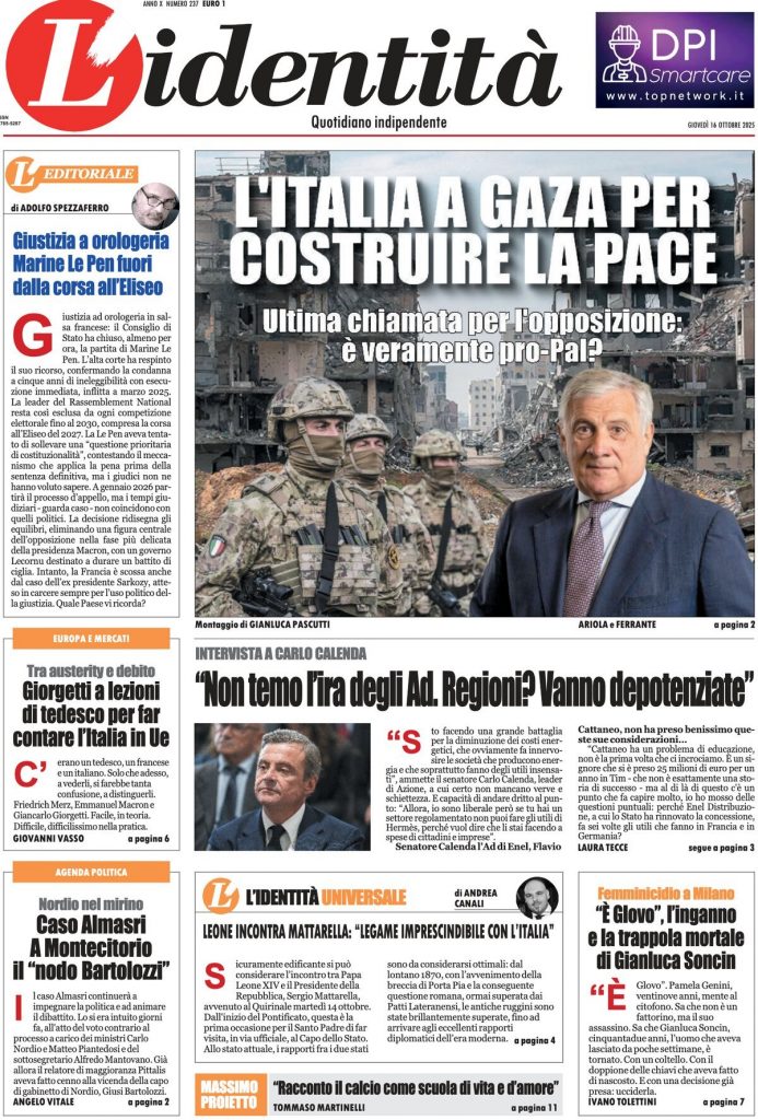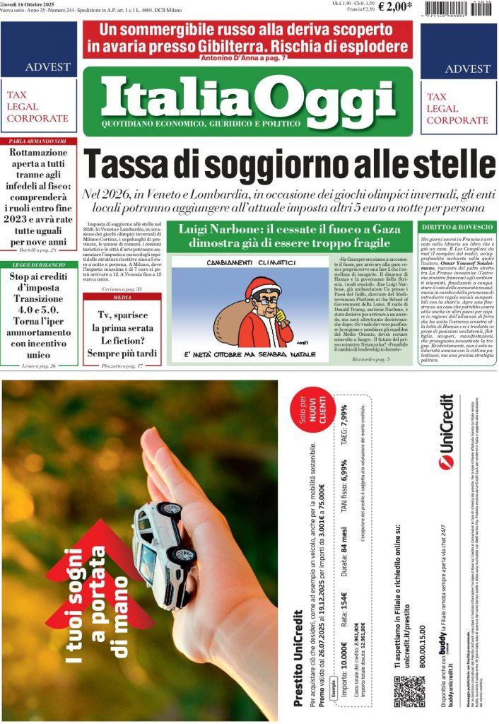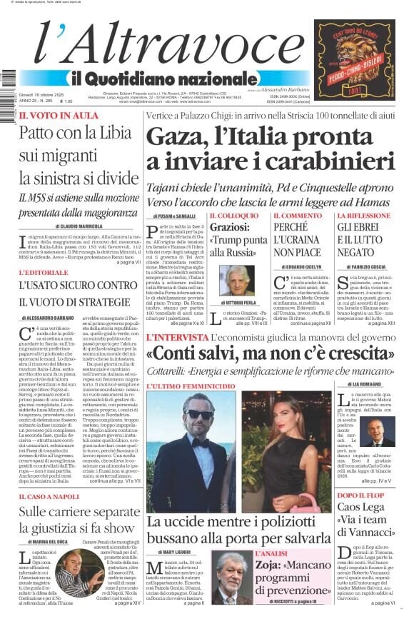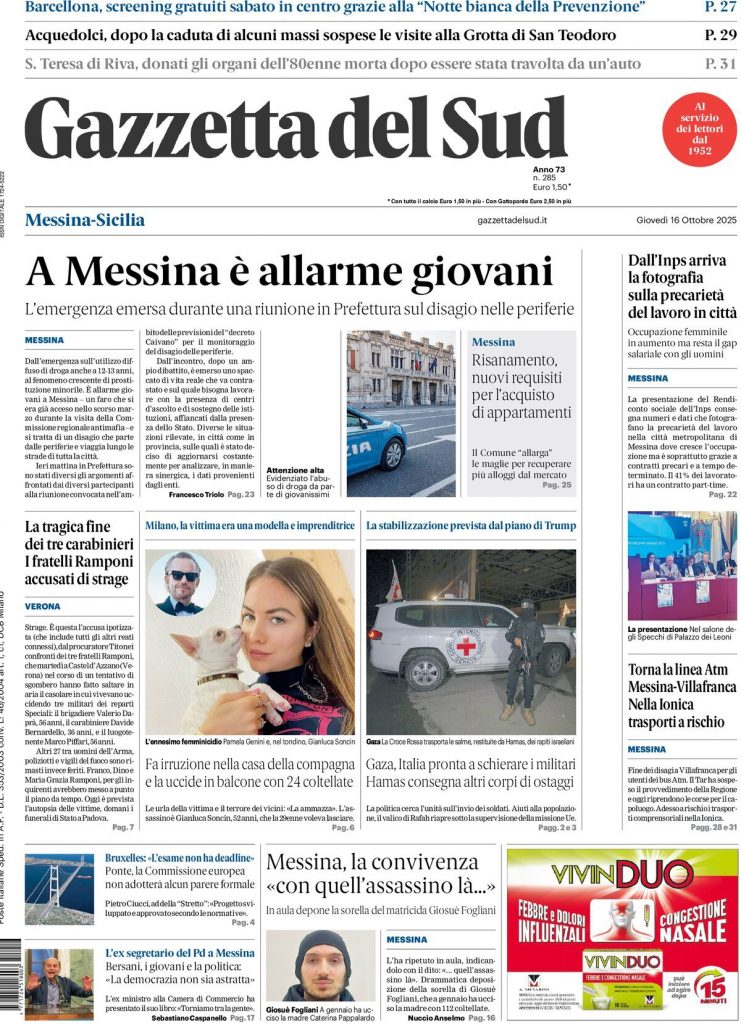 Caltanissetta 401 > News > Rassegna stampa > Le prime pagine delle maggiori testate giornalistiche siciliane, nazionali, economiche e sportive di Giovedì 16 Ottobre 2025