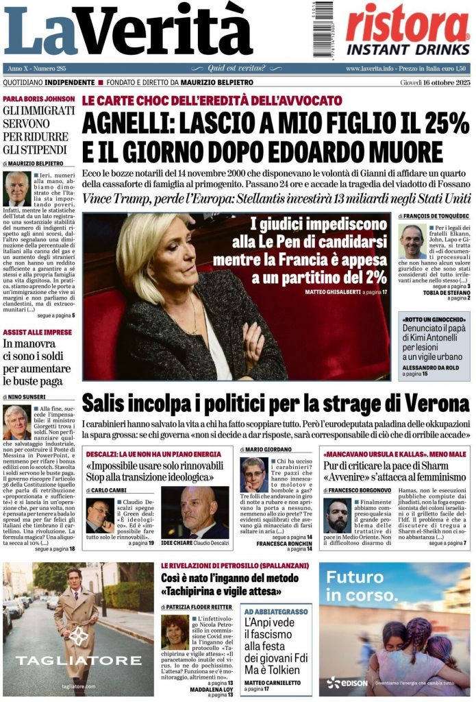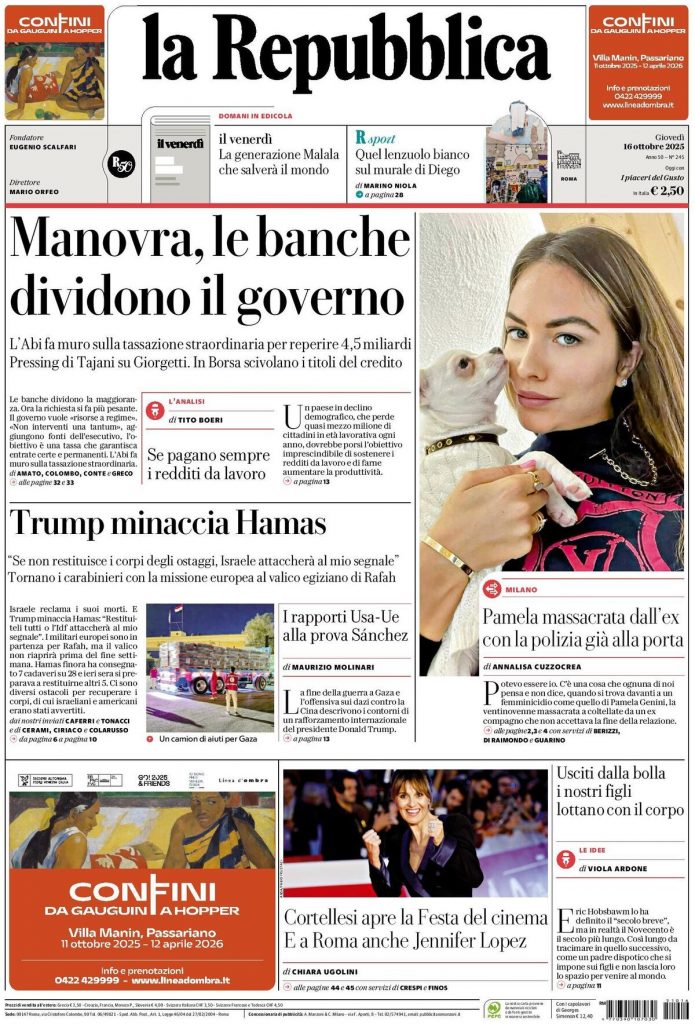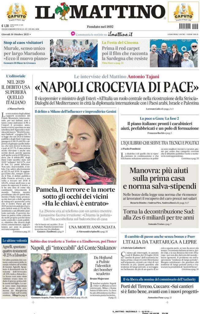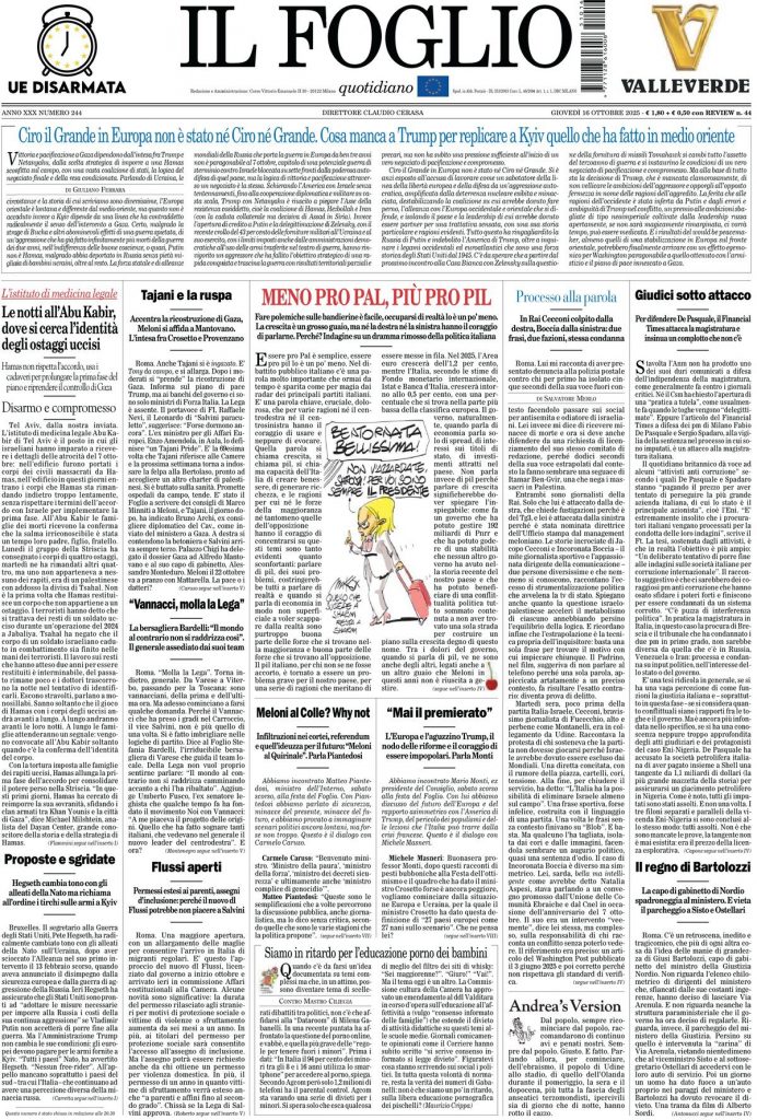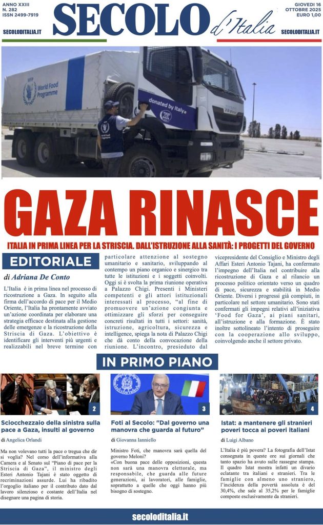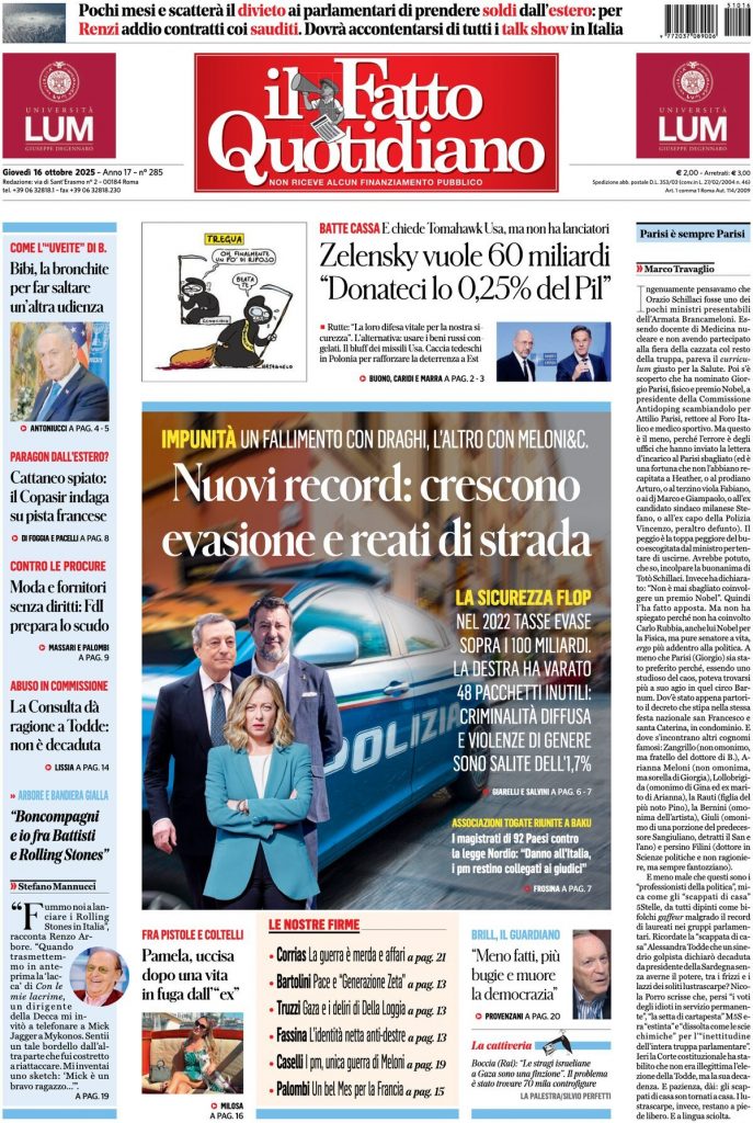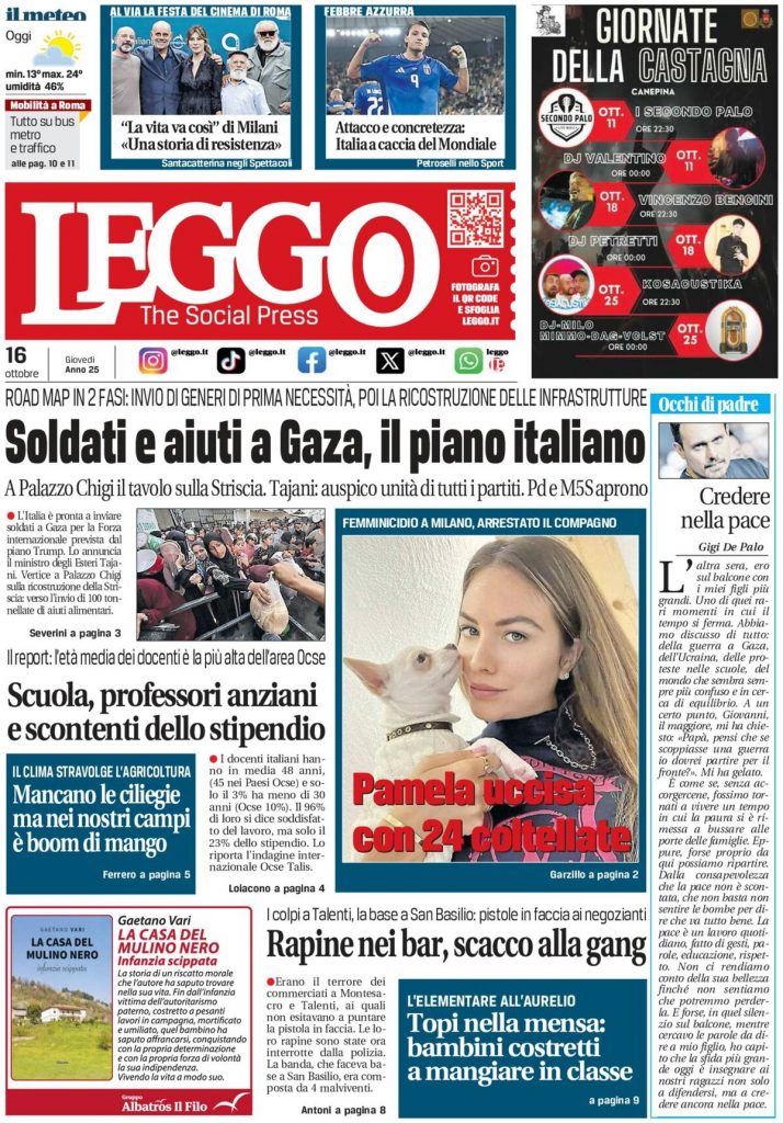 Caltanissetta 401 > News > Rassegna stampa > Le prime pagine delle maggiori testate giornalistiche siciliane, nazionali, economiche e sportive di Giovedì 16 Ottobre 2025