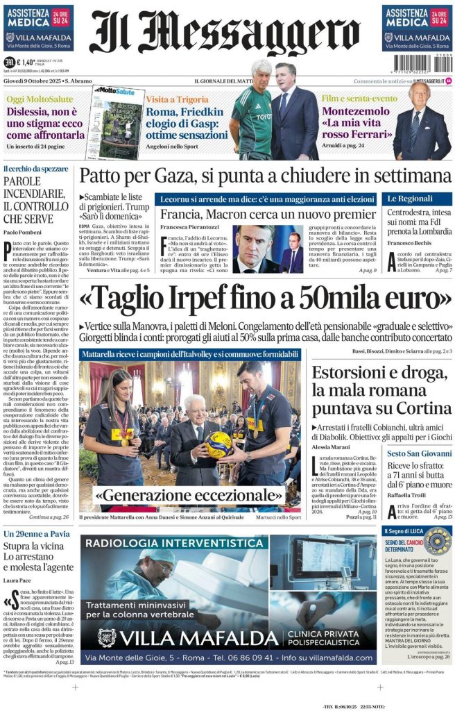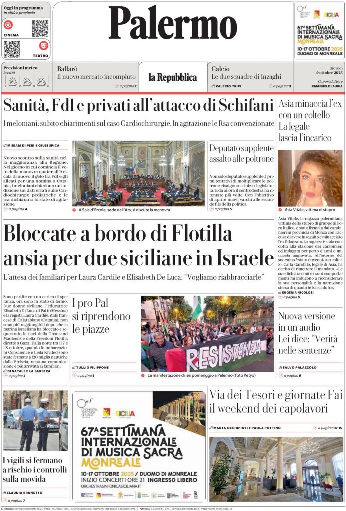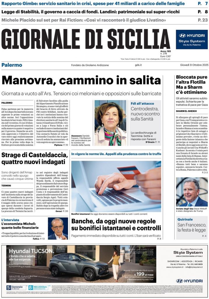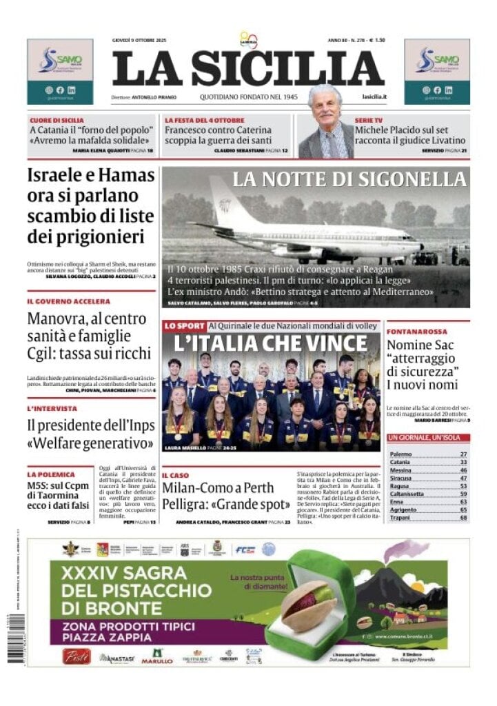 Le prime pagine delle maggiori testate giornalistiche siciliane, nazionali, economiche e sportive