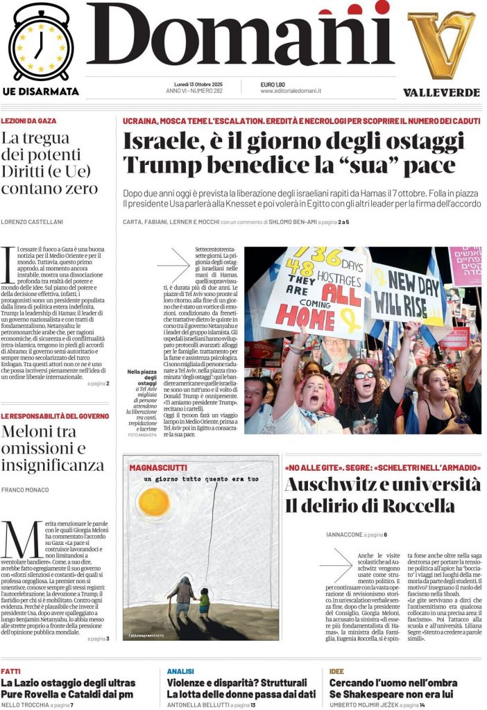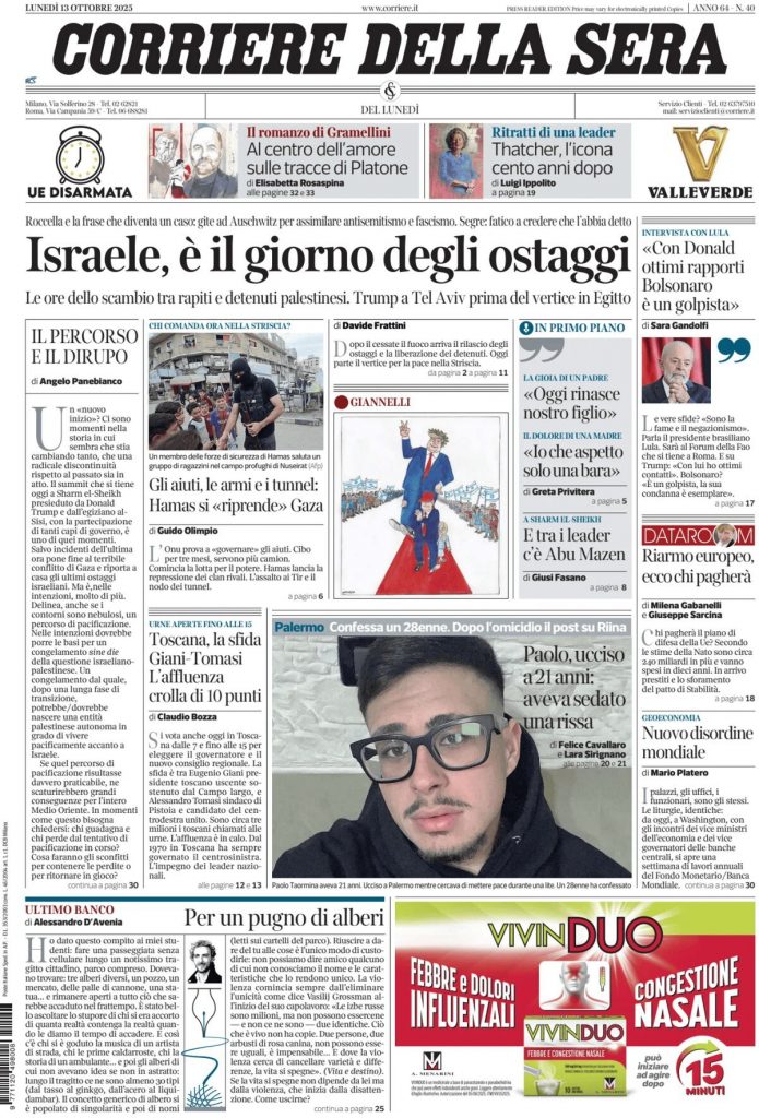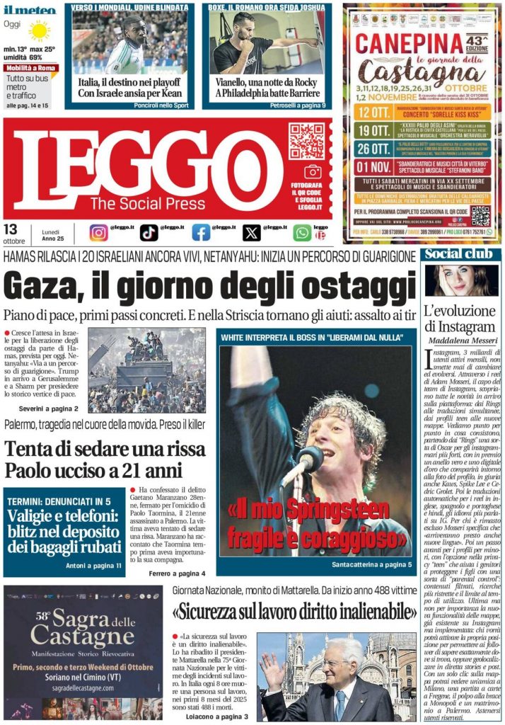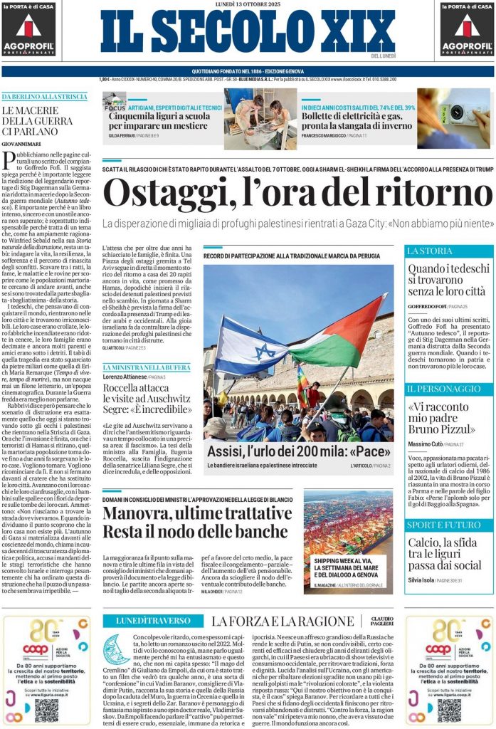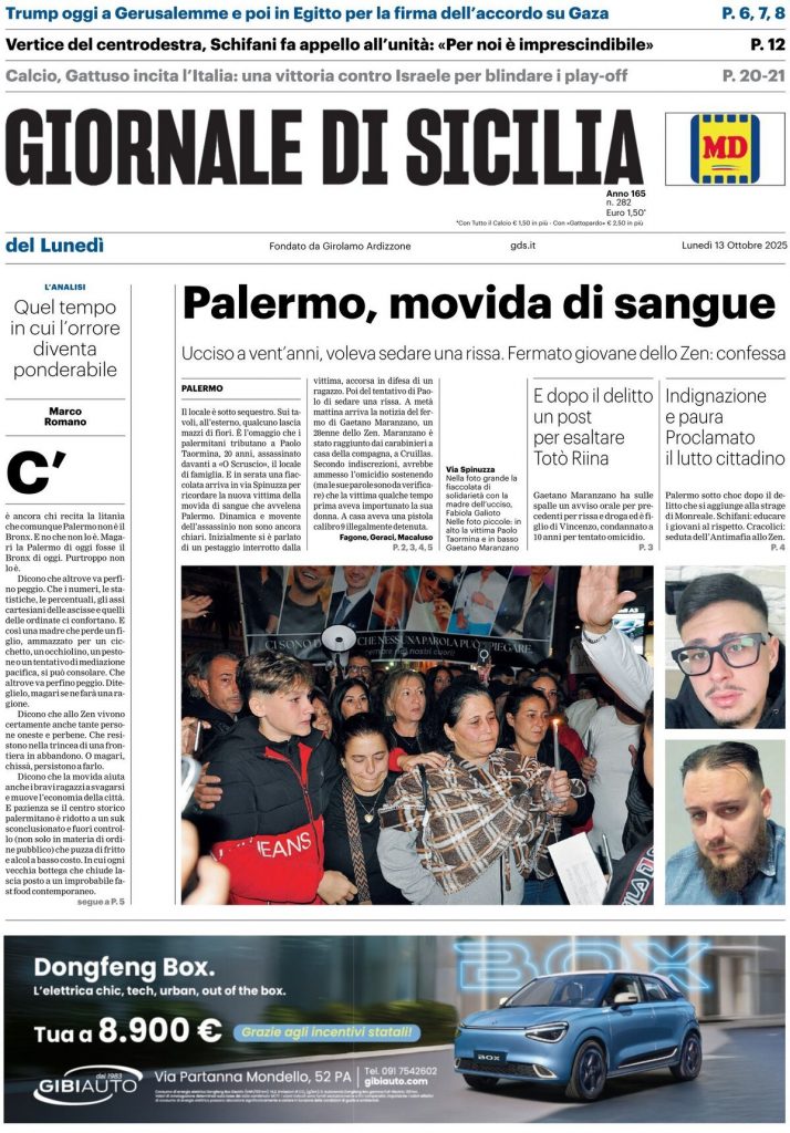 Reading: Le prime pagine delle maggiori testate giornalistiche siciliane, nazionali, economiche e sportive di Lunedì 13 Ottobre 2025