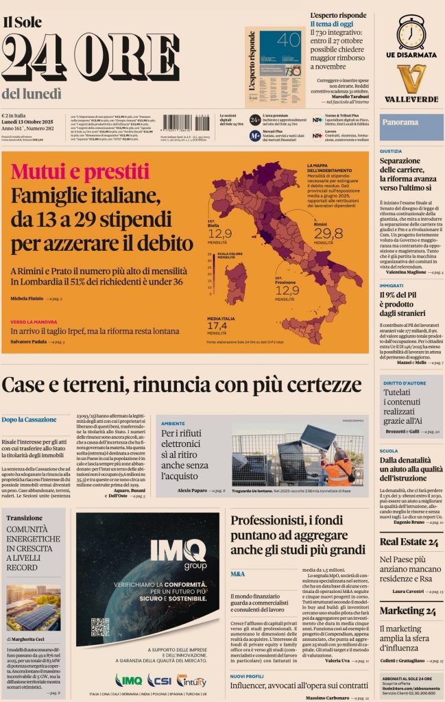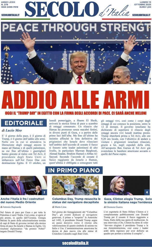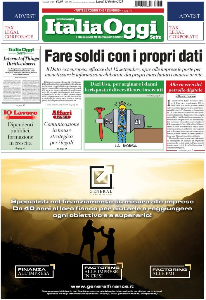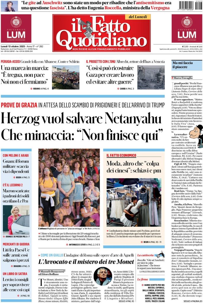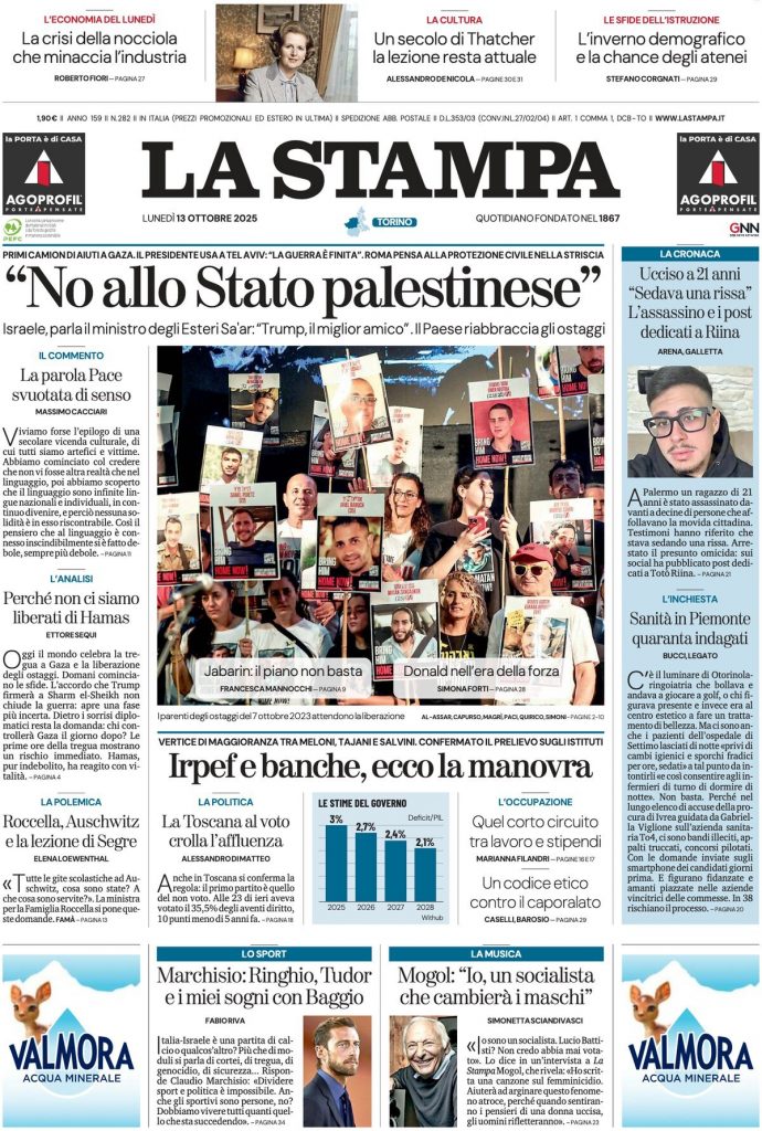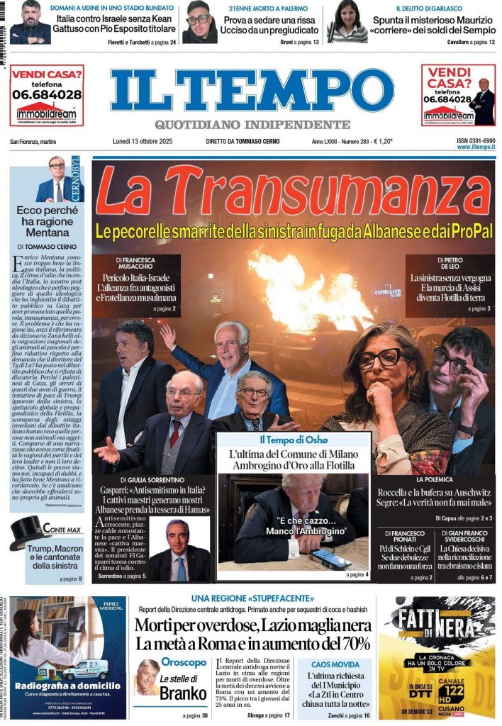 Reading: Le prime pagine delle maggiori testate giornalistiche siciliane, nazionali, economiche e sportive di Lunedì 13 Ottobre 2025