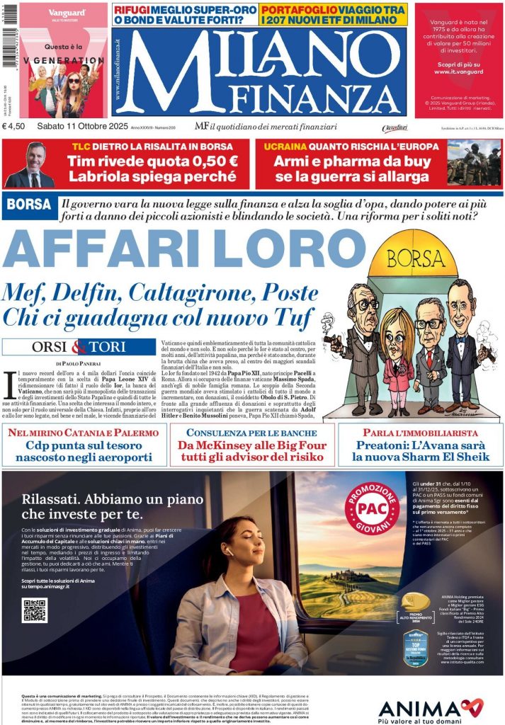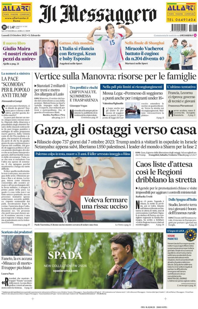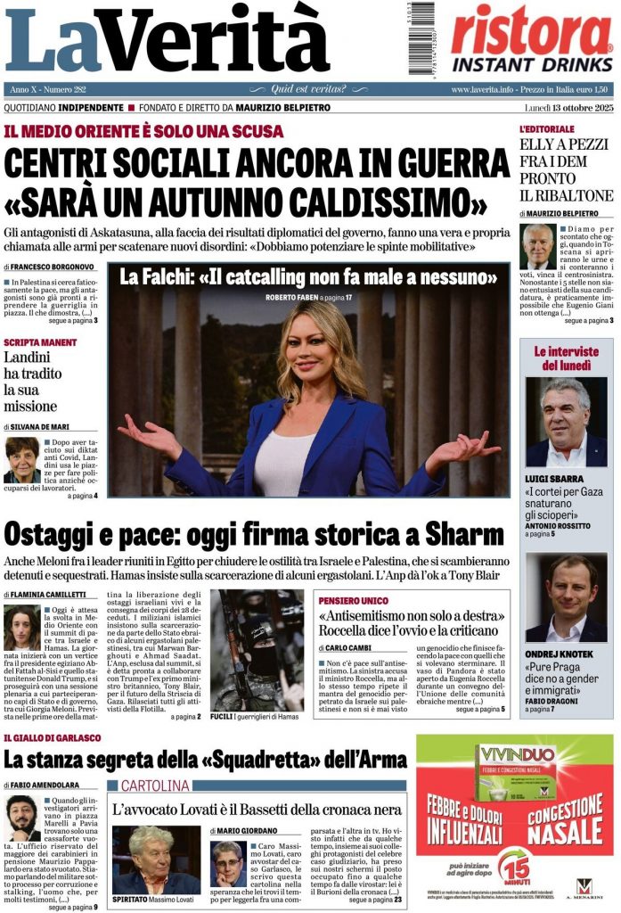 Caltanissetta 401 > News > Rassegna stampa > Le prime pagine delle maggiori testate giornalistiche siciliane, nazionali, economiche e sportive di Lunedì 13 Ottobre 2025