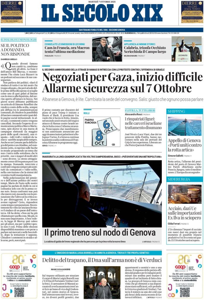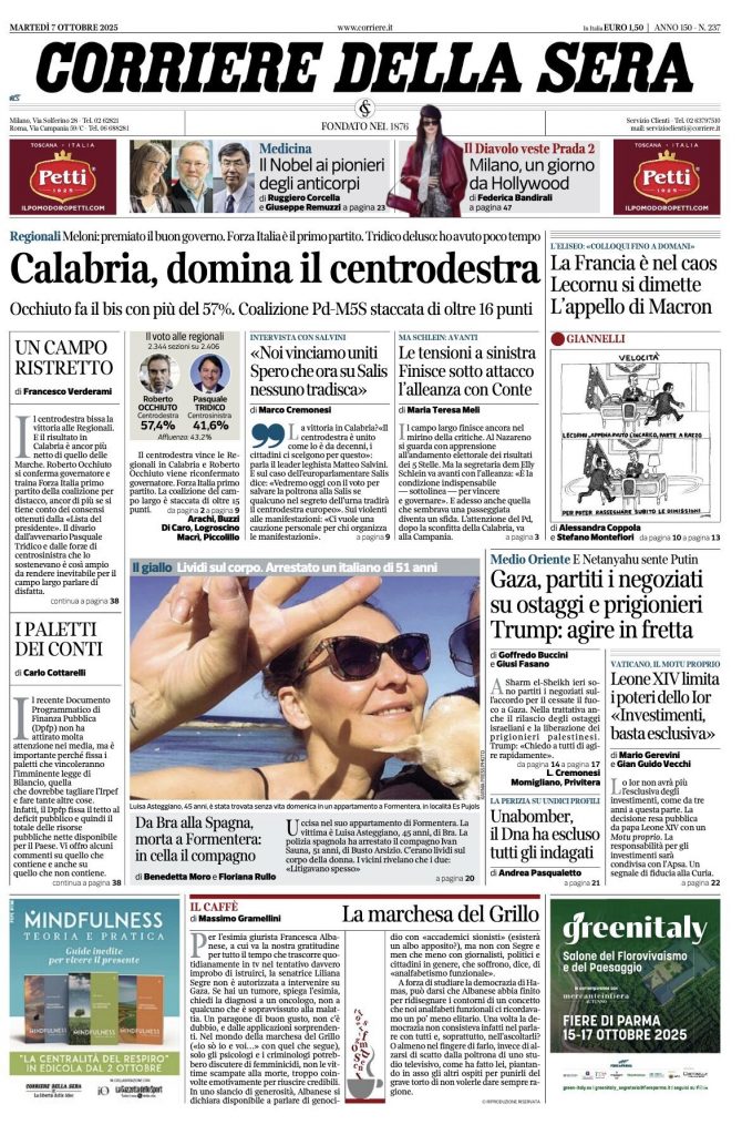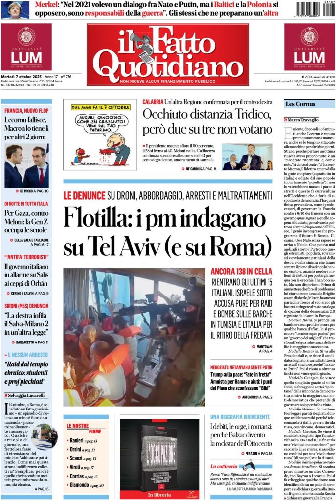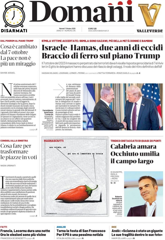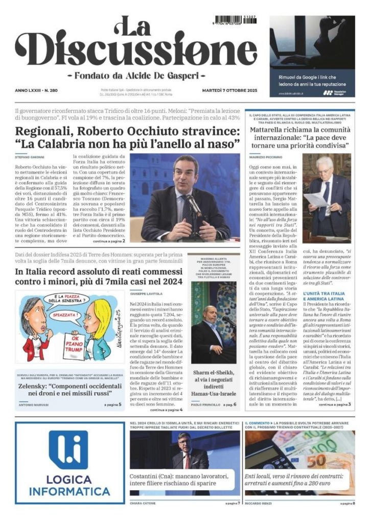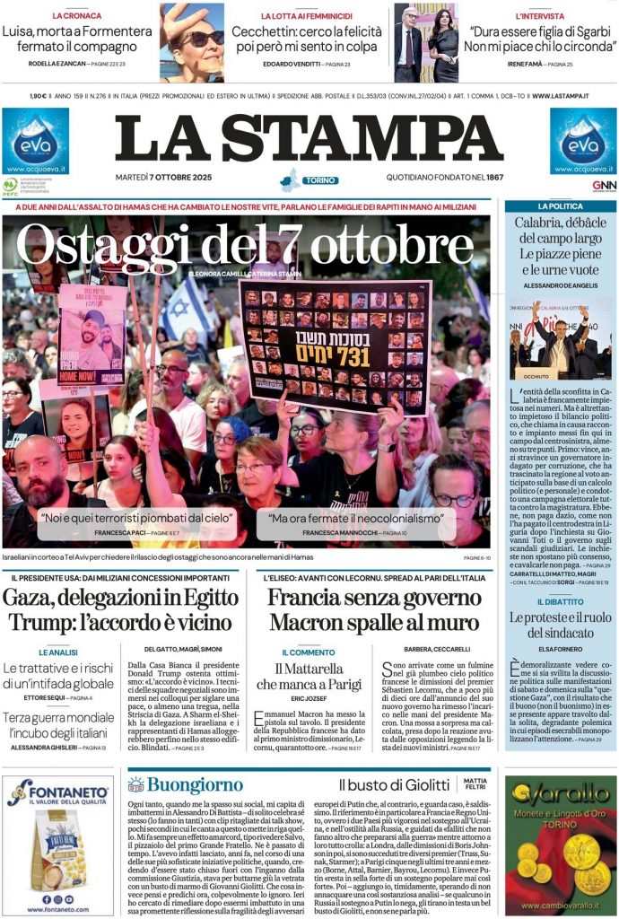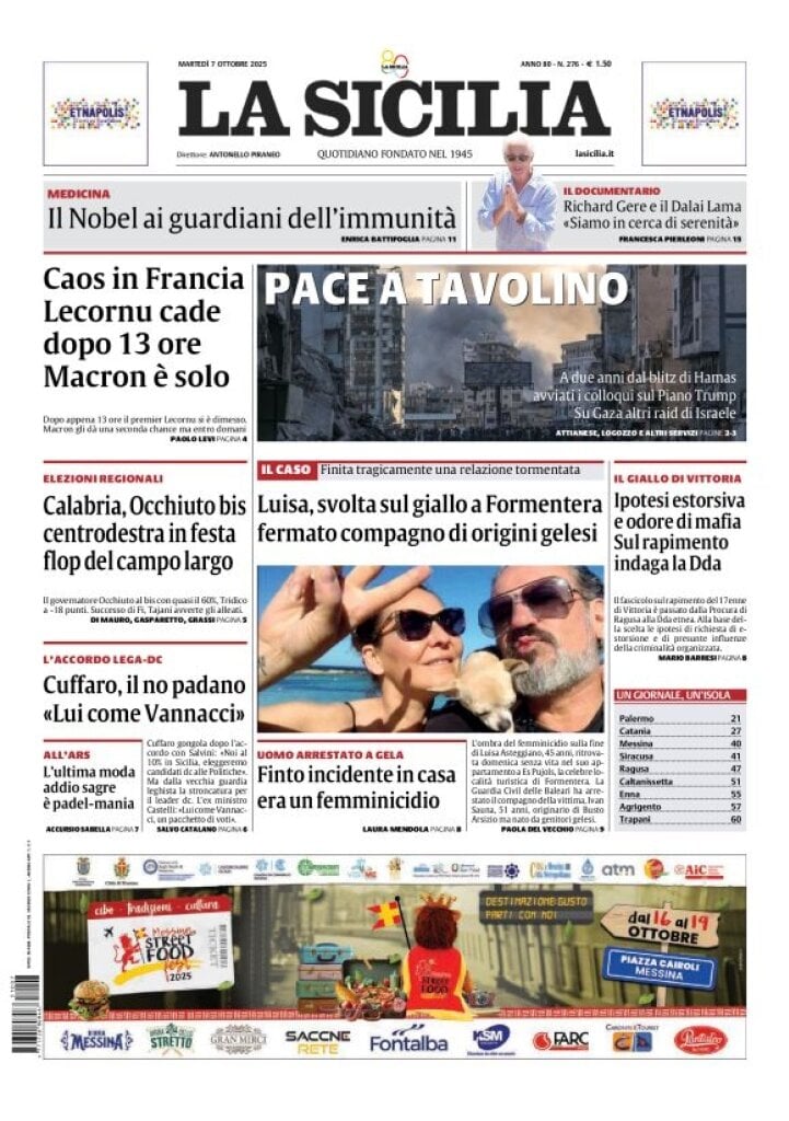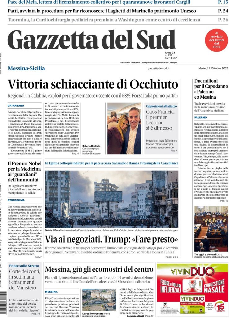 Caltanissetta 401 > News > Rassegna stampa > Le prime pagine delle maggiori testate giornalistiche siciliane, nazionali, economiche e sportive di Martedì 7 Ottobre 2025