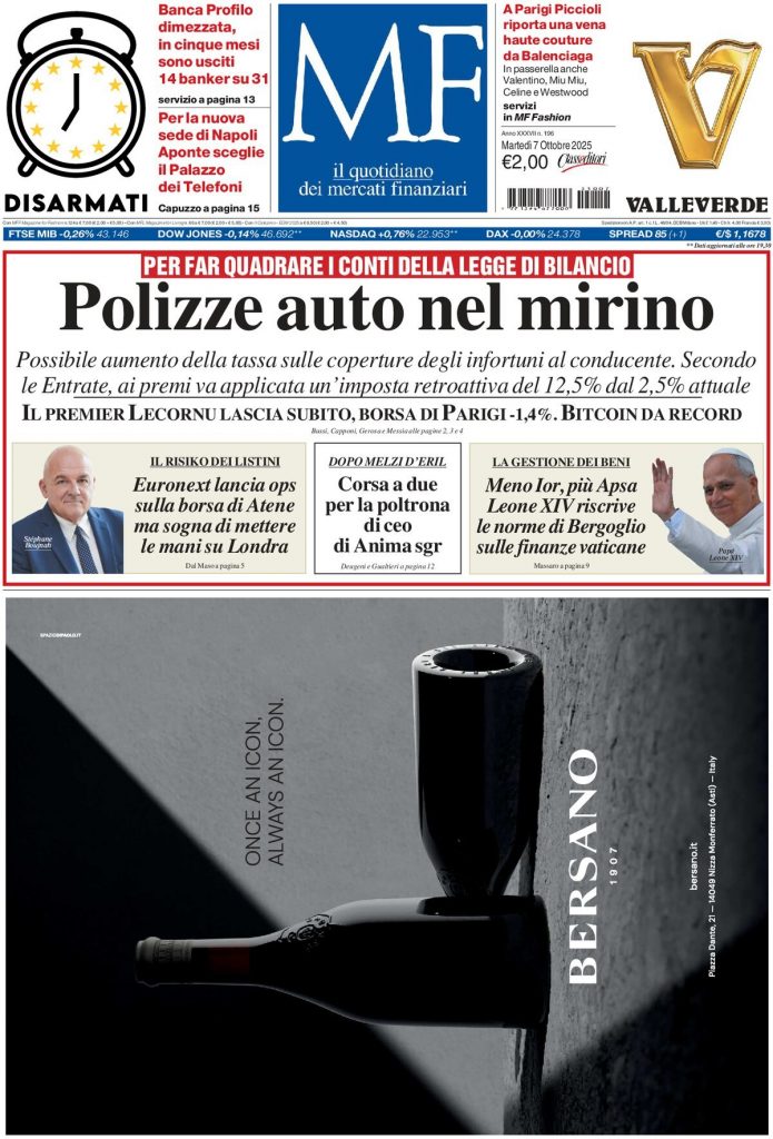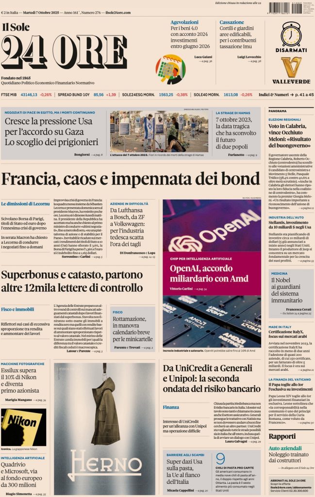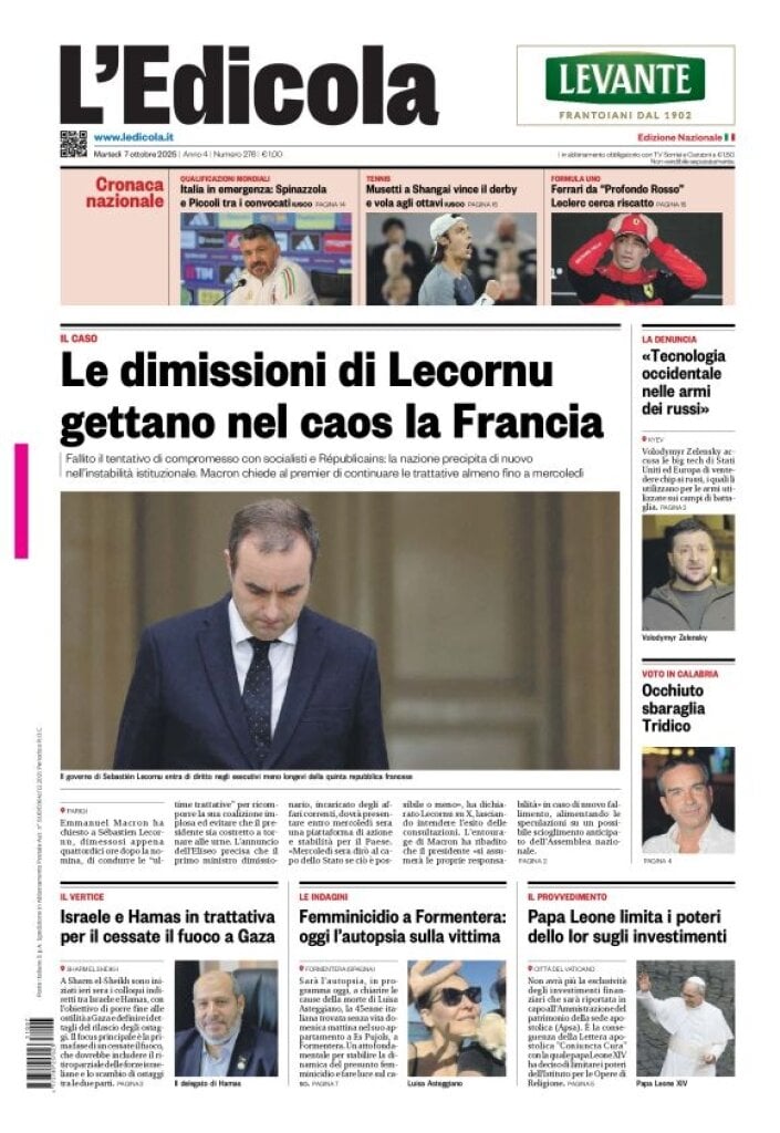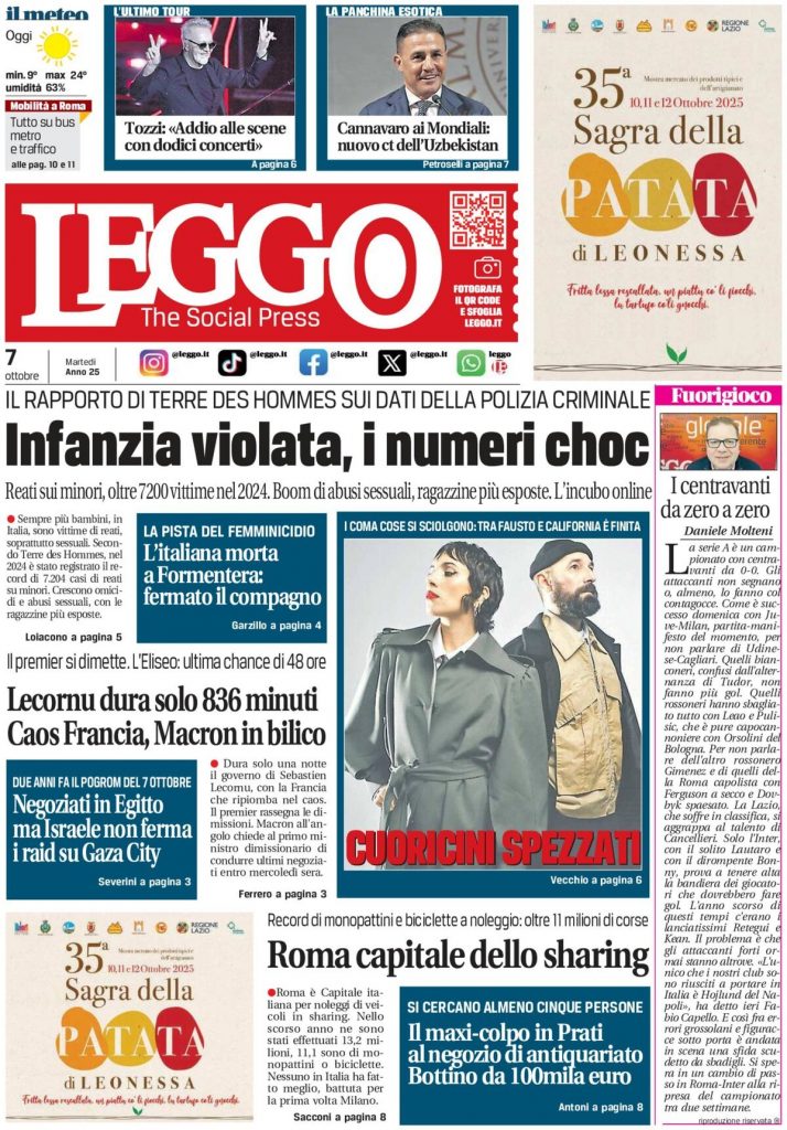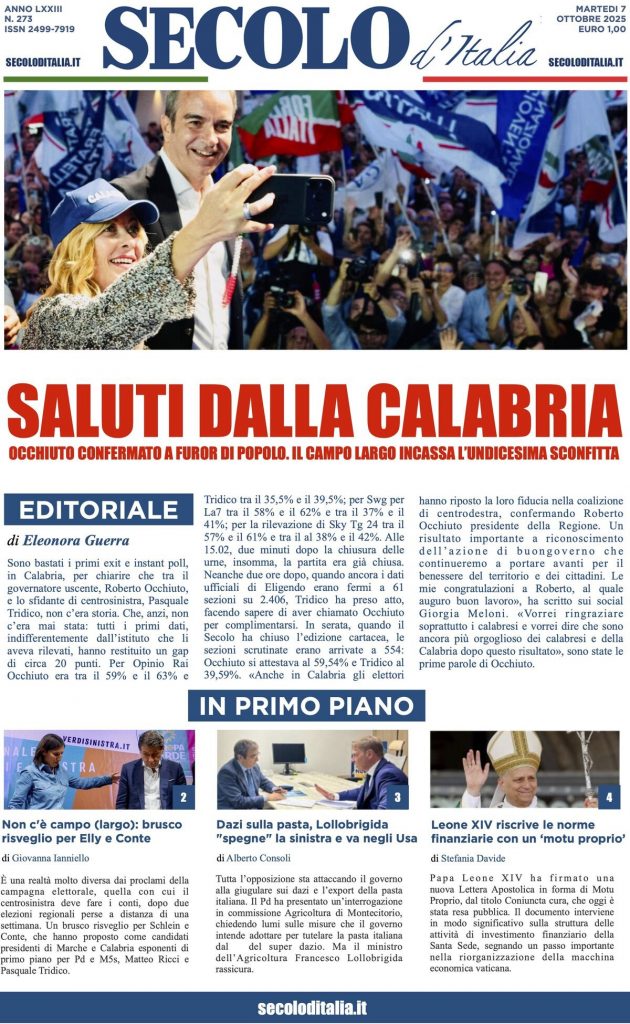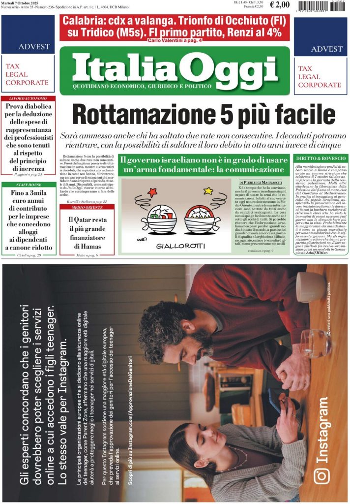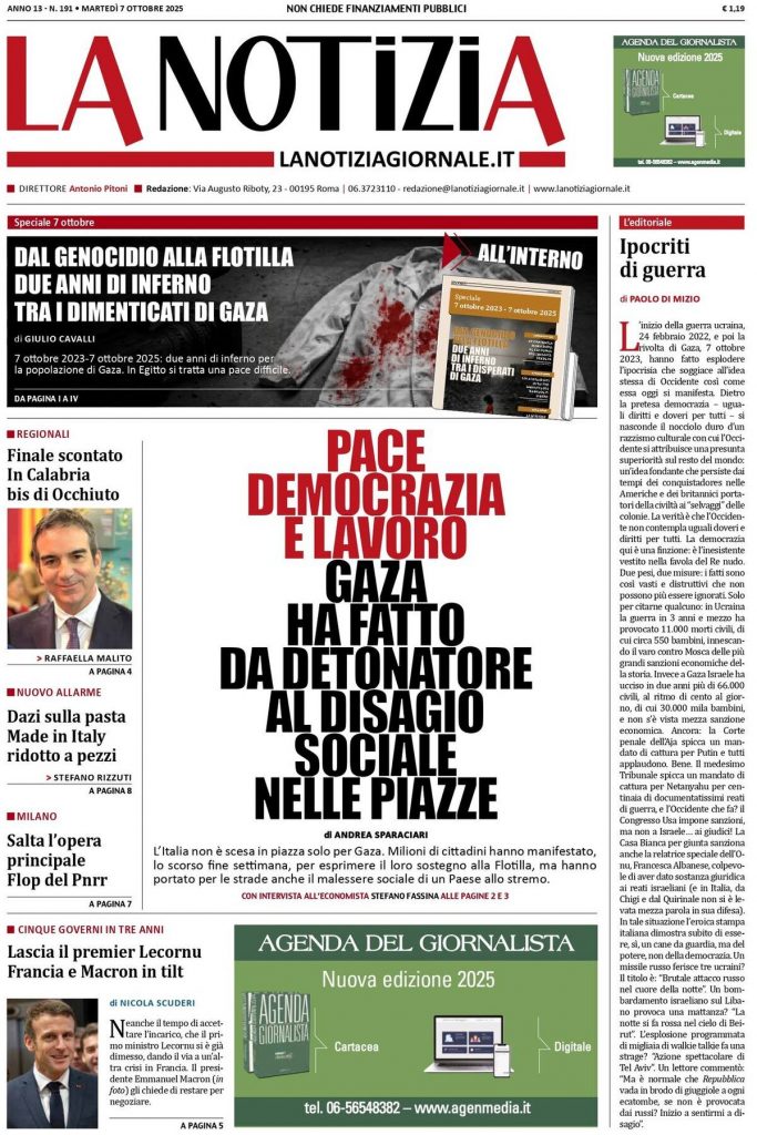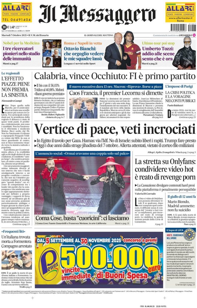 Caltanissetta 401 > News > Rassegna stampa > Le prime pagine delle maggiori testate giornalistiche siciliane, nazionali, economiche e sportive di Martedì 7 Ottobre 2025