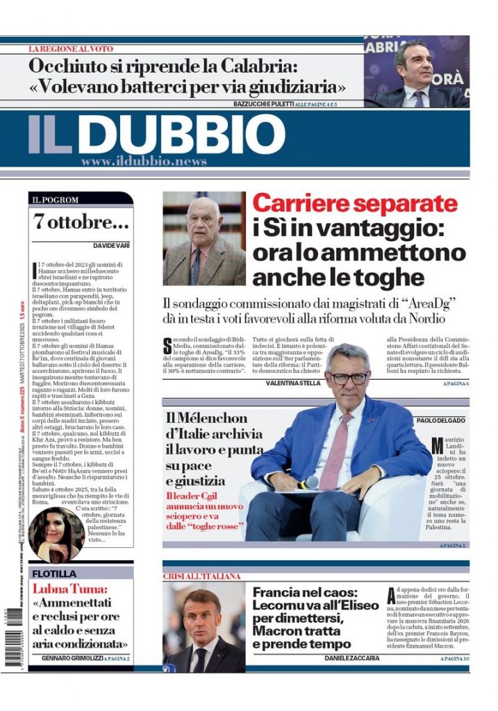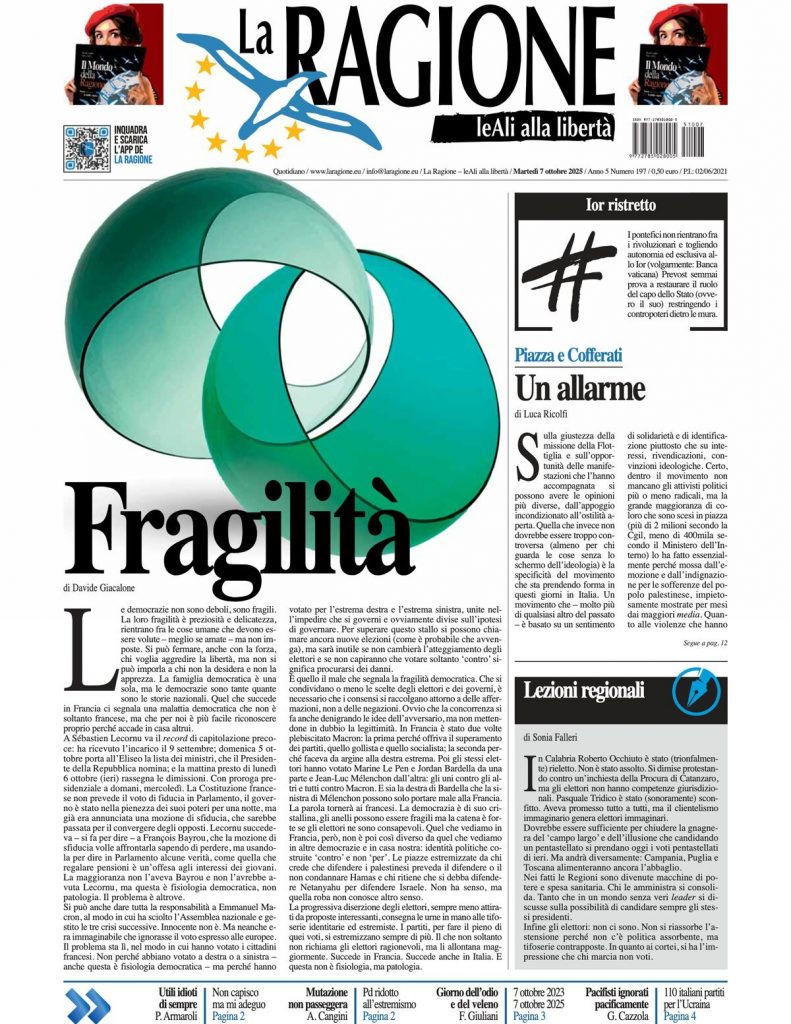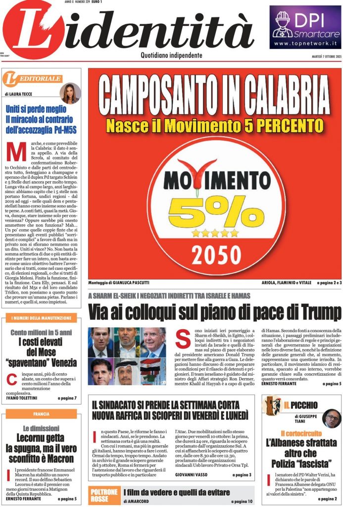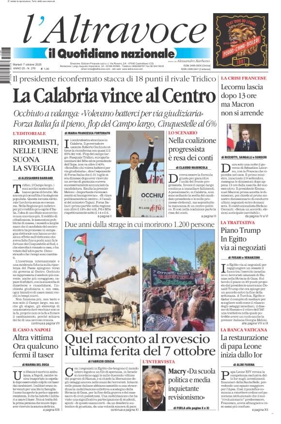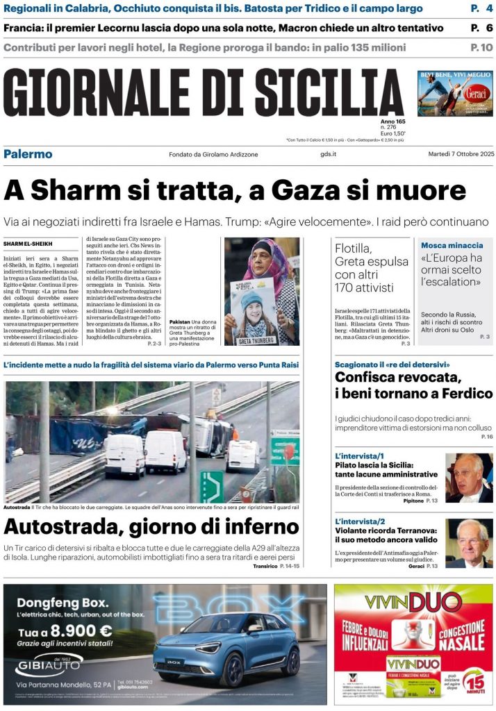 Reading: Le prime pagine delle maggiori testate giornalistiche siciliane, nazionali, economiche e sportive di Martedì 7 Ottobre 2025
