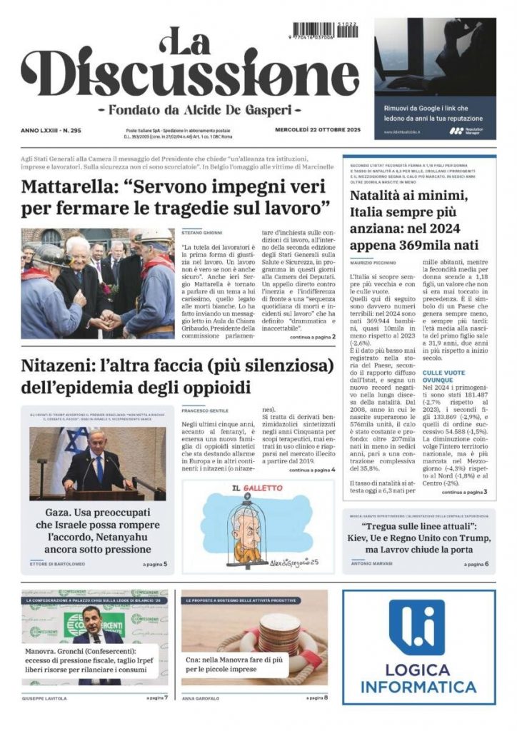 Caltanissetta 401 > News > Rassegna stampa > Le prime pagine delle maggiori testate giornalistiche siciliane, nazionali, economiche e sportive di Mercoldeì 22 Ottobre 2025