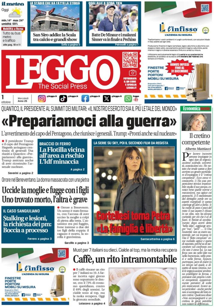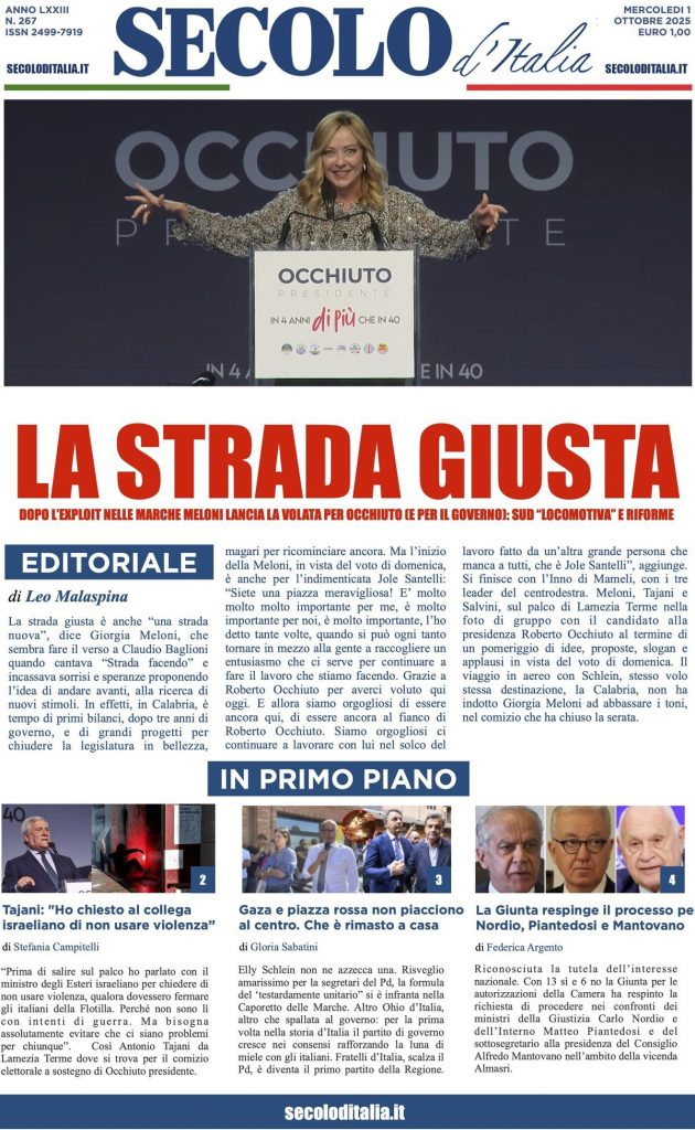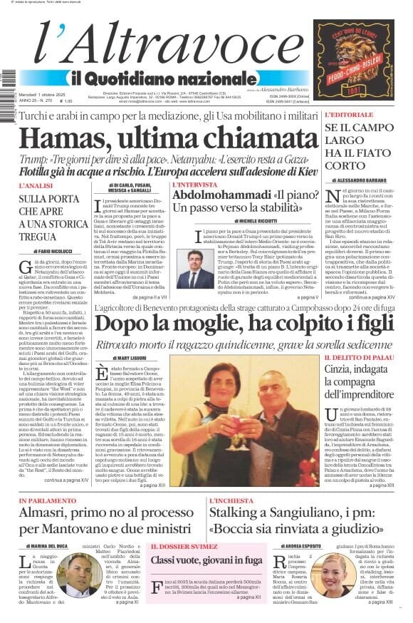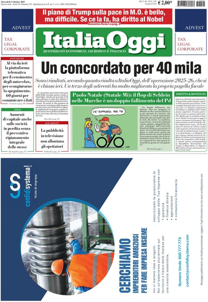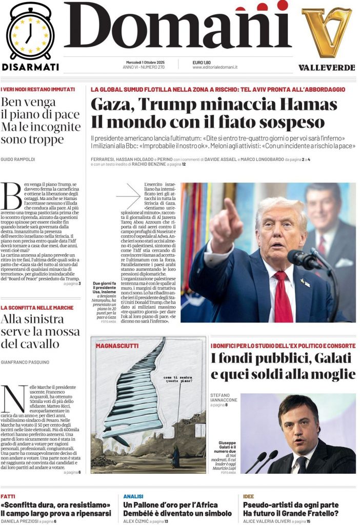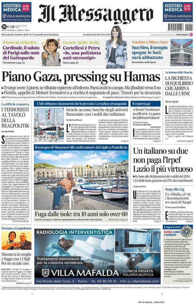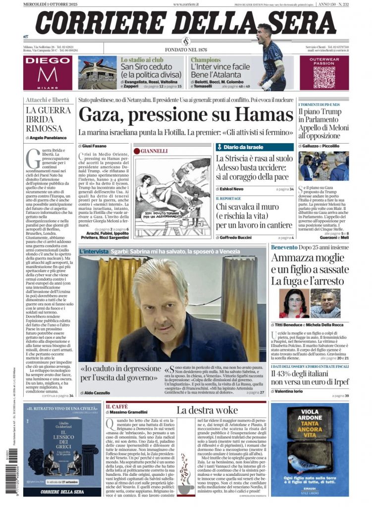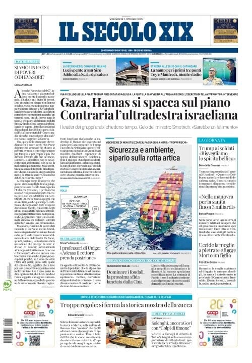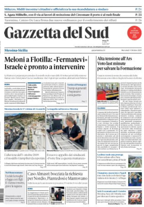 Caltanissetta 401 > News > Rassegna stampa > Le prime pagine delle maggiori testate giornalistiche siciliane, nazionali, economiche e sportive di Mercoledì 1 Ottobre 2025