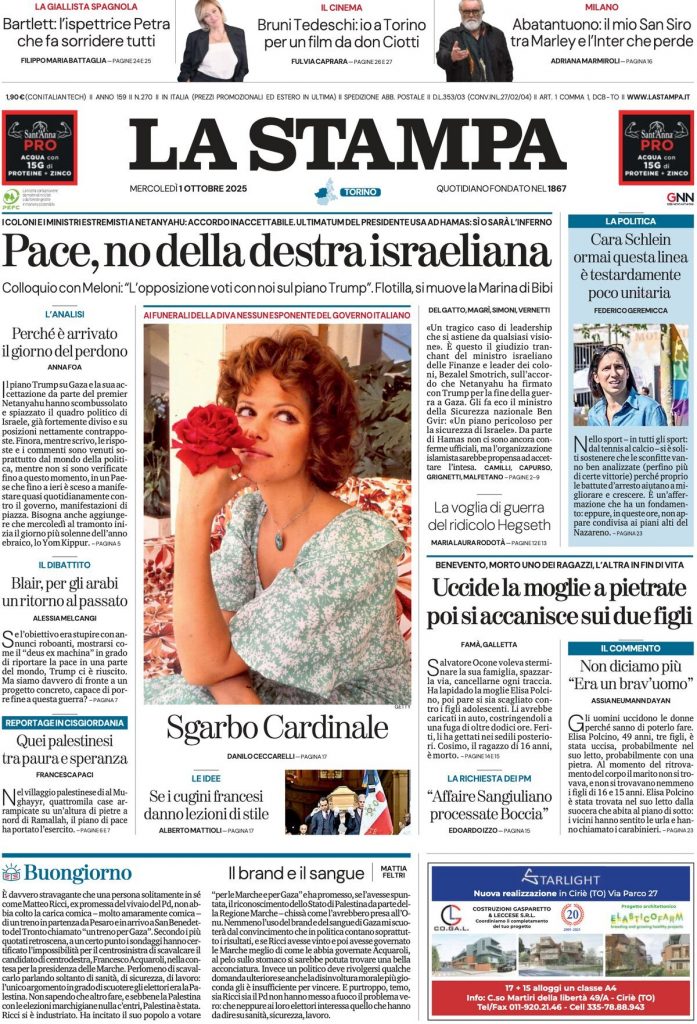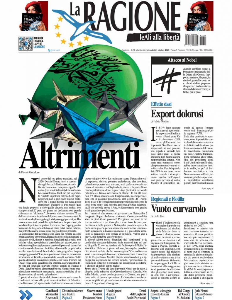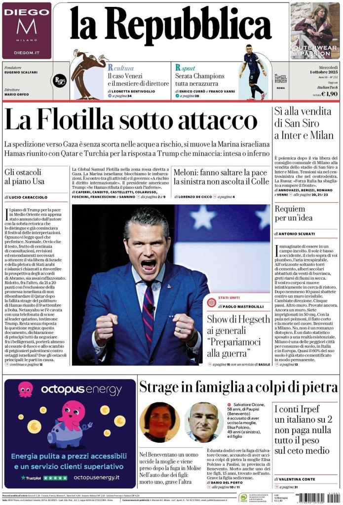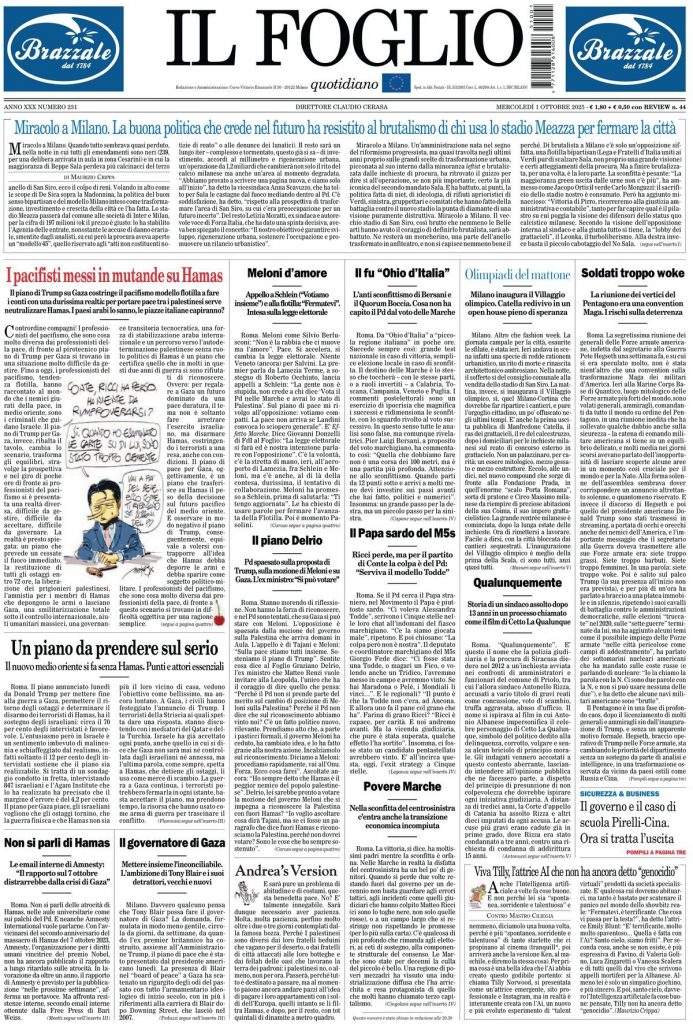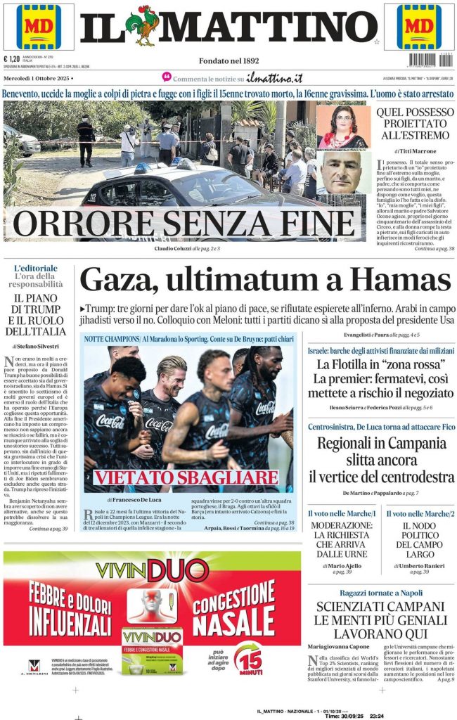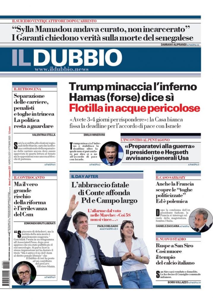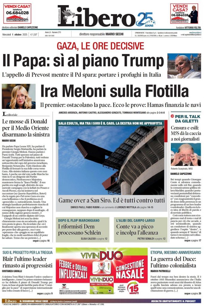 Caltanissetta 401 > News > Rassegna stampa > Le prime pagine delle maggiori testate giornalistiche siciliane, nazionali, economiche e sportive di Mercoledì 1 Ottobre 2025