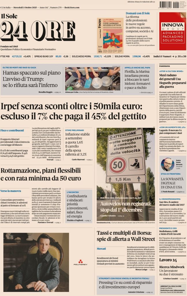 Reading: Le prime pagine delle maggiori testate giornalistiche siciliane, nazionali, economiche e sportive di Mercoledì 1 Ottobre 2025