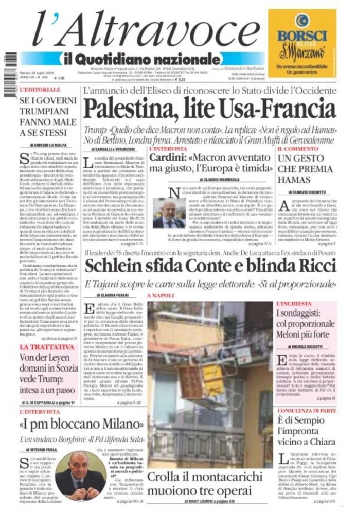 Reading: Le prime pagine delle maggiori testate giornalistiche siciliane, nazionali, economiche e sportive di Sabato 26 Luglio 2025