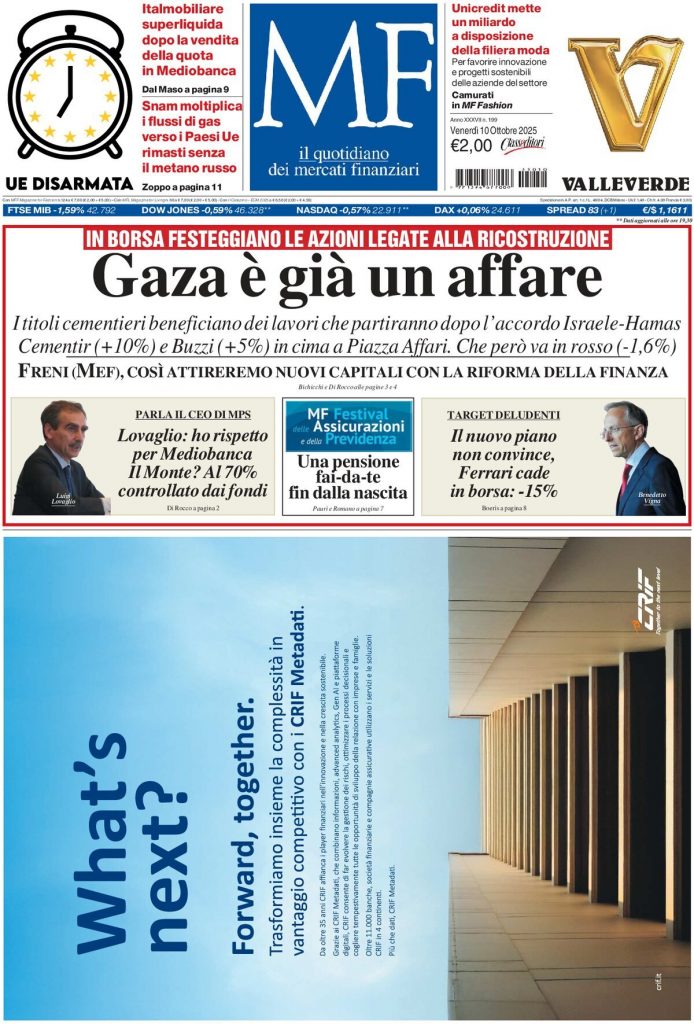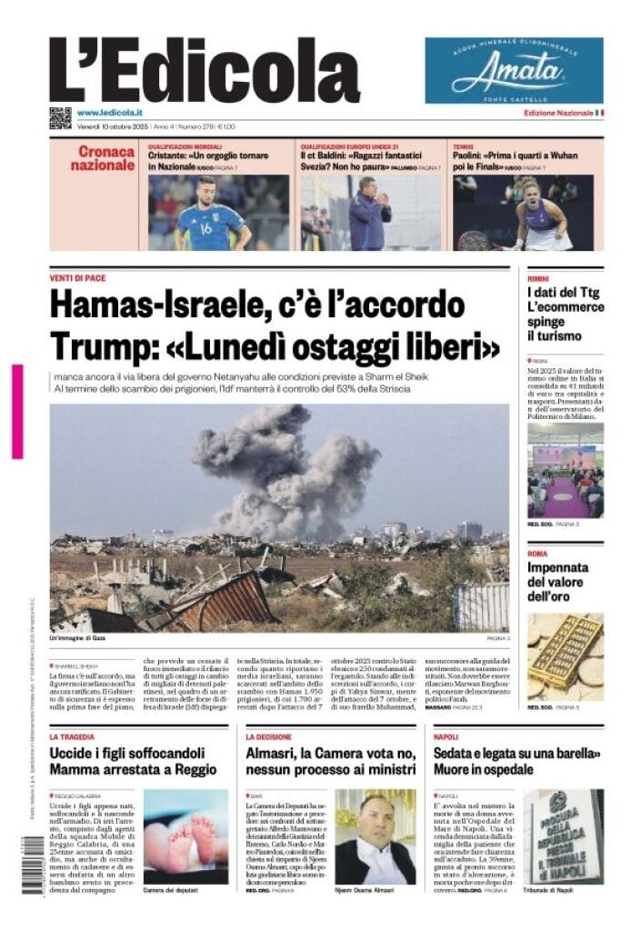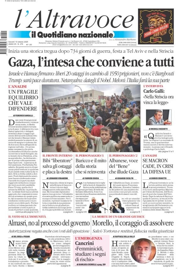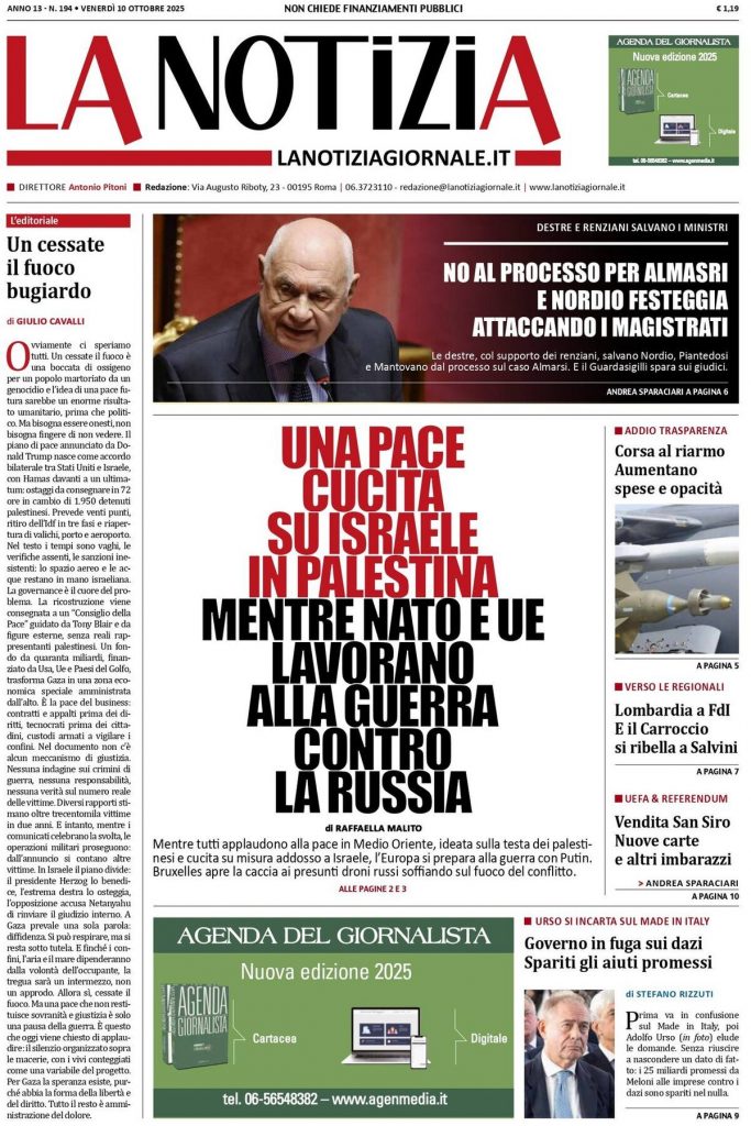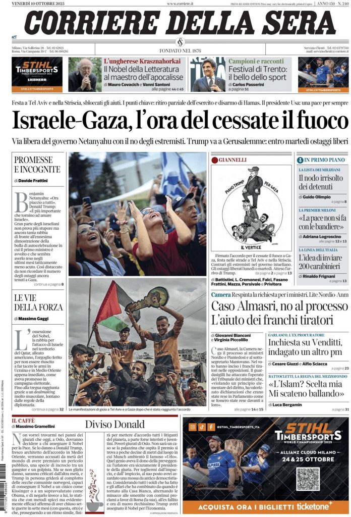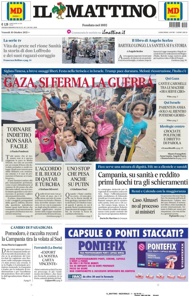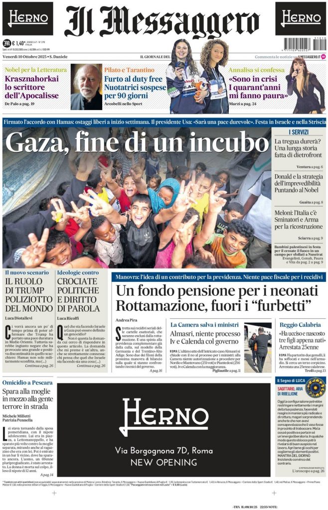 Caltanissetta 401 > News > Rassegna stampa > Le prime pagine delle maggiori testate giornalistiche siciliane, nazionali, economiche e sportive di Venerdì 10 Ottobre 2025