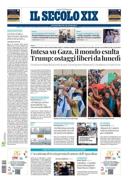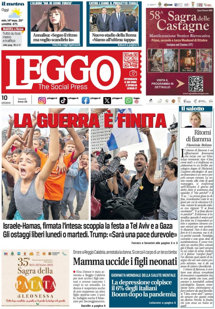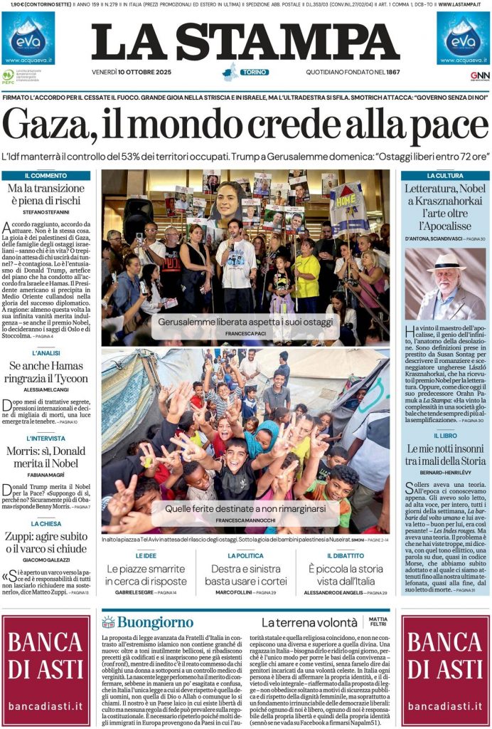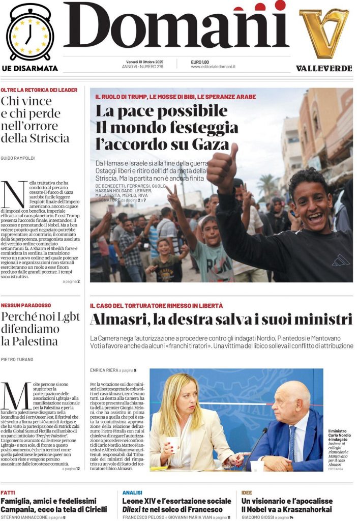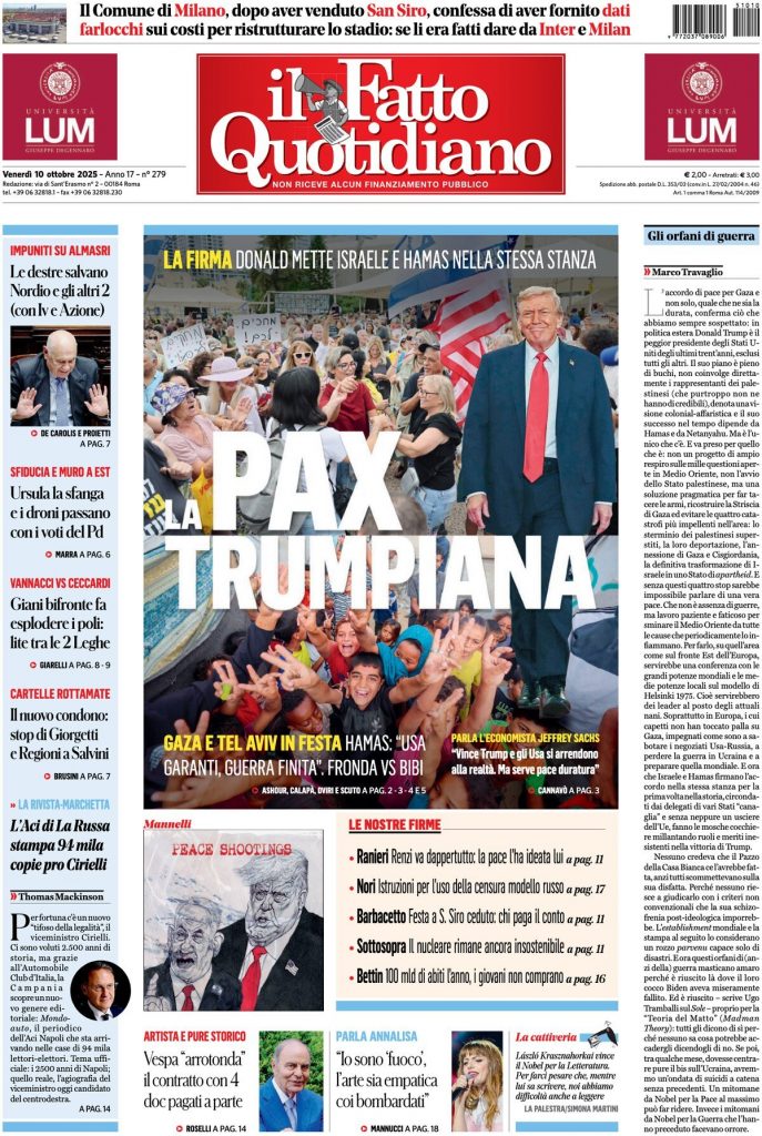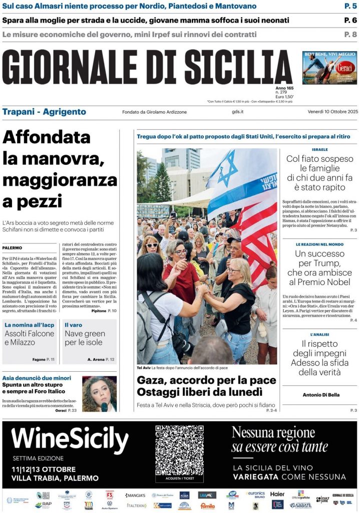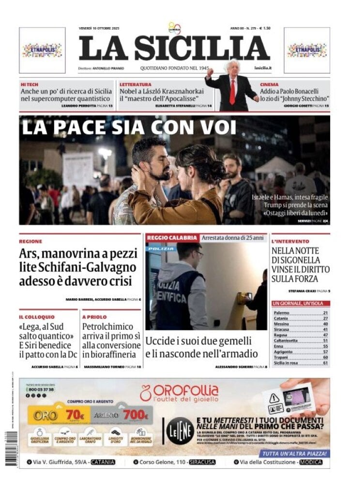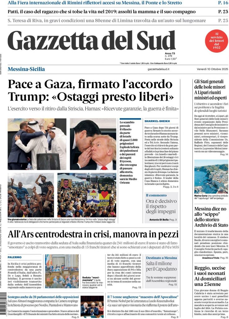 Reading: Le prime pagine delle maggiori testate giornalistiche siciliane, nazionali, economiche e sportive di Venerdì 10 Ottobre 2025
