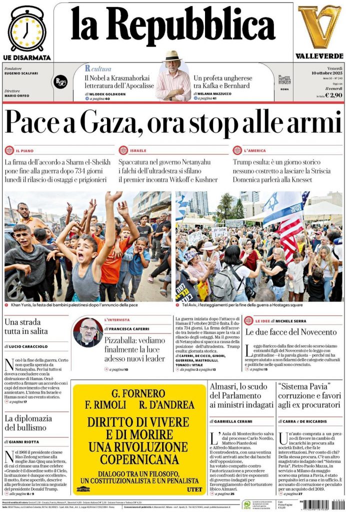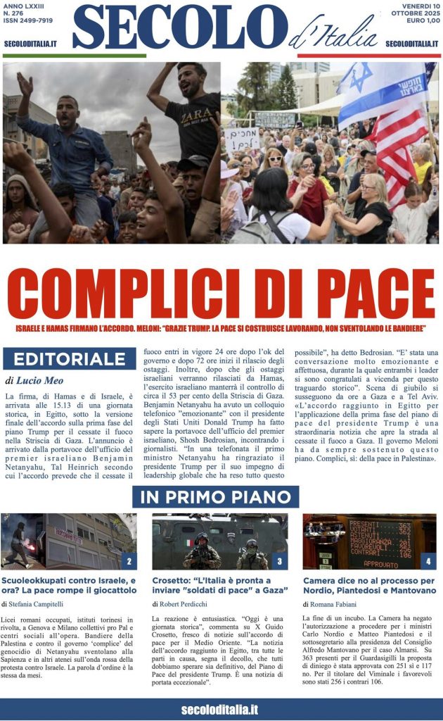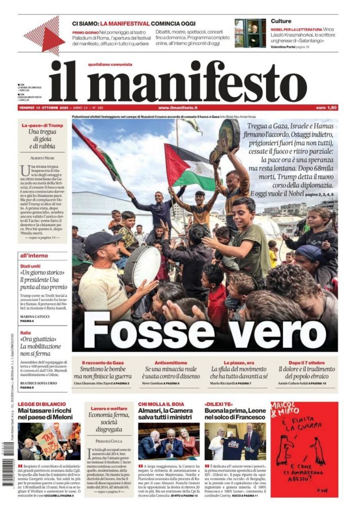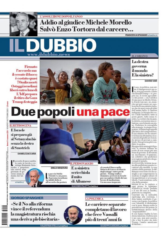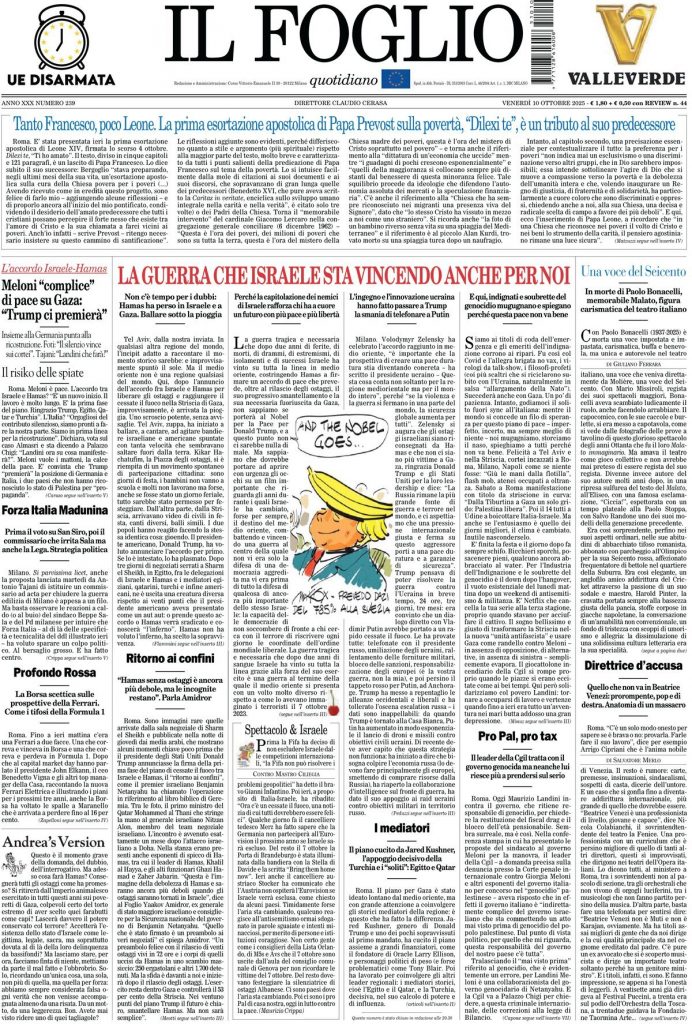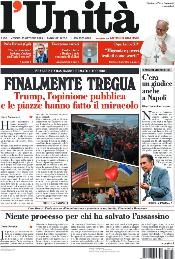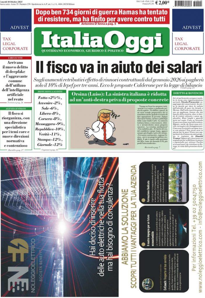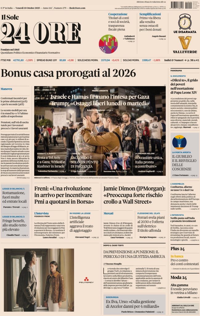 Reading: Le prime pagine delle maggiori testate giornalistiche siciliane, nazionali, economiche e sportive di Venerdì 10 Ottobre 2025