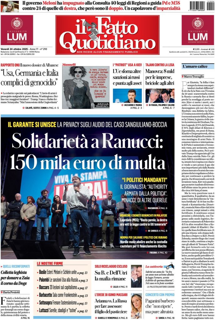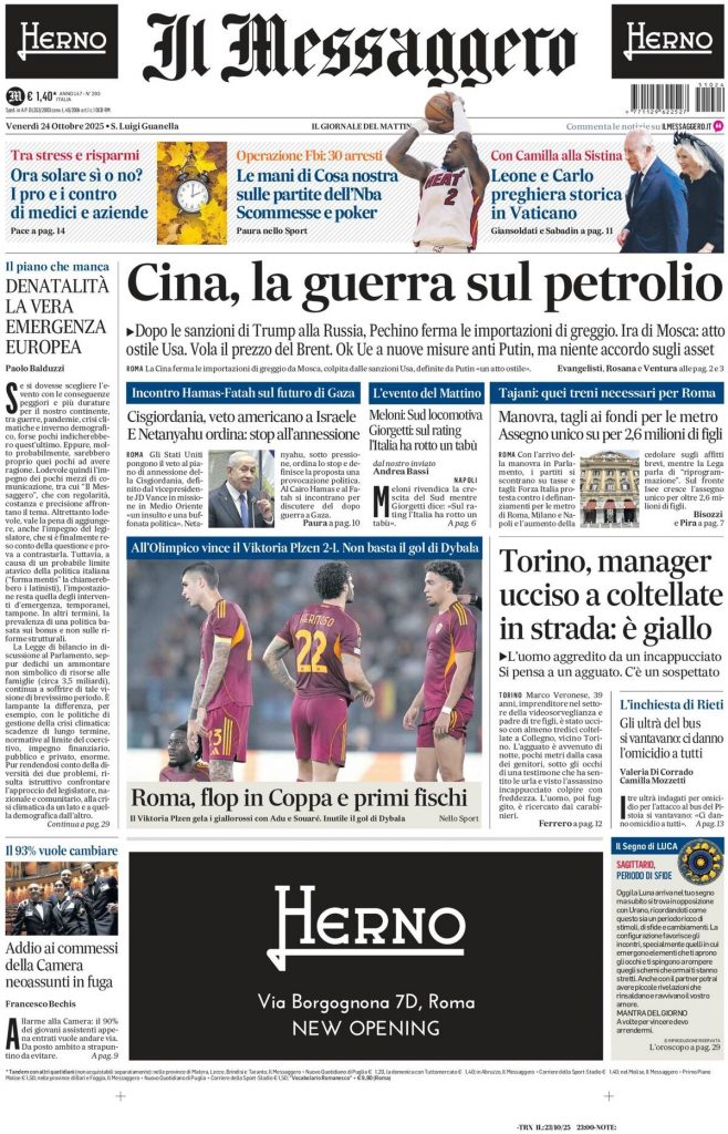 Caltanissetta 401 > News > Rassegna stampa > Le prime pagine delle maggiori testate giornalistiche siciliane, nazionali, economiche e sportive di Venerdì 24 Ottobre 2025