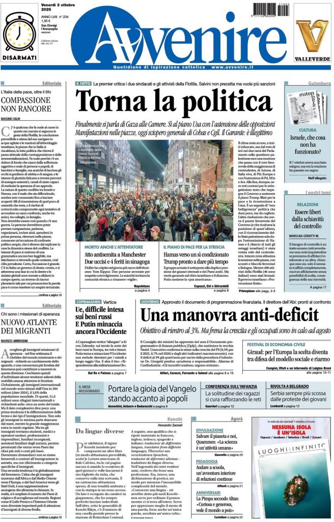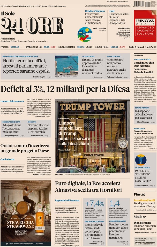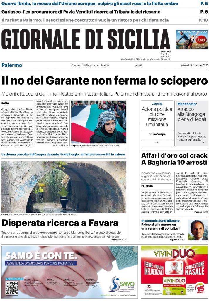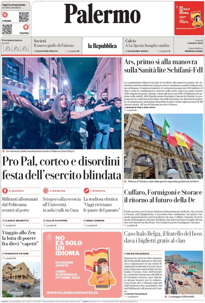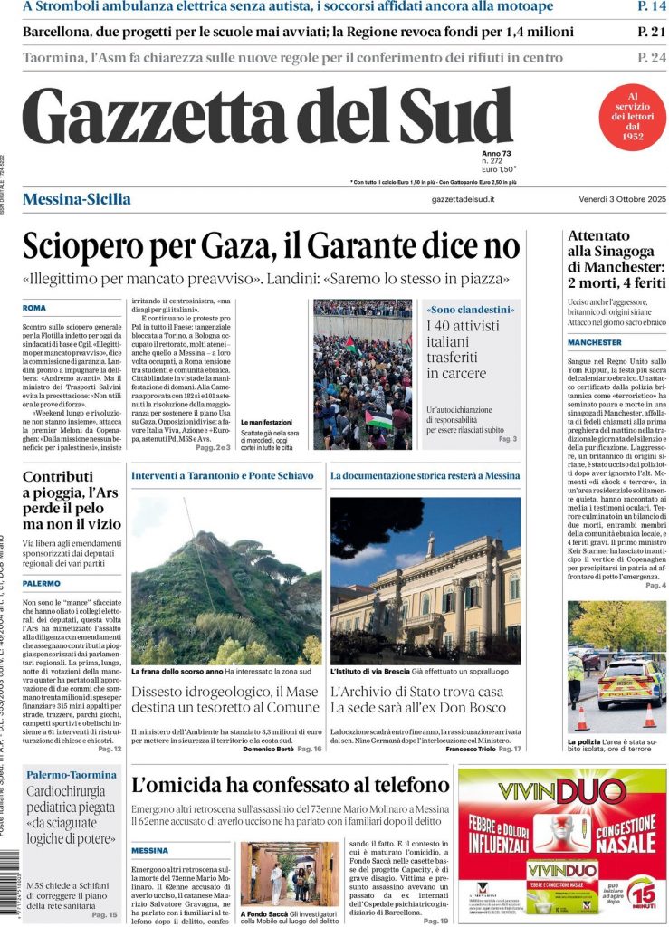 Reading: Le prime pagine delle maggiori testate giornalistiche siciliane, nazionali, economiche e sportive di Venerdì 3 Ottobre 2025