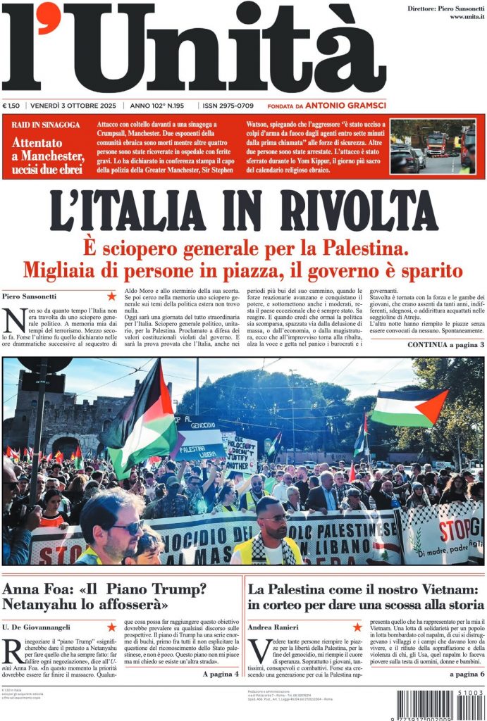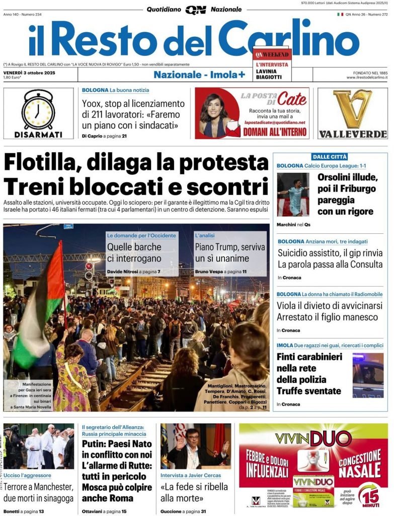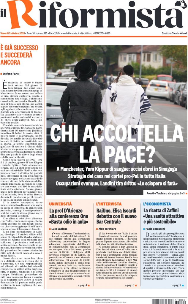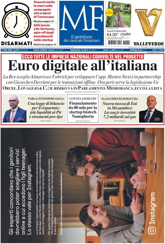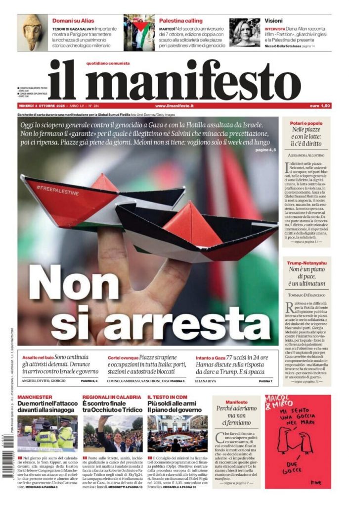 Reading: Le prime pagine delle maggiori testate giornalistiche siciliane, nazionali, economiche e sportive di Venerdì 3 Ottobre 2025