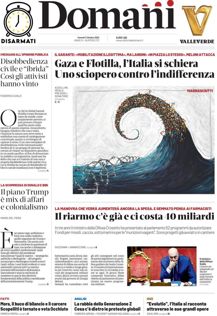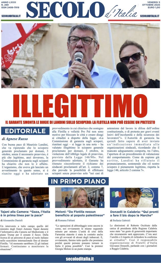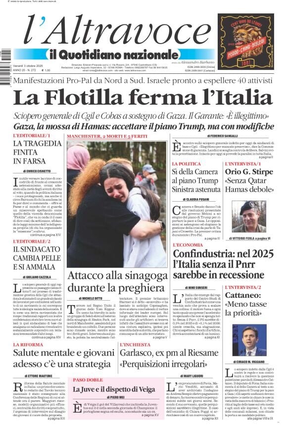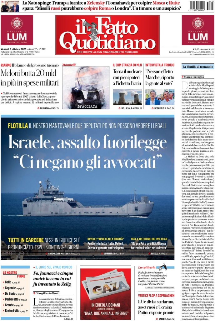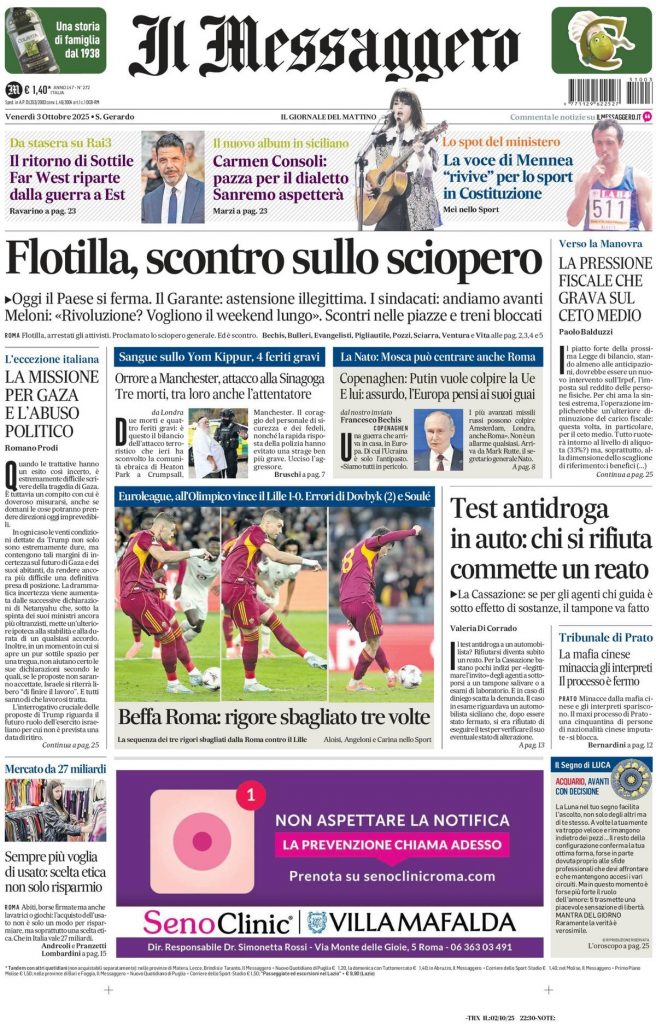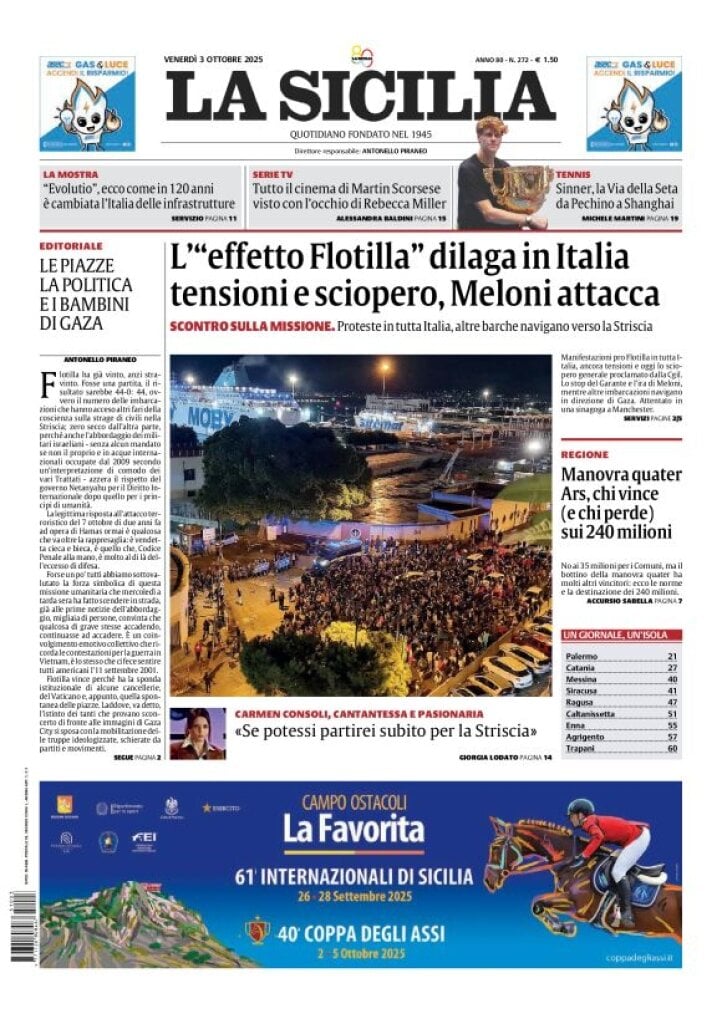 Caltanissetta 401 > News > Rassegna stampa > Le prime pagine delle maggiori testate giornalistiche siciliane, nazionali, economiche e sportive di Venerdì 3 Ottobre 2025