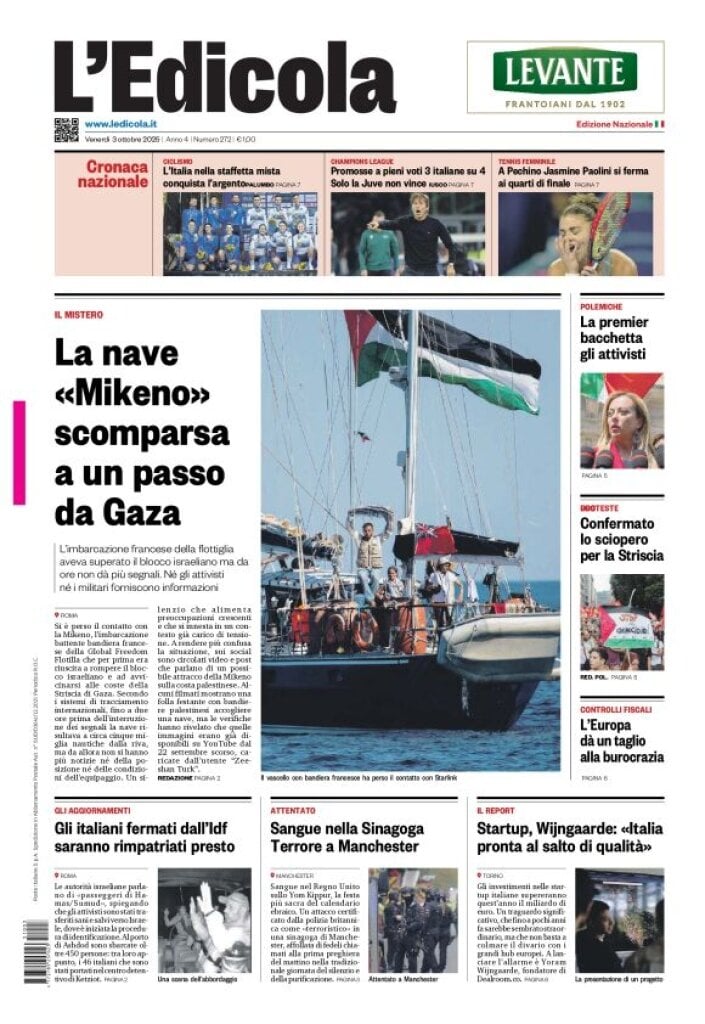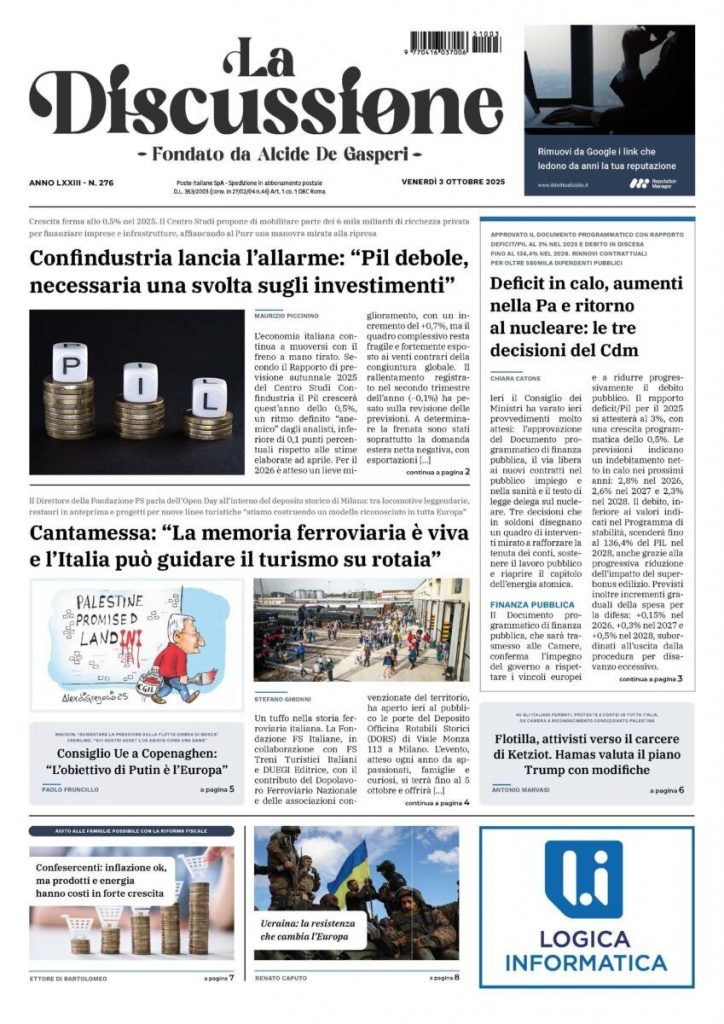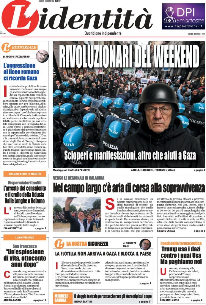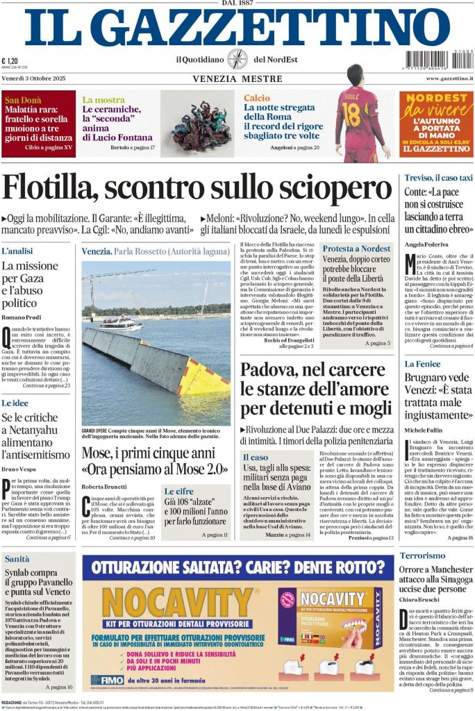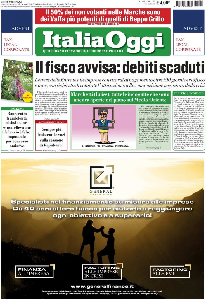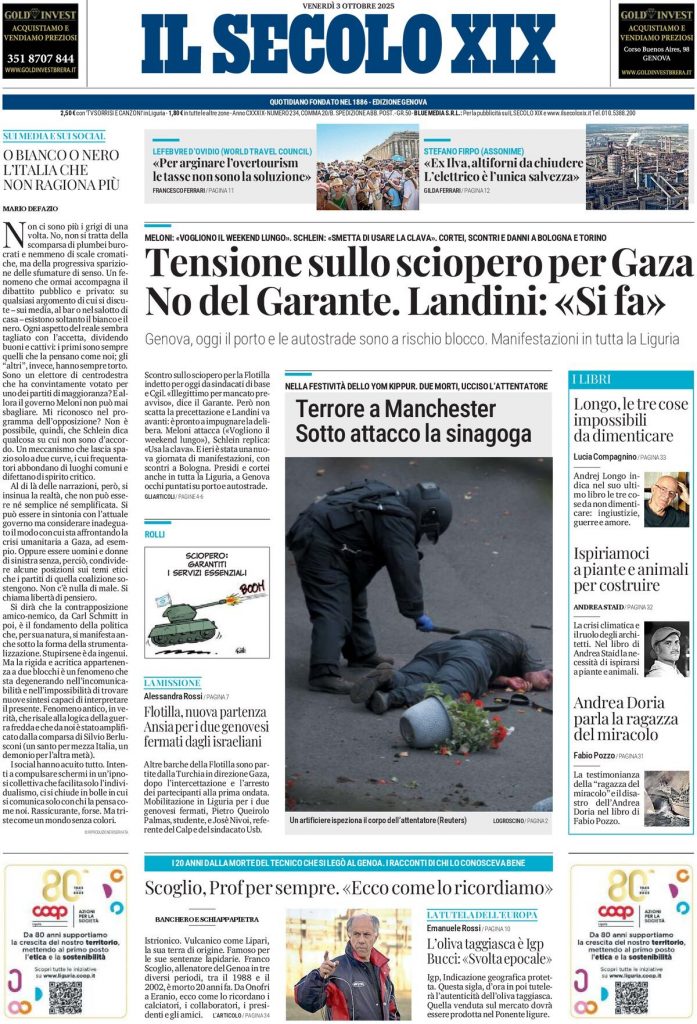 Caltanissetta 401 > News > Rassegna stampa > Le prime pagine delle maggiori testate giornalistiche siciliane, nazionali, economiche e sportive di Venerdì 3 Ottobre 2025