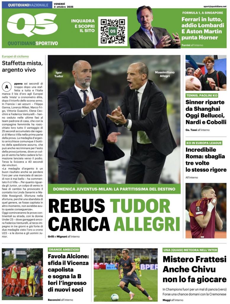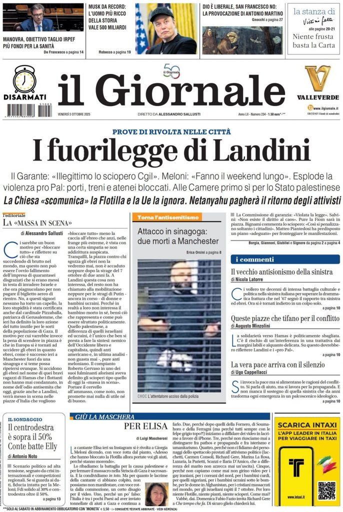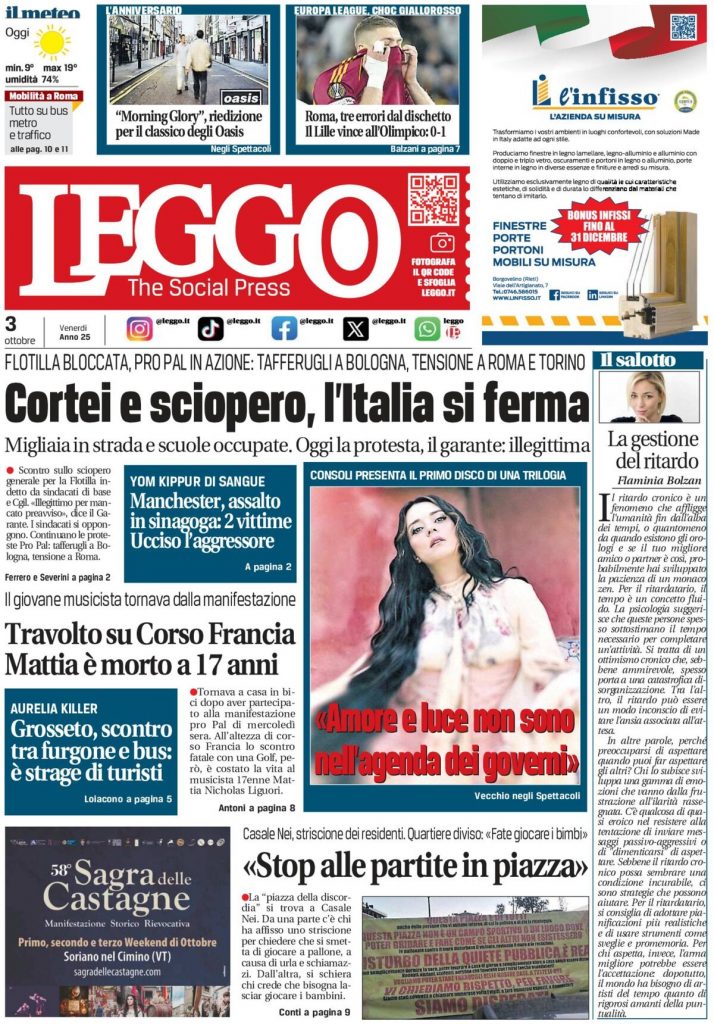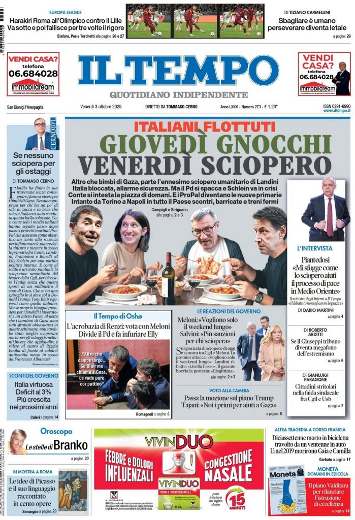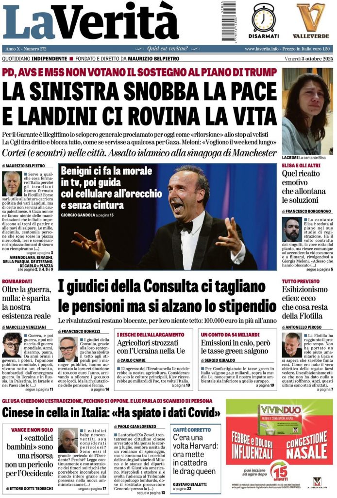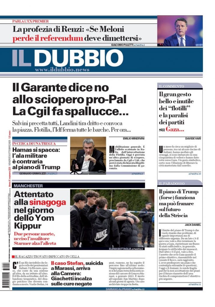 Caltanissetta 401 > News > Rassegna stampa > Le prime pagine delle maggiori testate giornalistiche siciliane, nazionali, economiche e sportive di Venerdì 3 Ottobre 2025