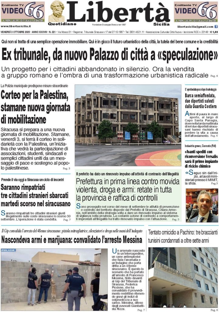 Le prime pagine delle maggiori testate giornalistiche siciliane, nazionali, economiche e sportive di Venerdì 3 Ottobre 2025