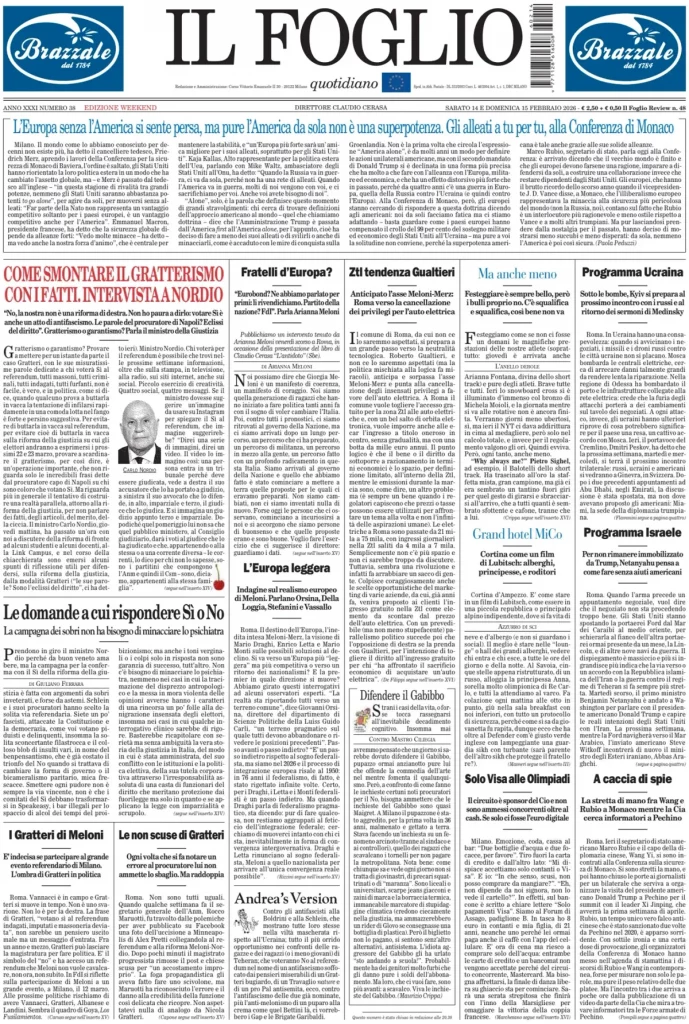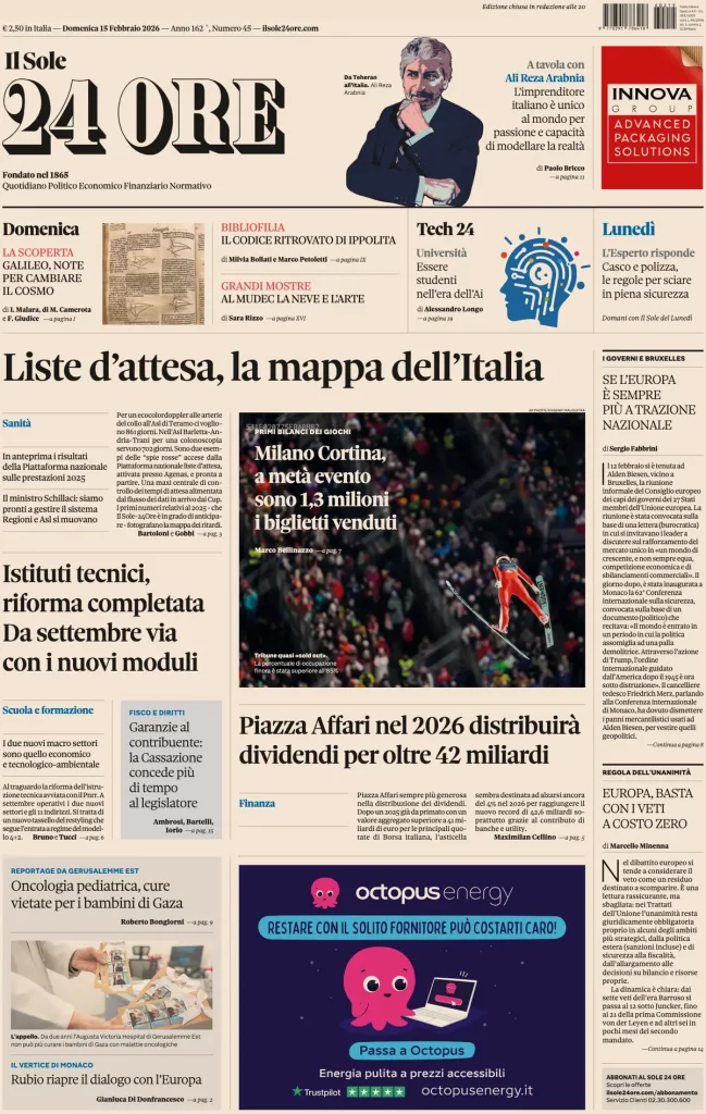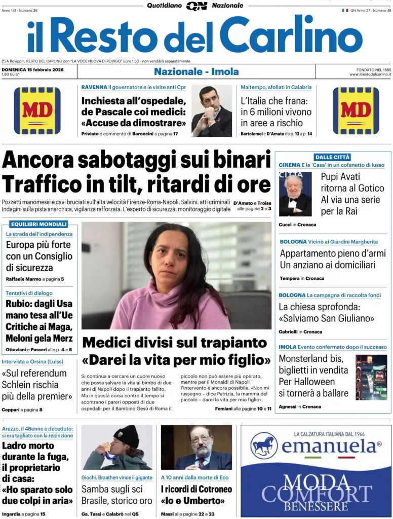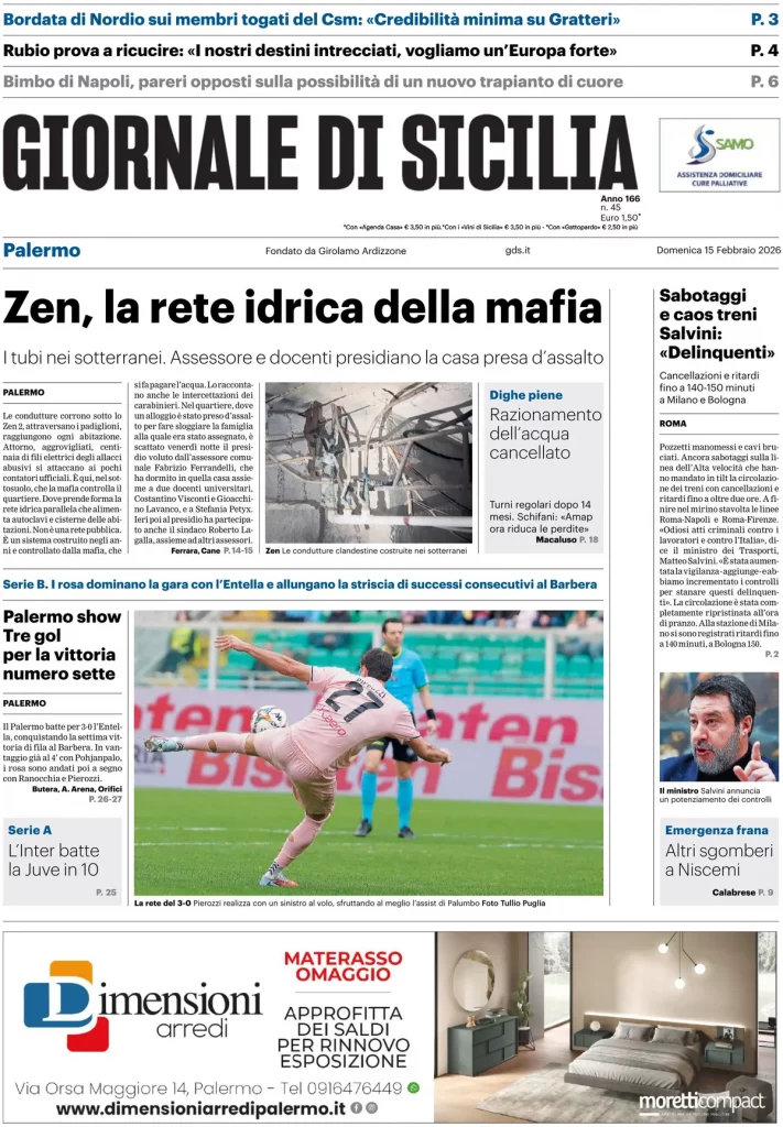 Reading: Le prime pagine delle maggiori testate giornalistiche siciliane, nazionali, economiche, sportive e straniere in Italia di Domenica 15 Febbraio 2026