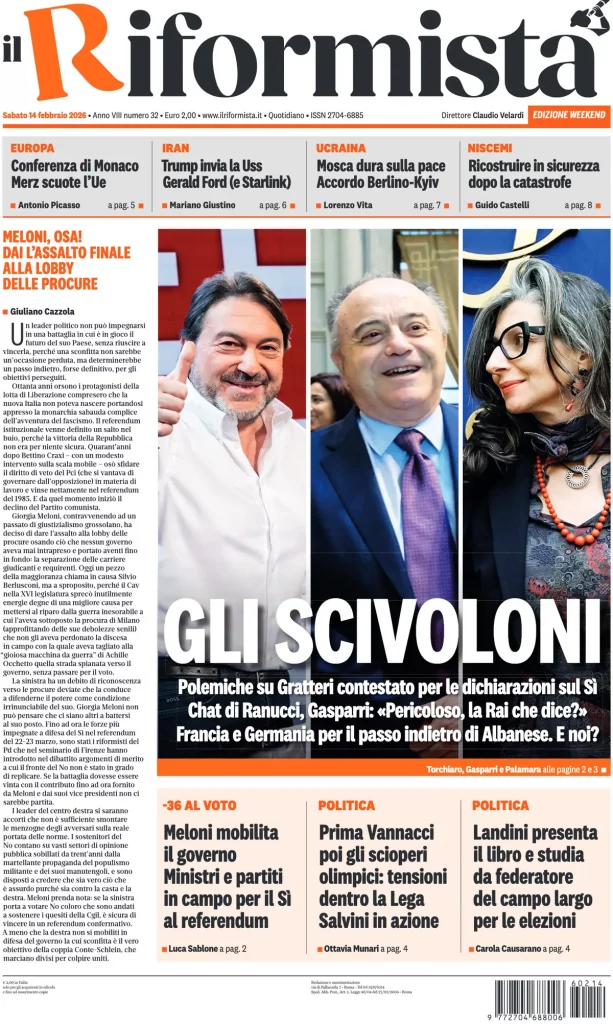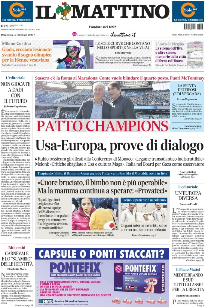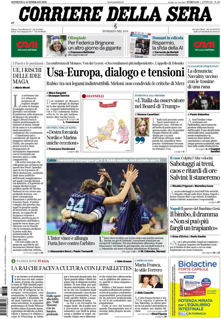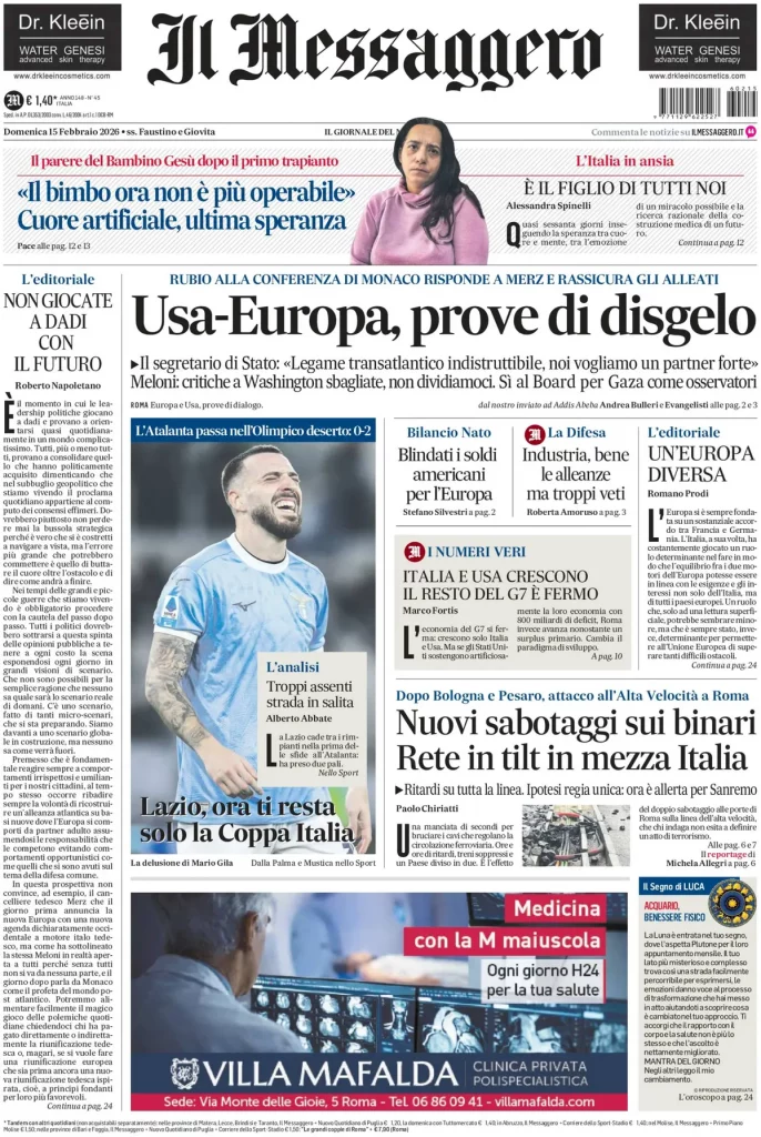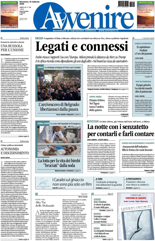 Reading: Le prime pagine delle maggiori testate giornalistiche siciliane, nazionali, economiche, sportive e straniere in Italia di Domenica 15 Febbraio 2026
