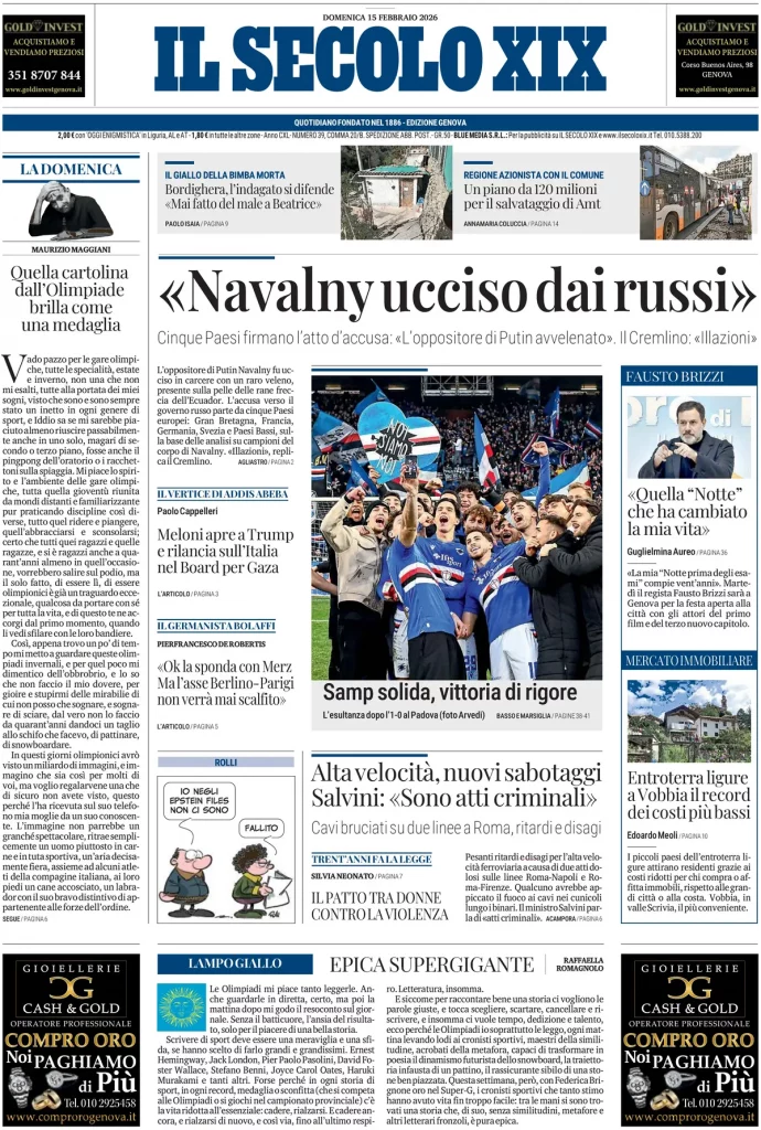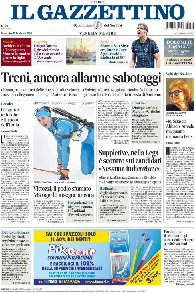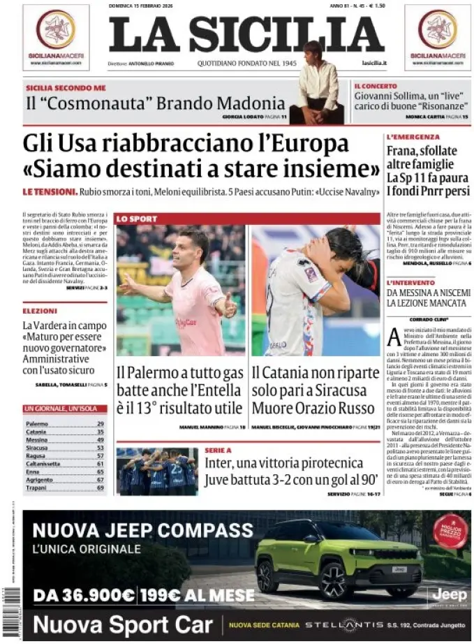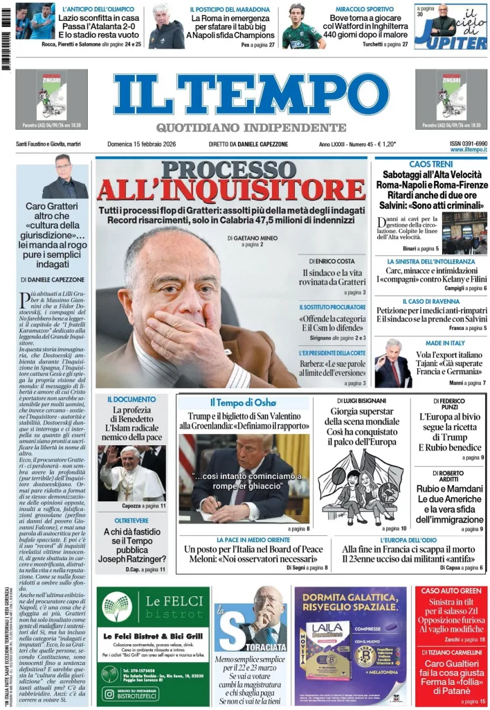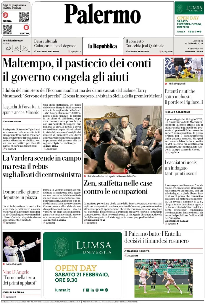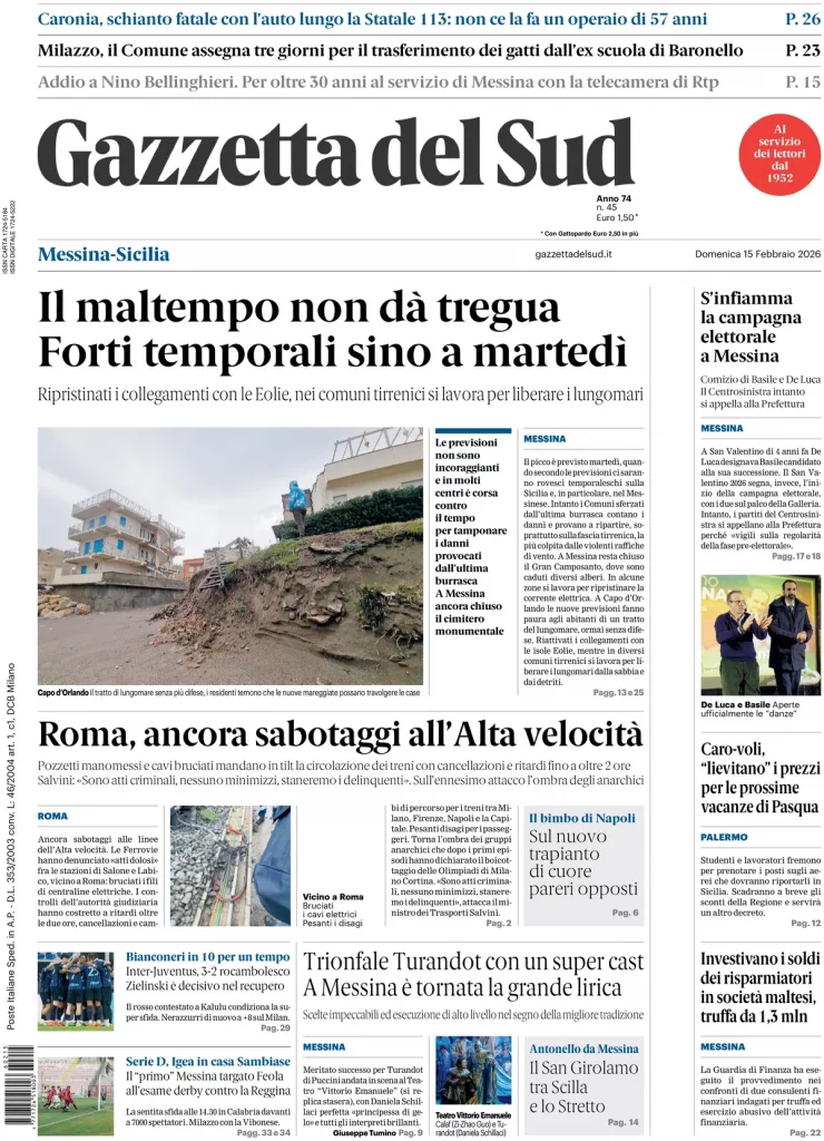 Caltanissetta 401 > News > Rassegna stampa > Le prime pagine delle maggiori testate giornalistiche siciliane, nazionali, economiche, sportive e straniere in Italia di Domenica 15 Febbraio 2026