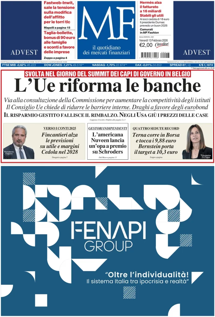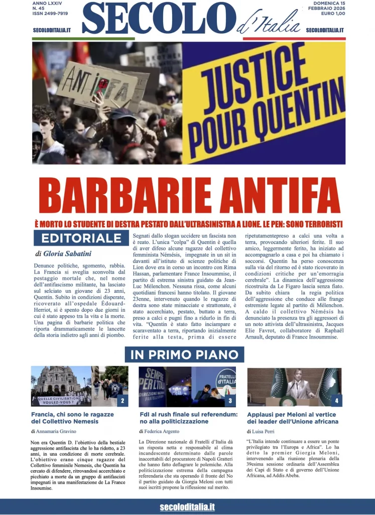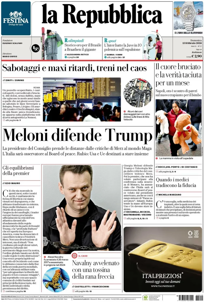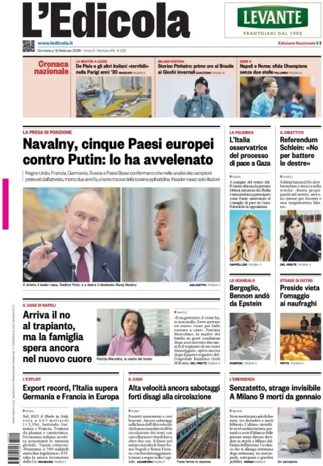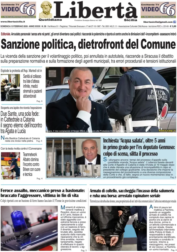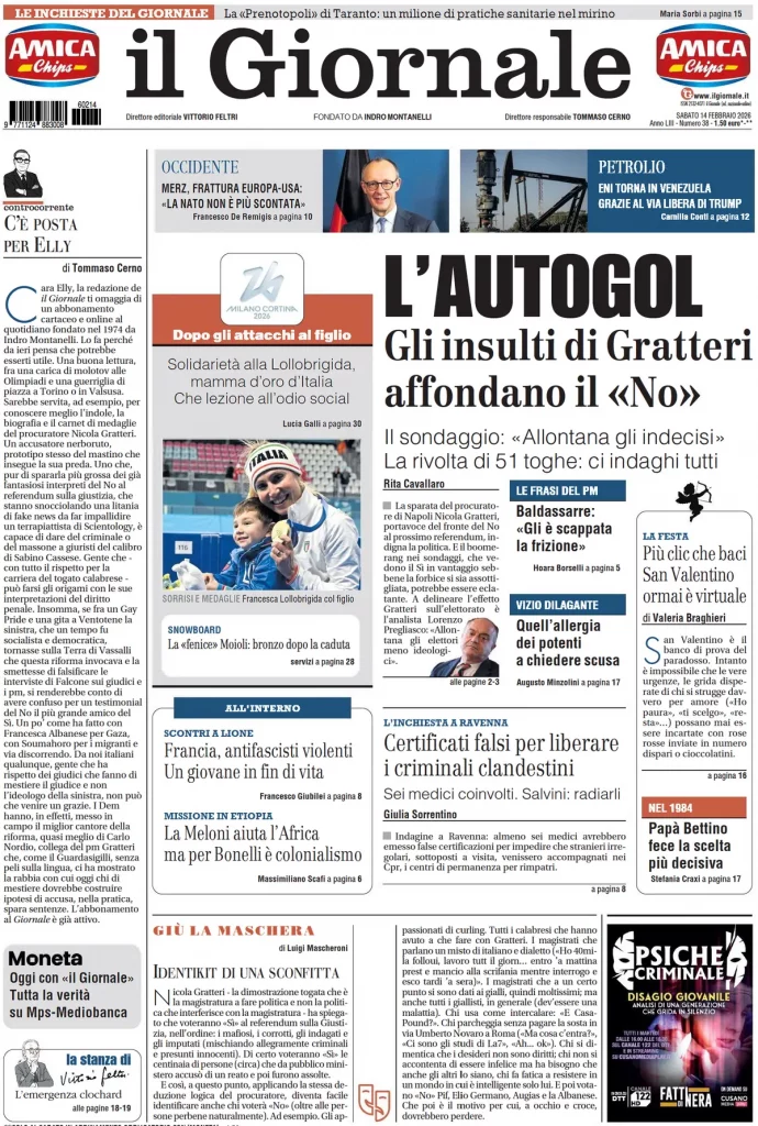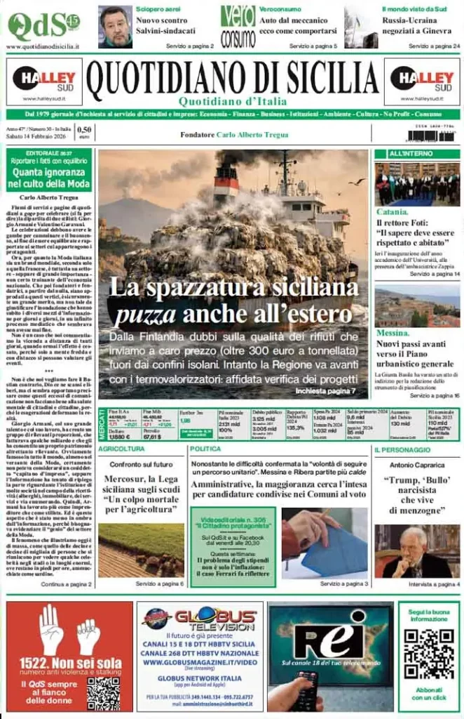 Caltanissetta 401 > News > Rassegna stampa > Le prime pagine delle maggiori testate giornalistiche siciliane, nazionali, economiche, sportive e straniere in Italia di Domenica 15 Febbraio 2026