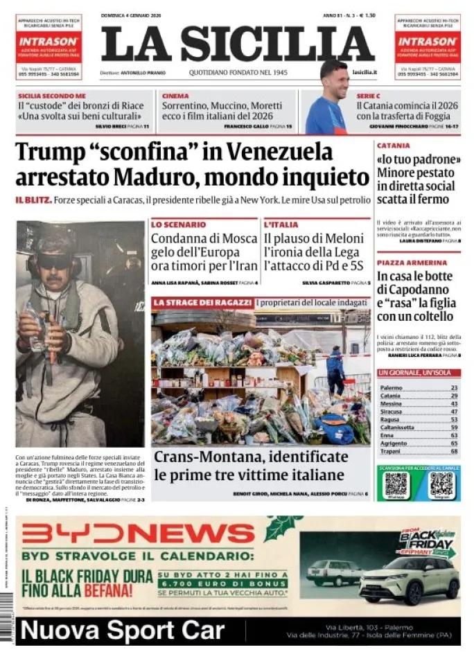 Le prime pagine delle maggiori testate giornalistiche siciliane, nazionali, economiche, sportive e straniere in Italia