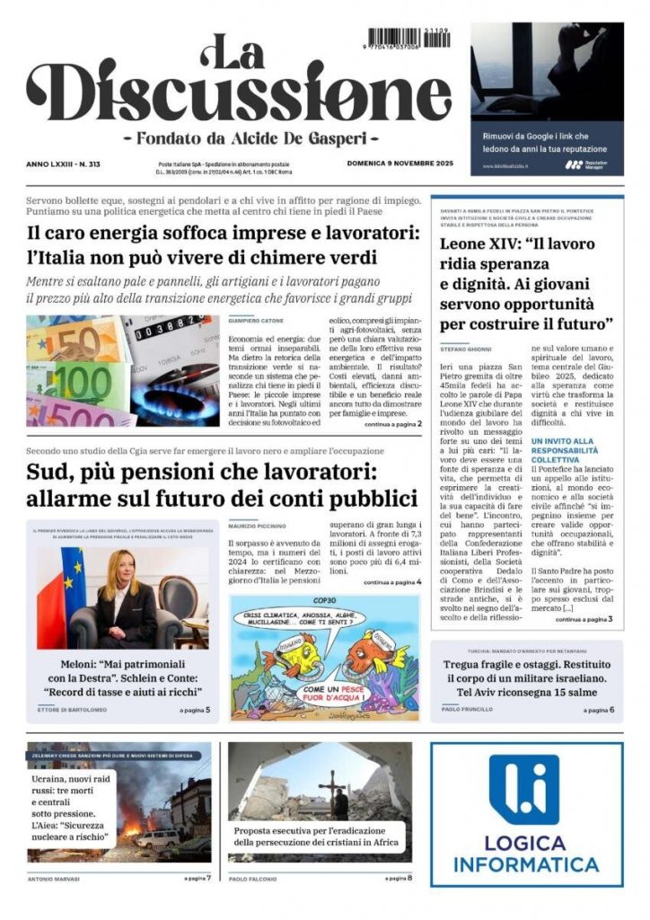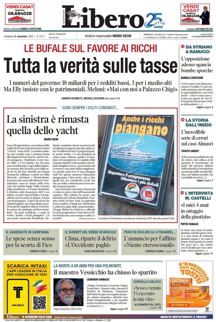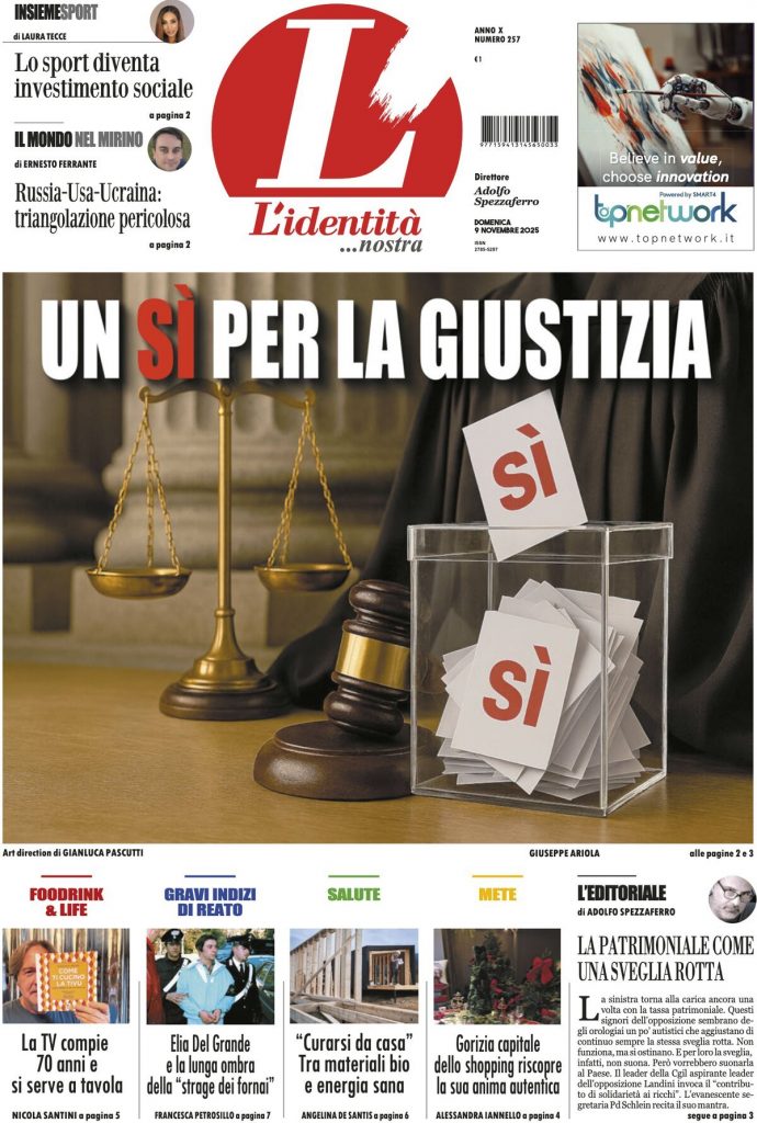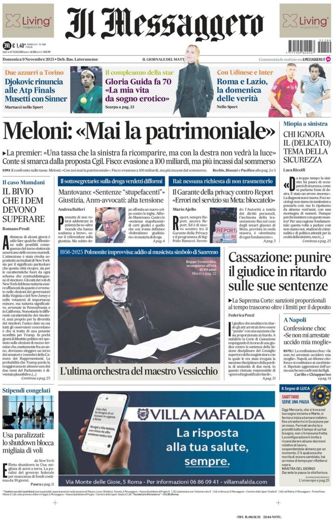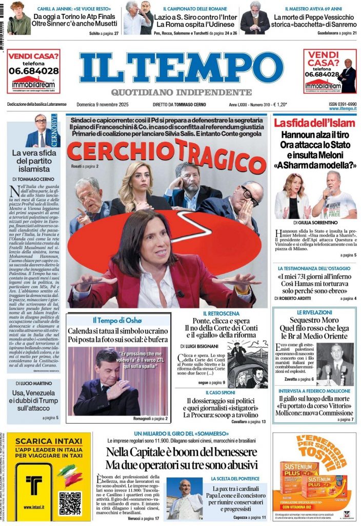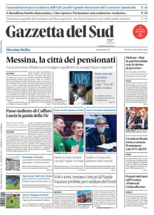 Caltanissetta 401 > News > Rassegna stampa > Le prime pagine delle maggiori testate giornalistiche siciliane, nazionali, economiche, sportive e straniere in Italia di Domenica 9 Novembre 2025