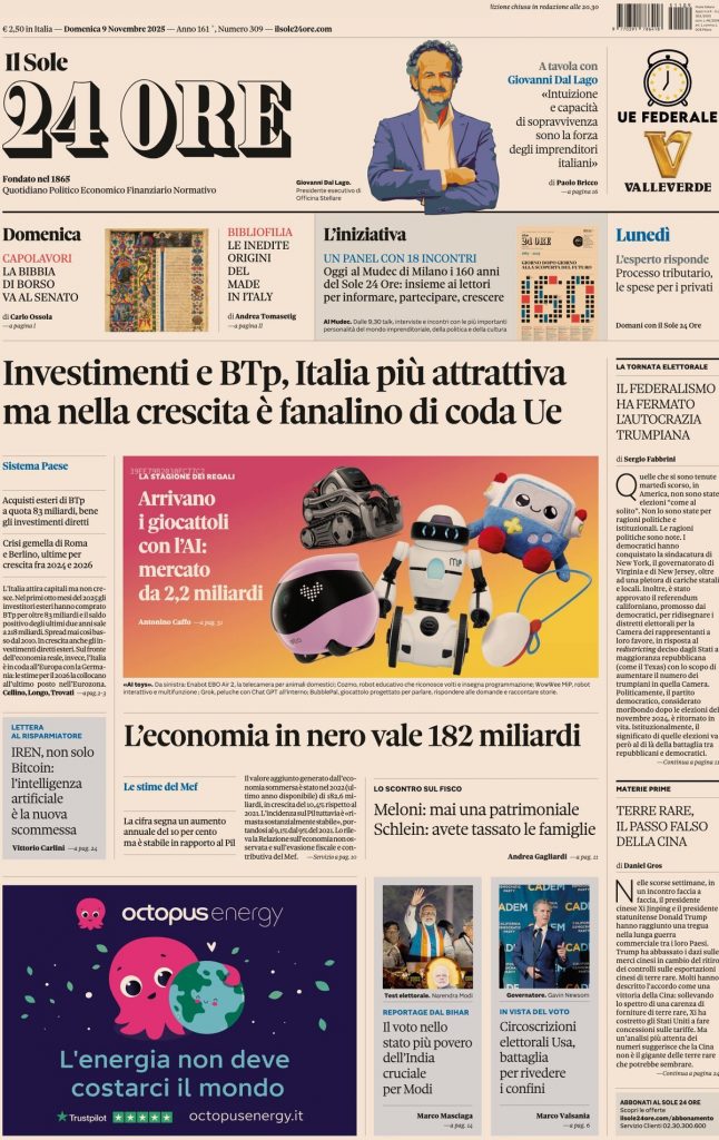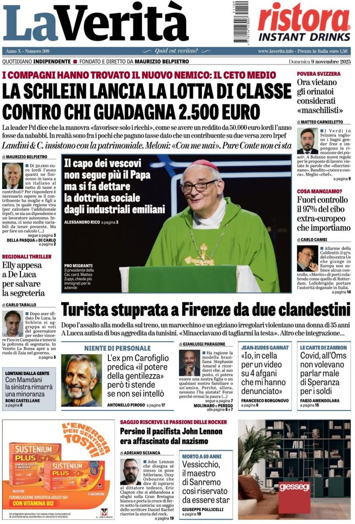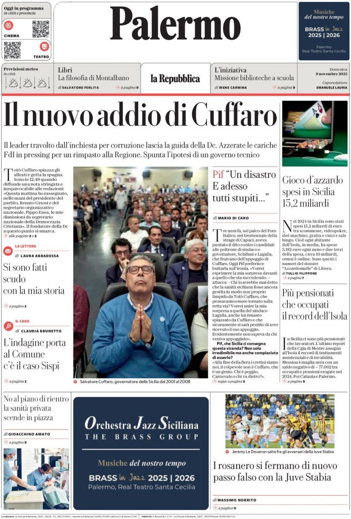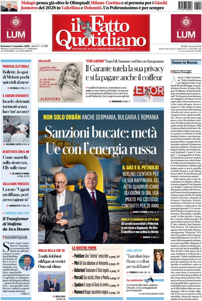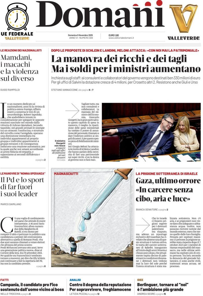Reading: Le prime pagine delle maggiori testate giornalistiche siciliane, nazionali, economiche, sportive e straniere in Italia di Domenica 9 Novembre 2025