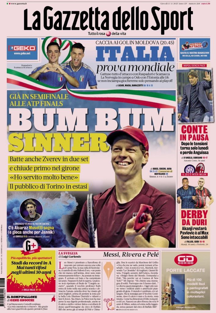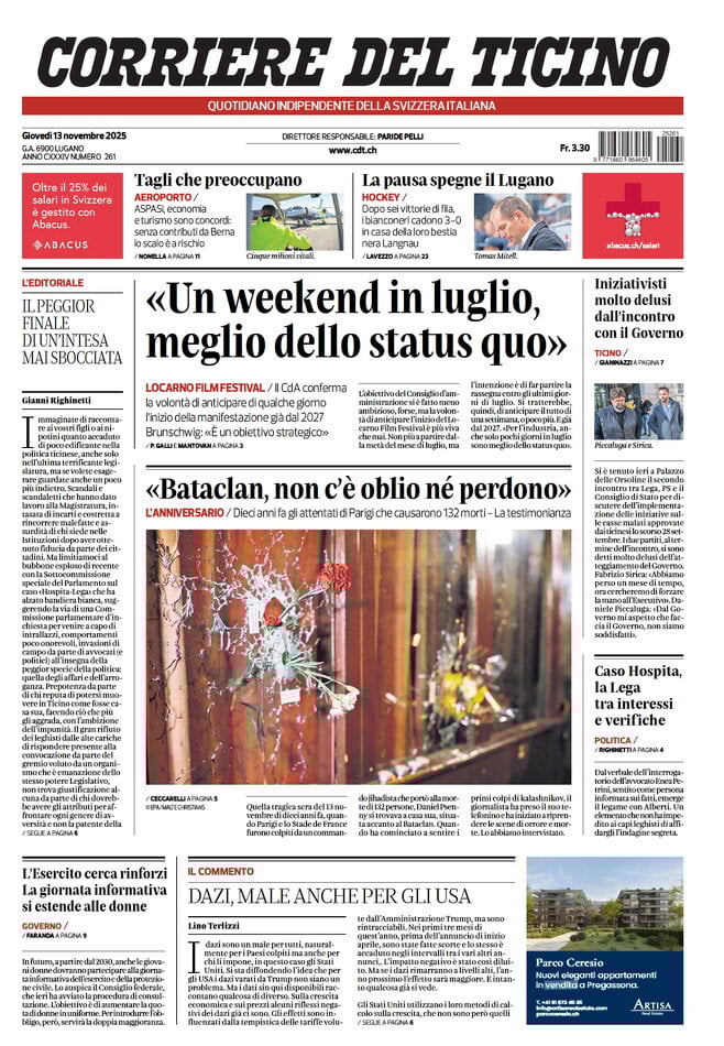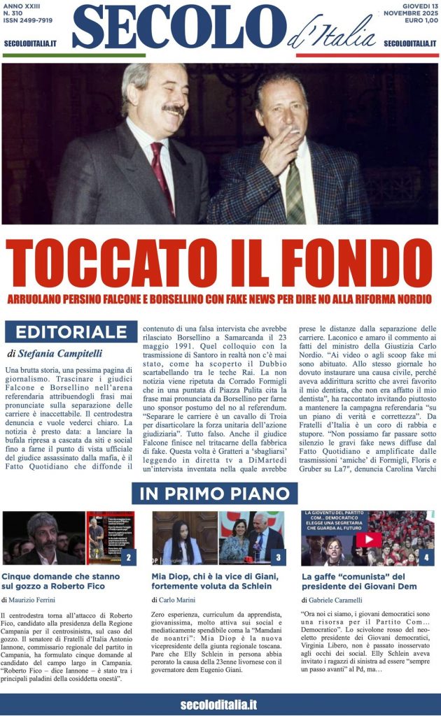 Caltanissetta 401 > News > Rassegna stampa > Le prime pagine delle maggiori testate giornalistiche siciliane, nazionali, economiche, sportive e straniere in Italia di Giovedì 13 Novembre 2025