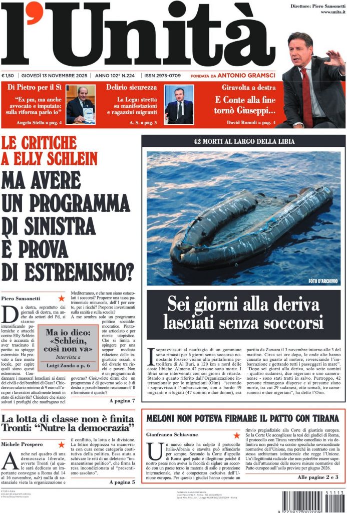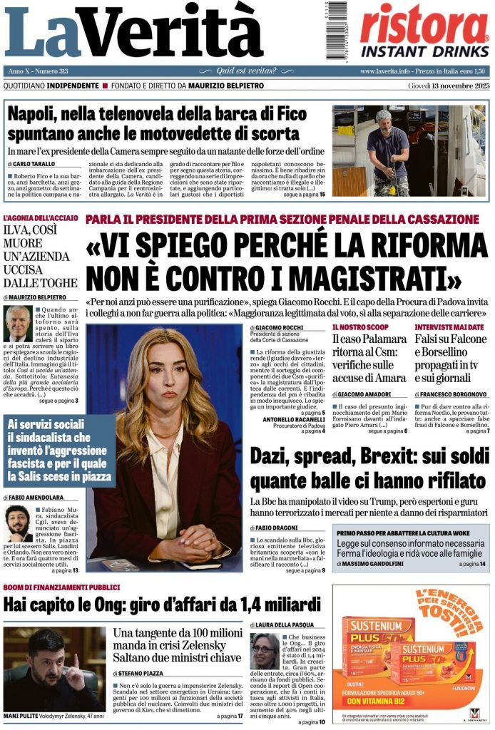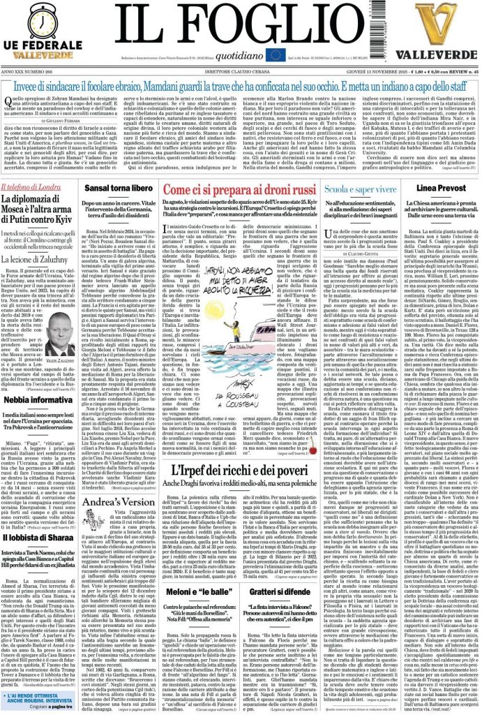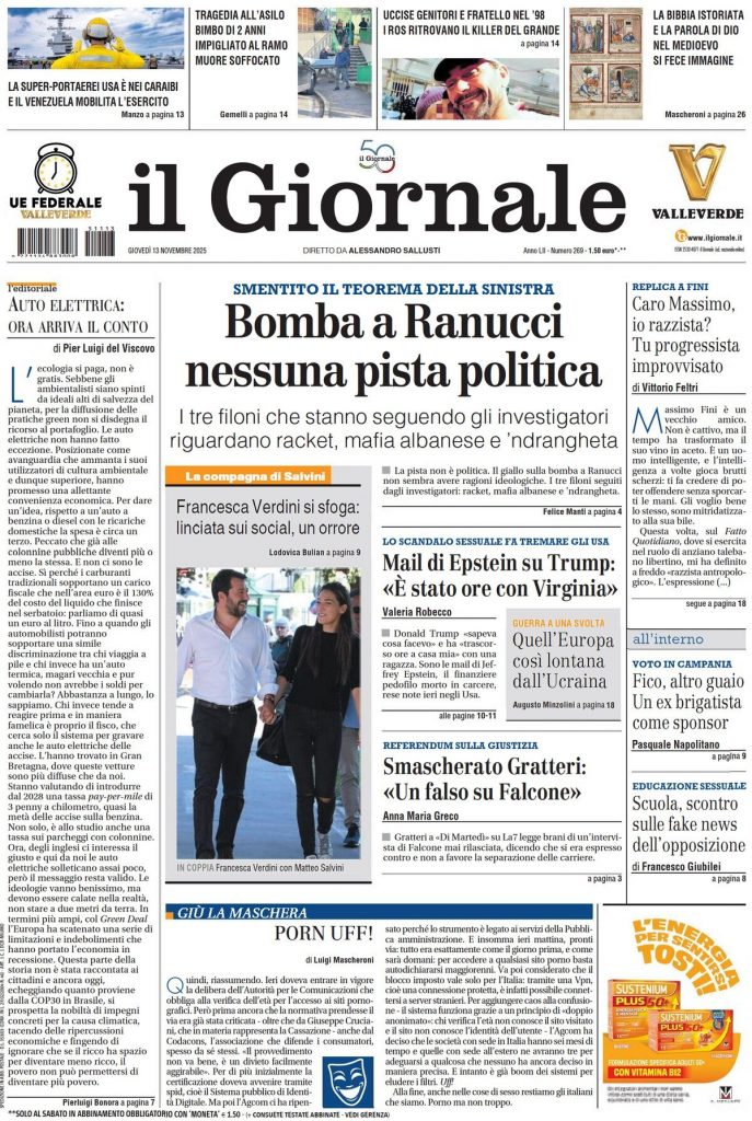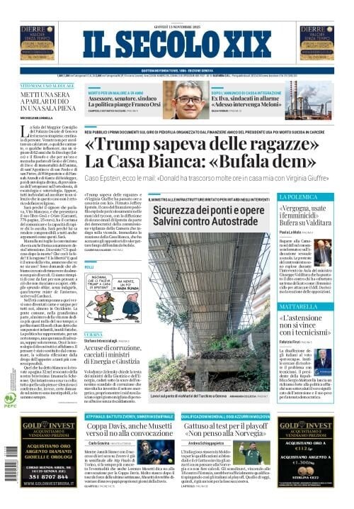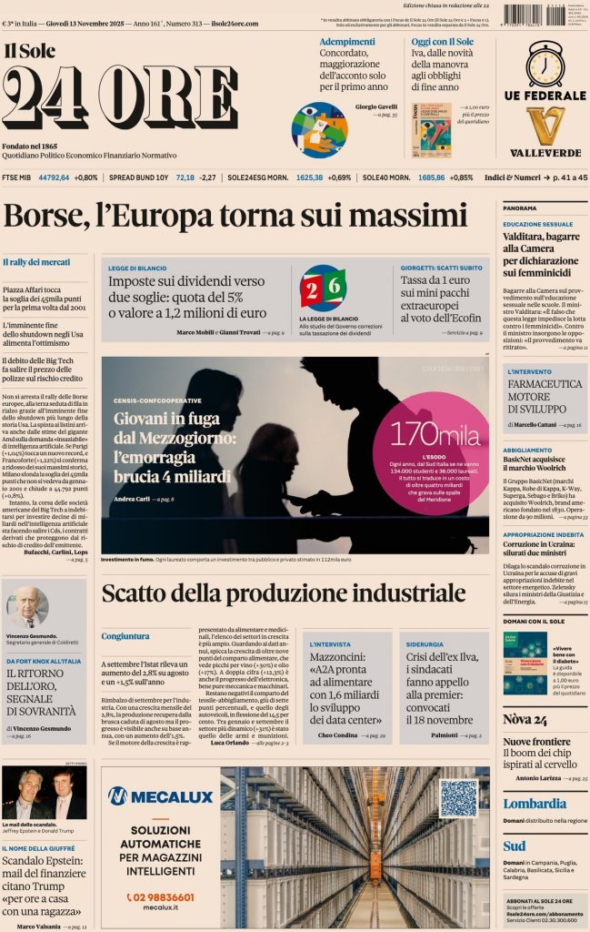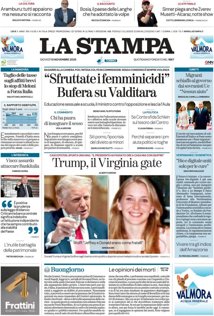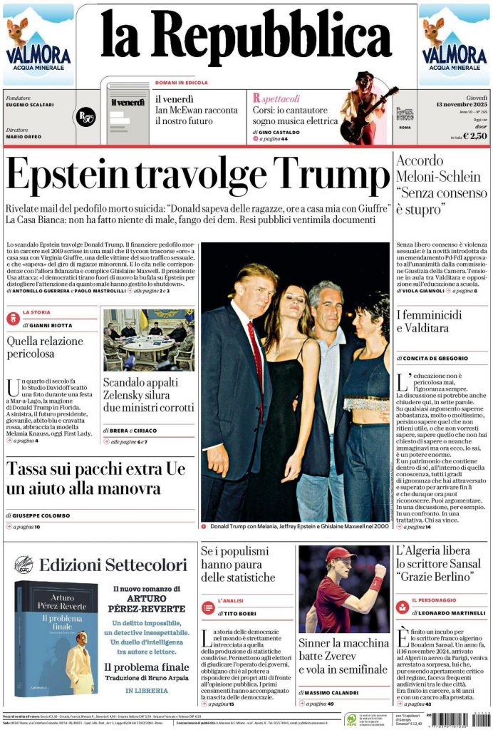 Reading: Le prime pagine delle maggiori testate giornalistiche siciliane, nazionali, economiche, sportive e straniere in Italia di Giovedì 13 Novembre 2025