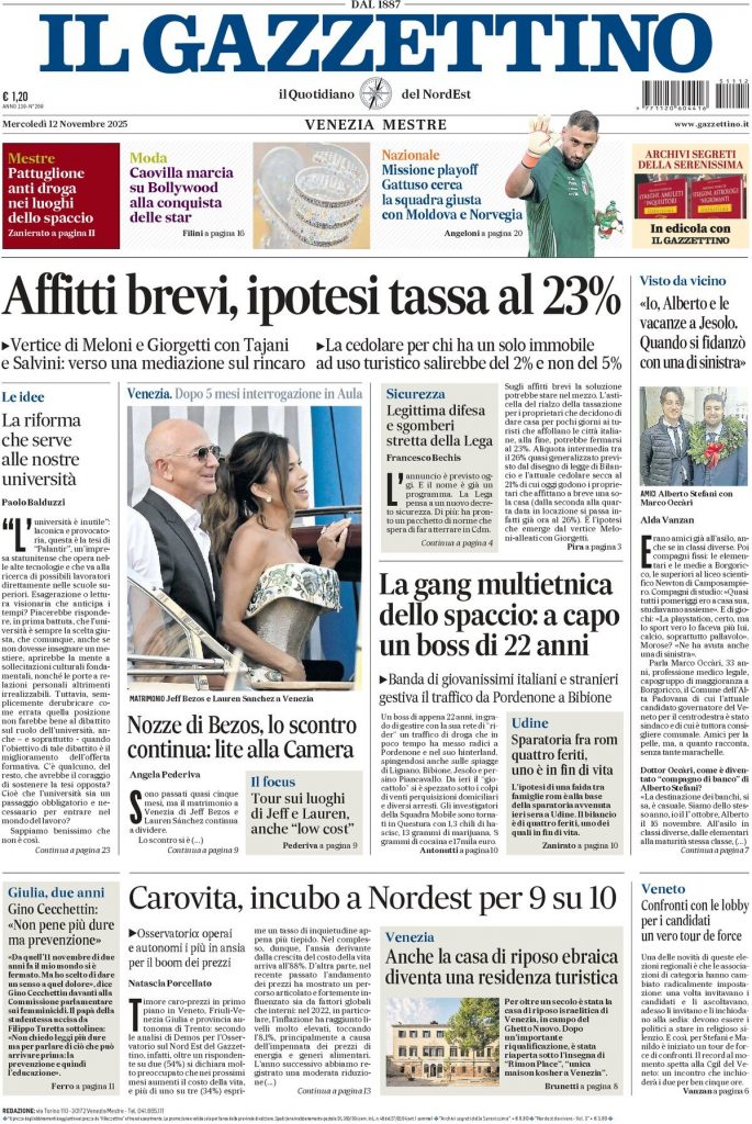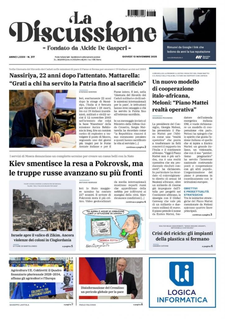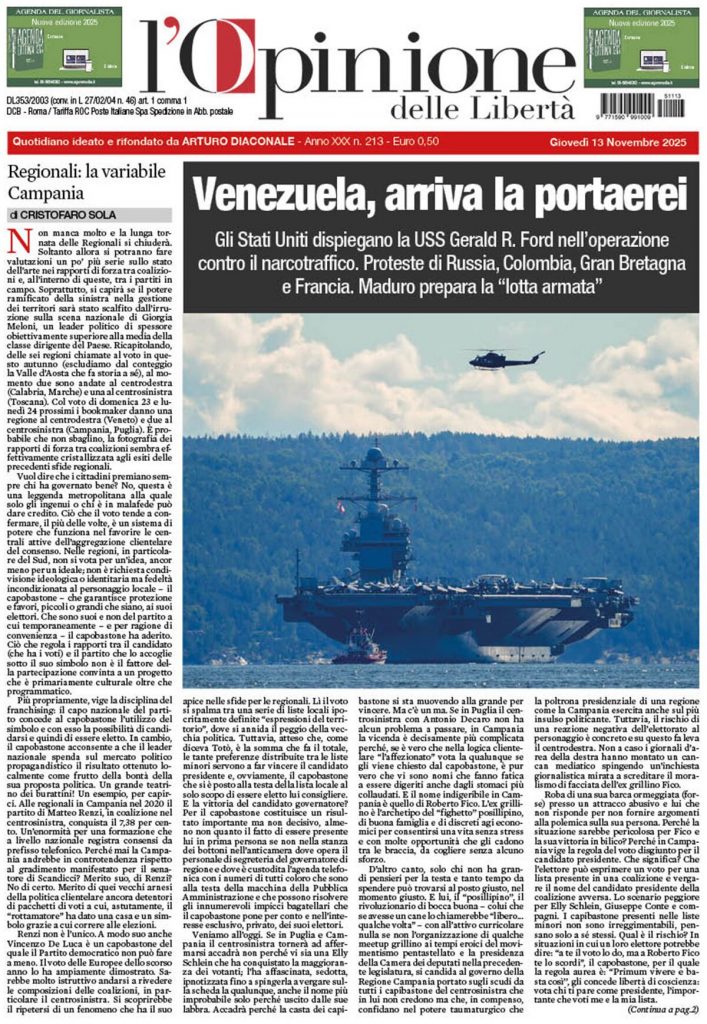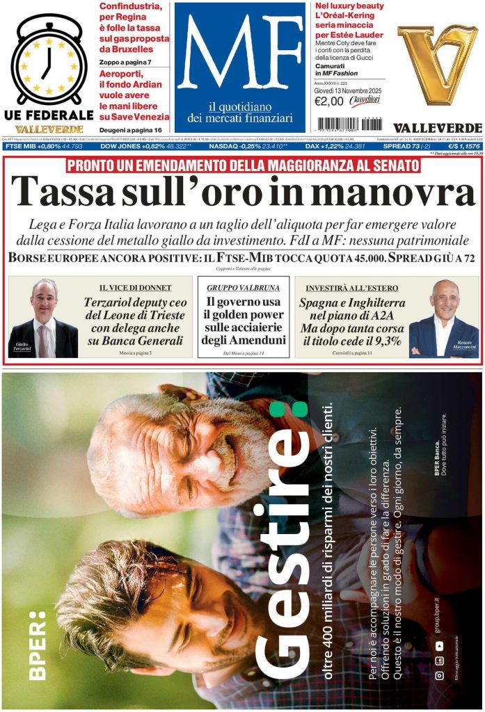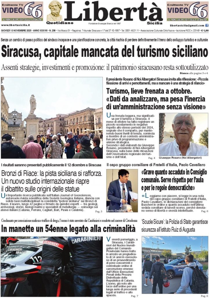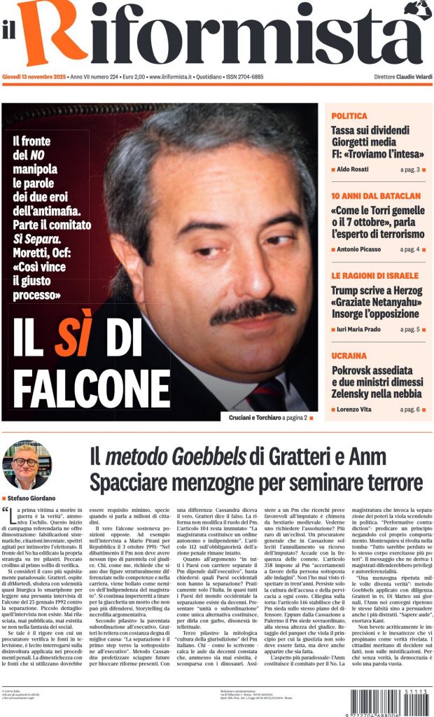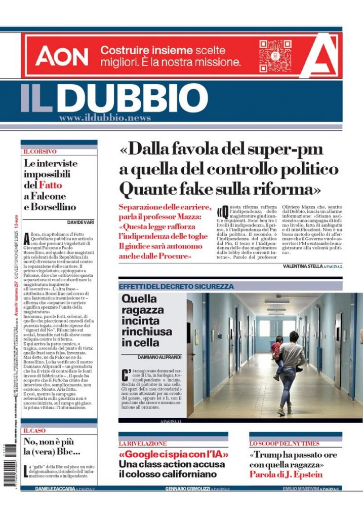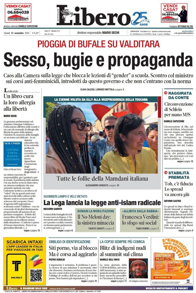 Reading: Le prime pagine delle maggiori testate giornalistiche siciliane, nazionali, economiche, sportive e straniere in Italia di Giovedì 13 Novembre 2025
