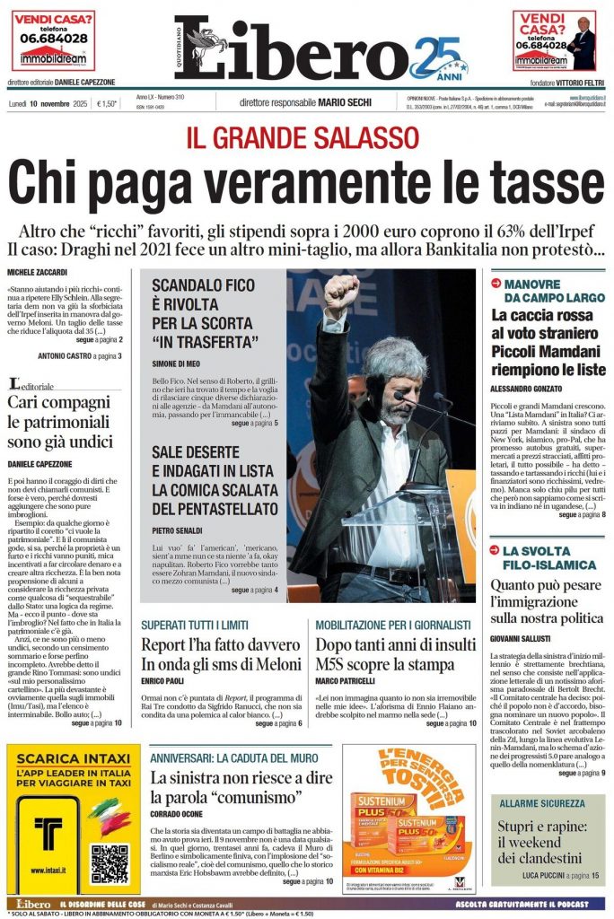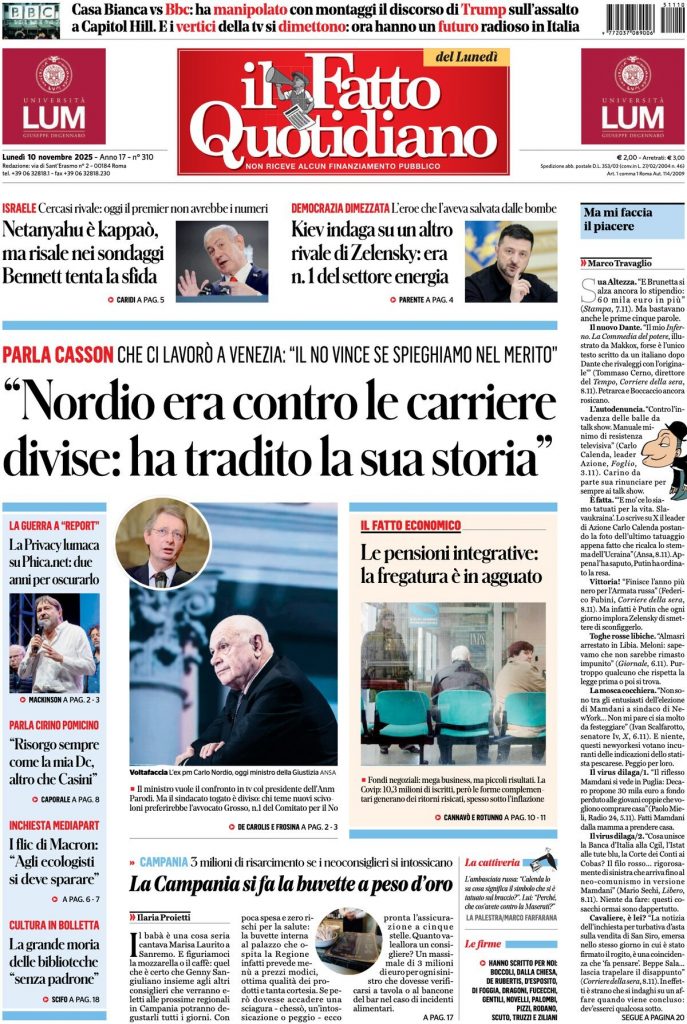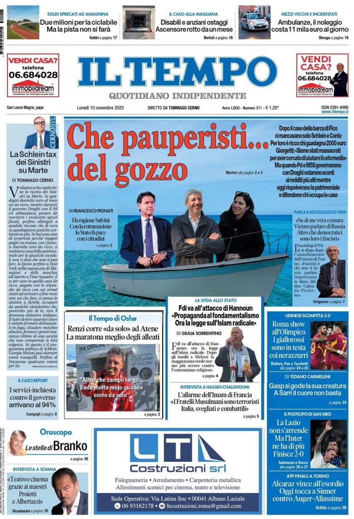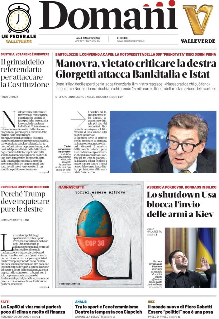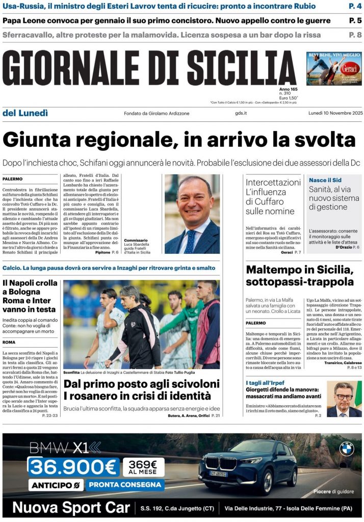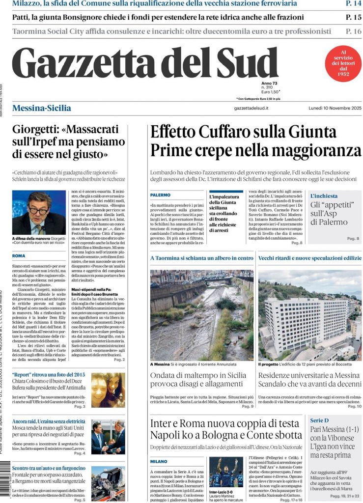 Caltanissetta 401 > News > Rassegna stampa > Le prime pagine delle maggiori testate giornalistiche siciliane, nazionali, economiche, sportive e straniere in Italia di Lunedì 10 Novembre 2025